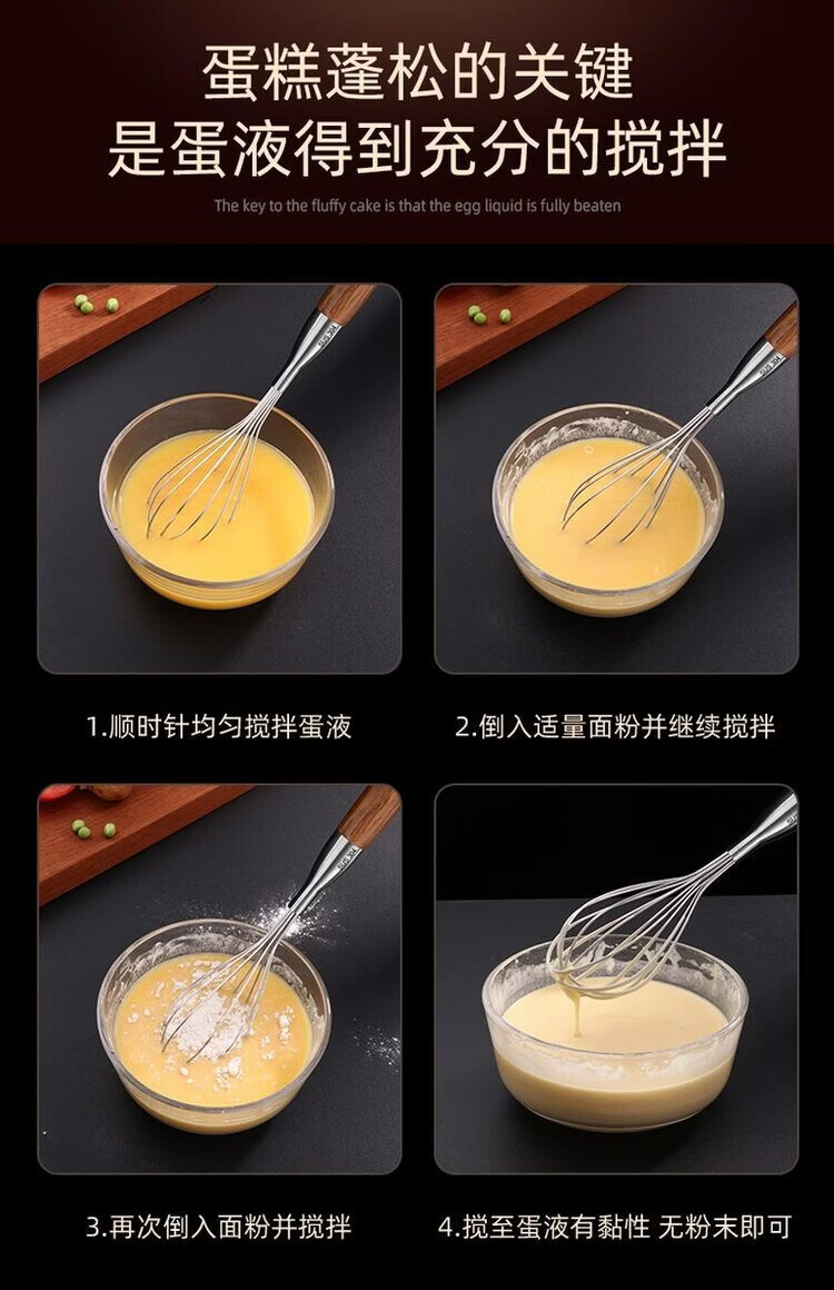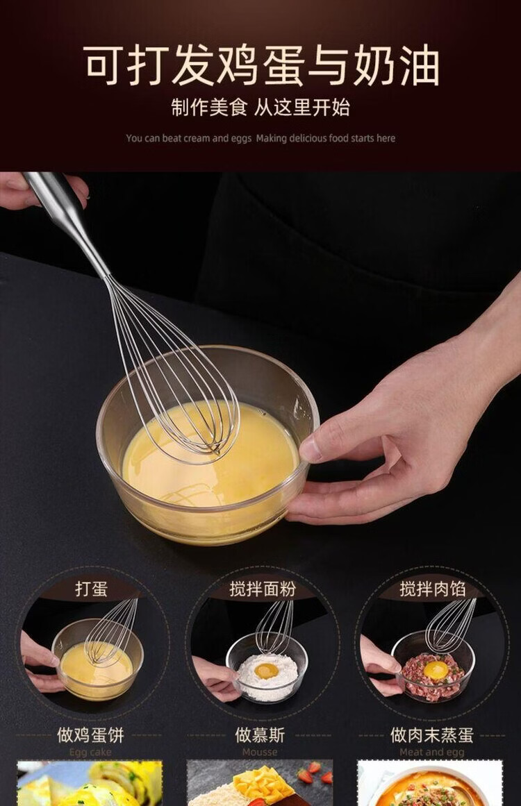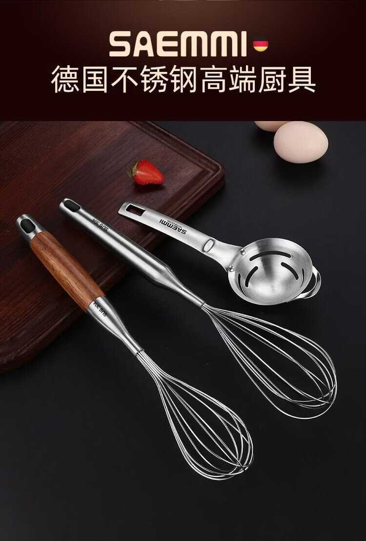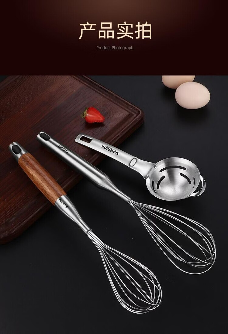 Raft core German craft egg beater manual stainless steel bold household baking mixer whipped cream egg beater egg beater - walnut model (thin handle)