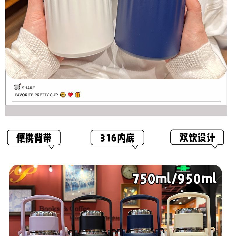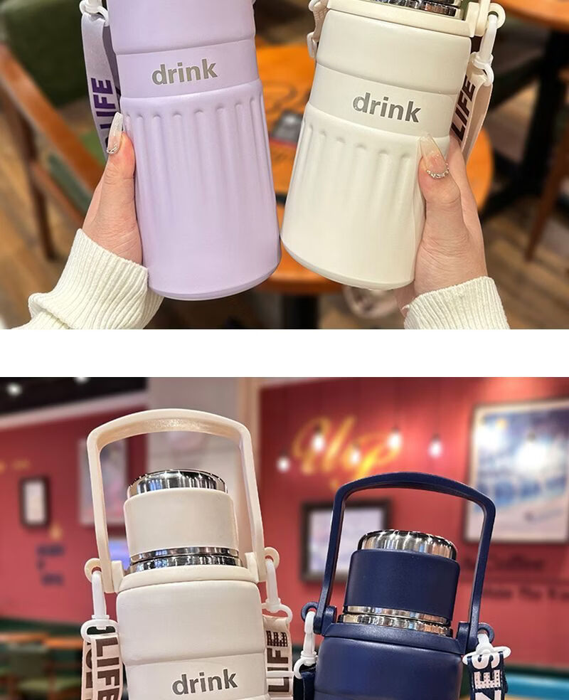 Wing Fantasy Winter Thermos Cup Large Capacity Boys Tea Water Separation Cup Outdoor Sports Kettle Portable Student Water Cup Blue 750ml