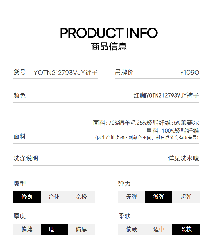 YOUNGOR (YOUNGOR) trousers men's 793 style suit trousers wool blended plain trousers 2026 shopping mall same style red coffee YOTN212793VJY trousers 175D 175/88A 35.5 size 90cm