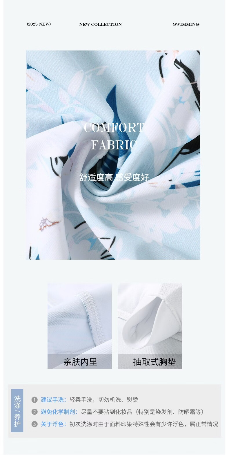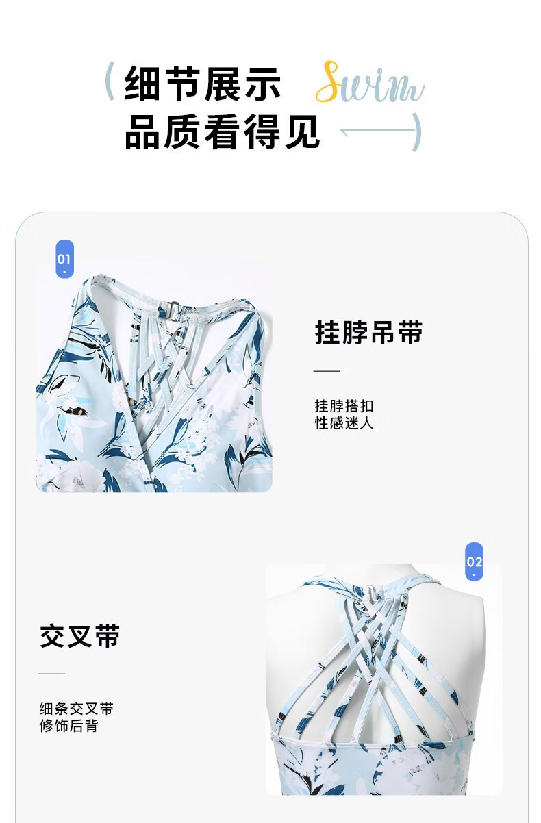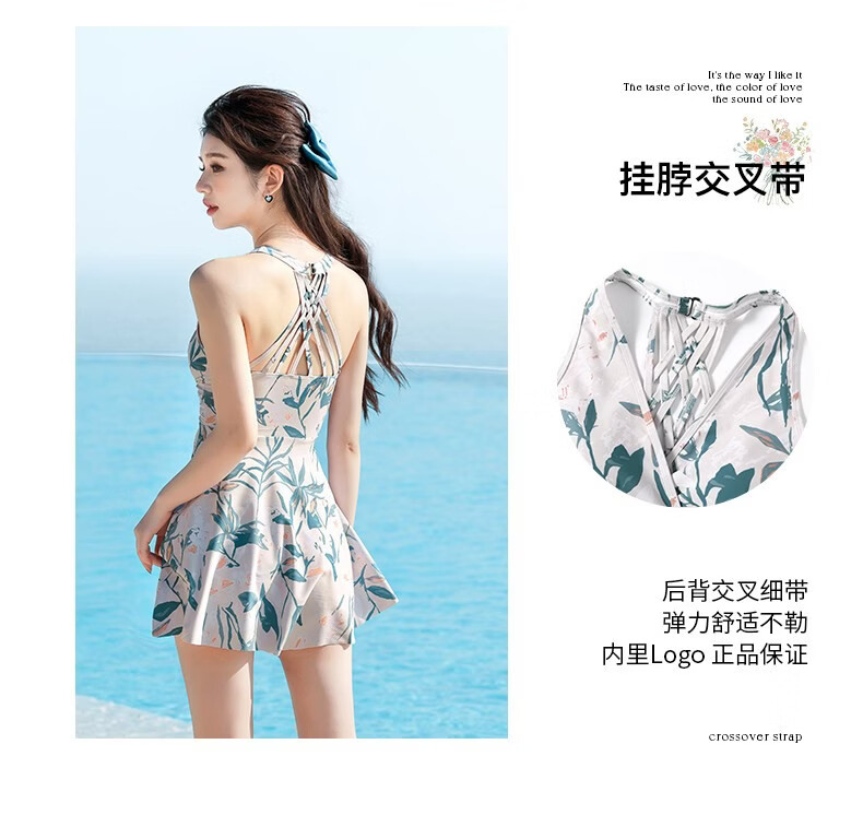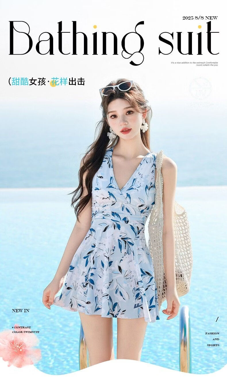 Pull-back swimwear for women 2025 new one-piece skirt style to cover the flesh and look slimming and conservative beach vacation swimwear blue leaves (swimming cap two-piece set) M (recommended 85-95Jin Jin equals 0.5 kg)
