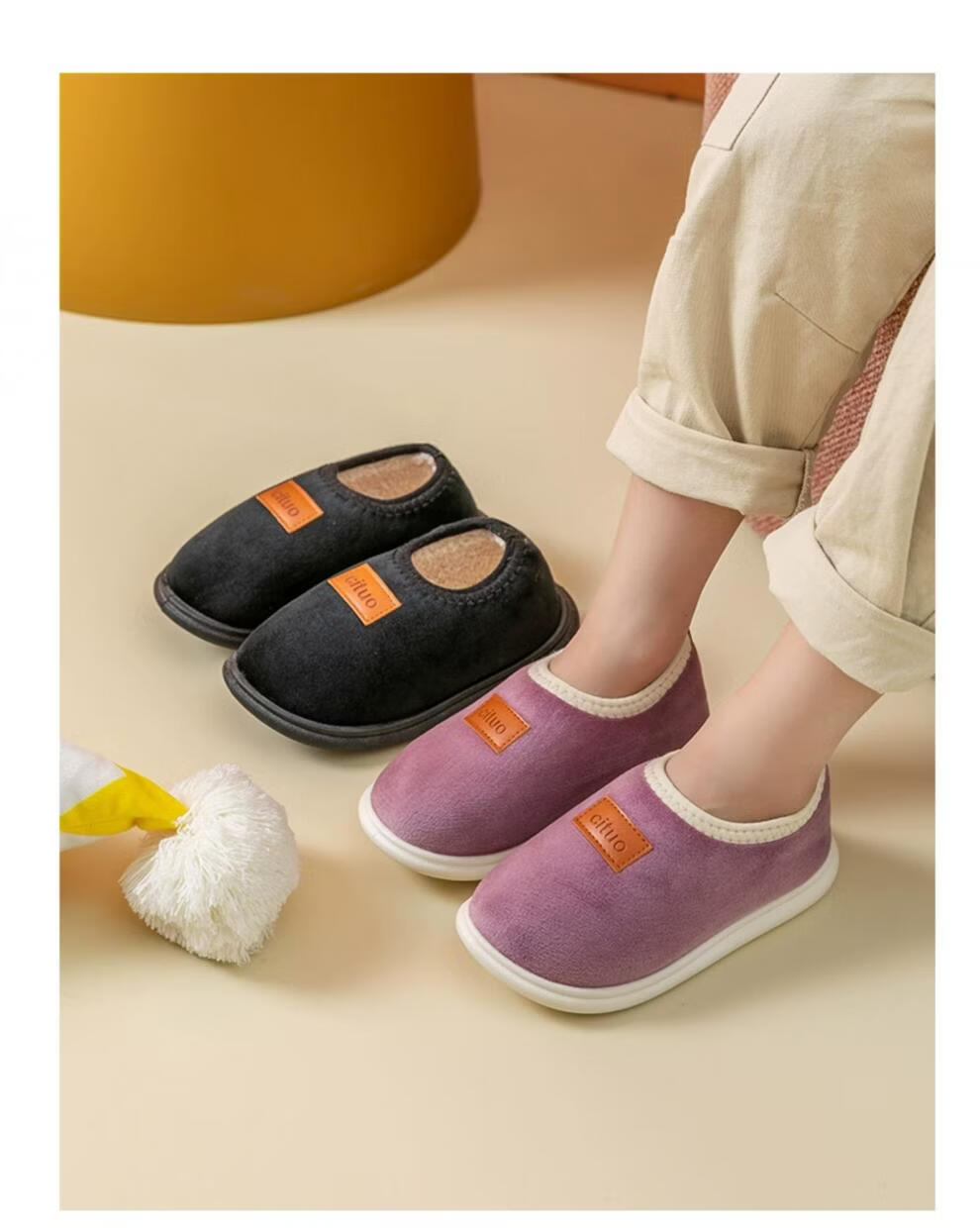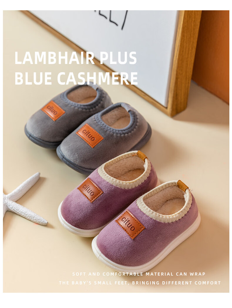 Shunmeiqian children's cotton slippers for men, autumn and winter indoor home use for children and girls, non-slip soft sole plush cotton shoes, fine velvet gray, 13 cm inner length