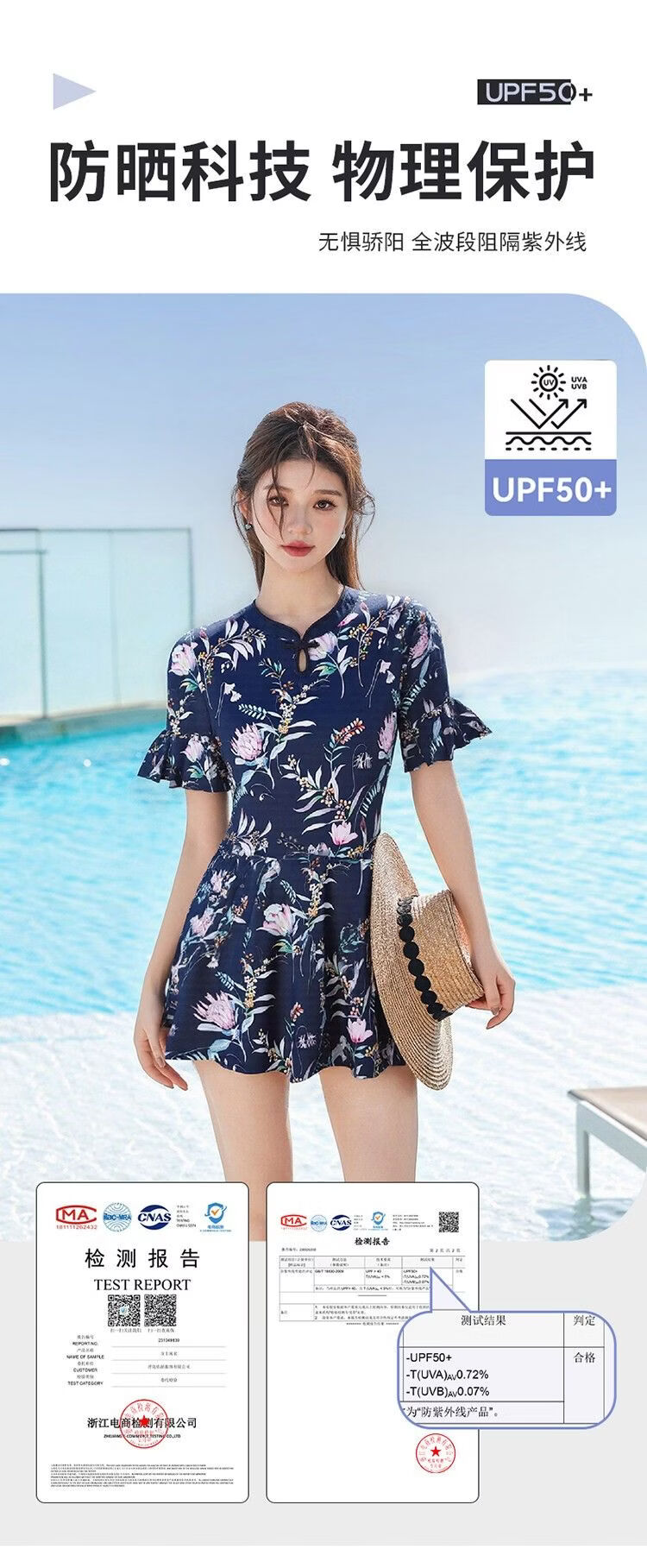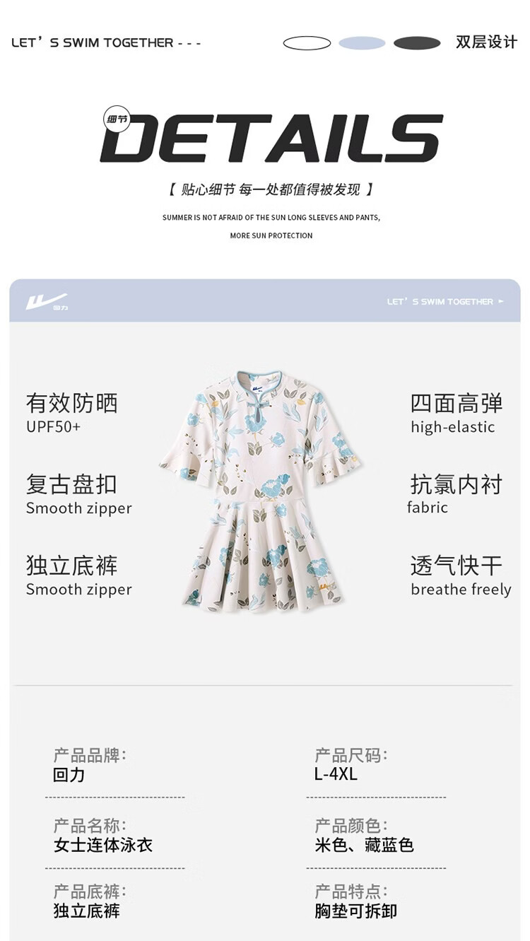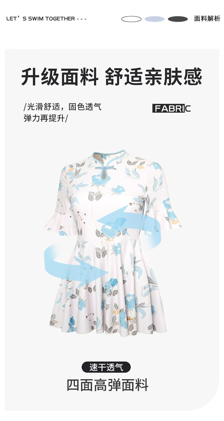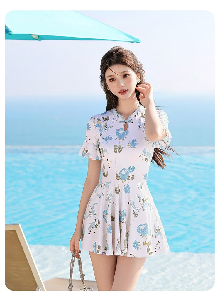 Pull back new Chinese style swimsuit for women 2025 new Chinese style cheongsam one-piece body-covering and slimming seaside swimsuit blue and white (two-piece swimming goggles set) XL (recommended 110-125 Jin Jin equals 0.5 kg)