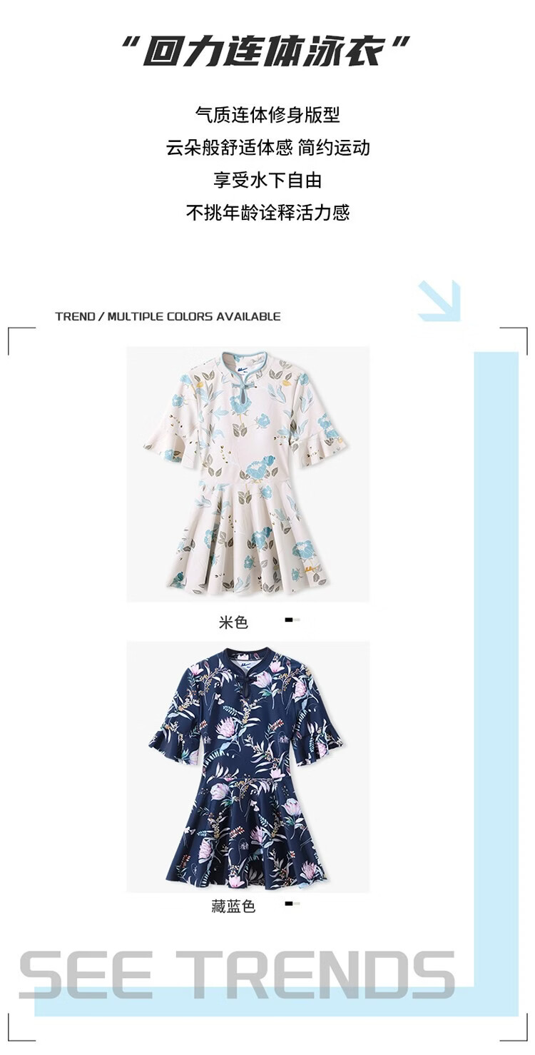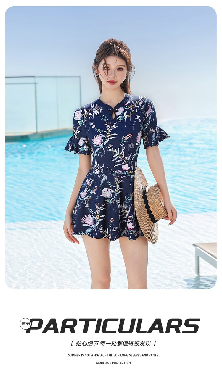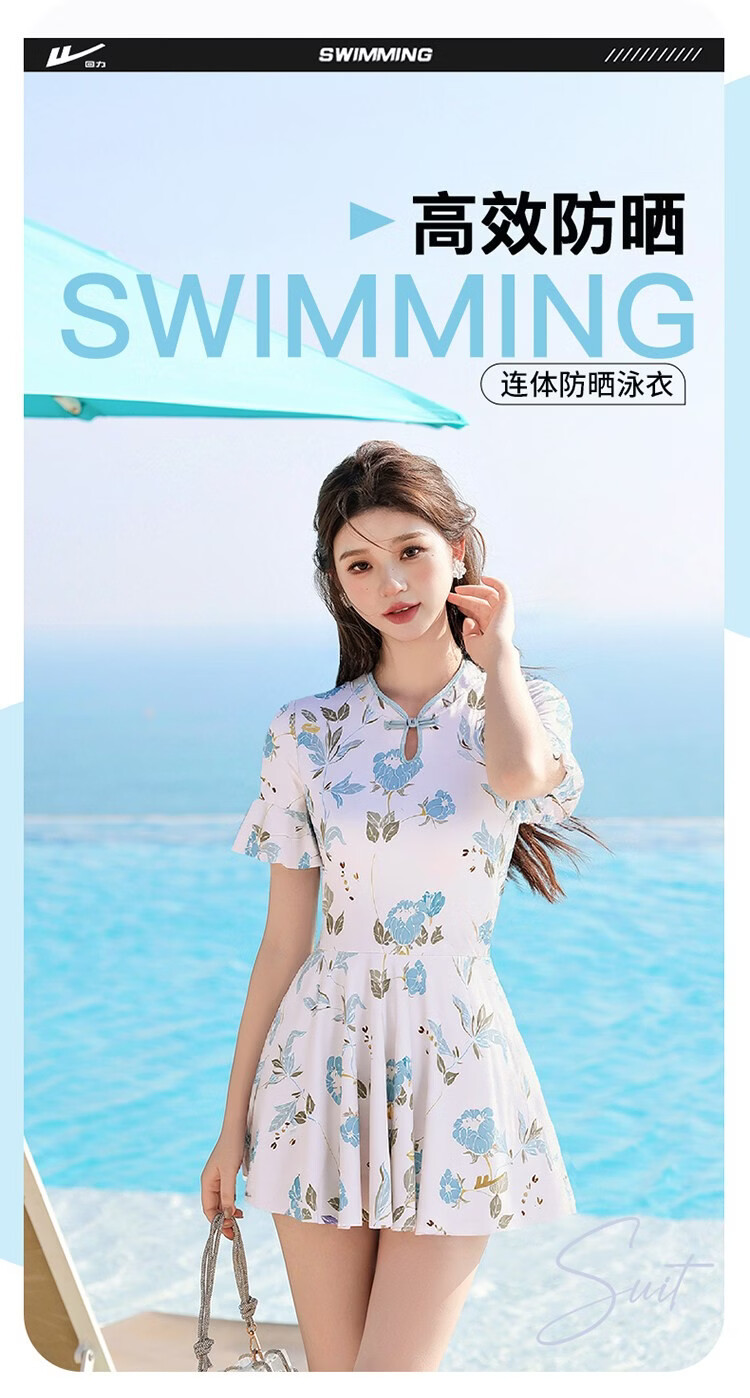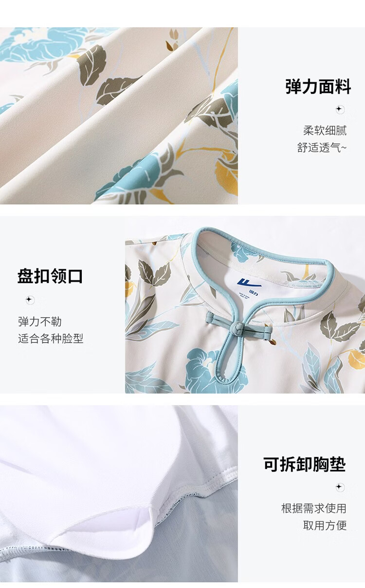 Pull back new Chinese style swimsuit for women 2025 new Chinese style cheongsam one-piece body-covering and slimming seaside swimsuit blue and white (two-piece swimming goggles set) XL (recommended 110-125 Jin Jin equals 0.5 kg)