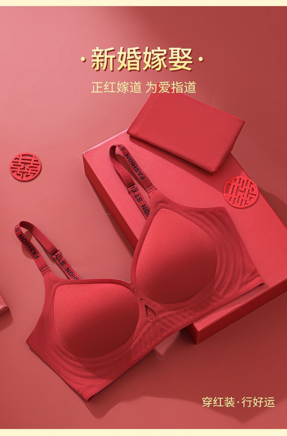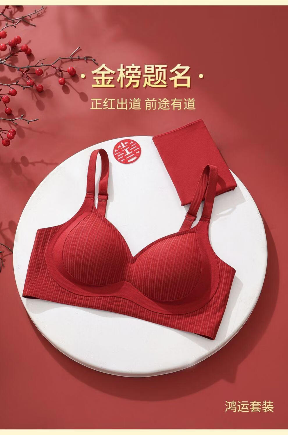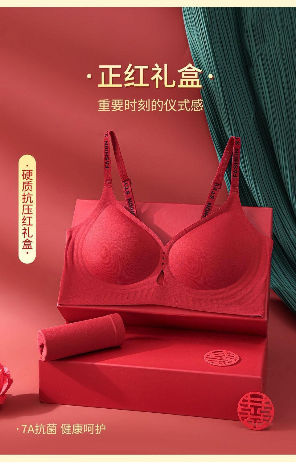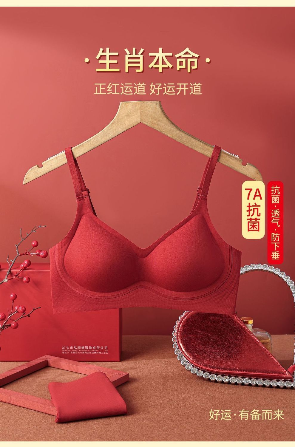 Langsha's zodiac year Qiji red underwear for women with small breasts gathered for the bride's wedding, good luck, anti-sagging, seamless sports bra cover, joyful (underwear + gift box + socks) S suitable for 80-95 Jin Jin equals 0.5 kg