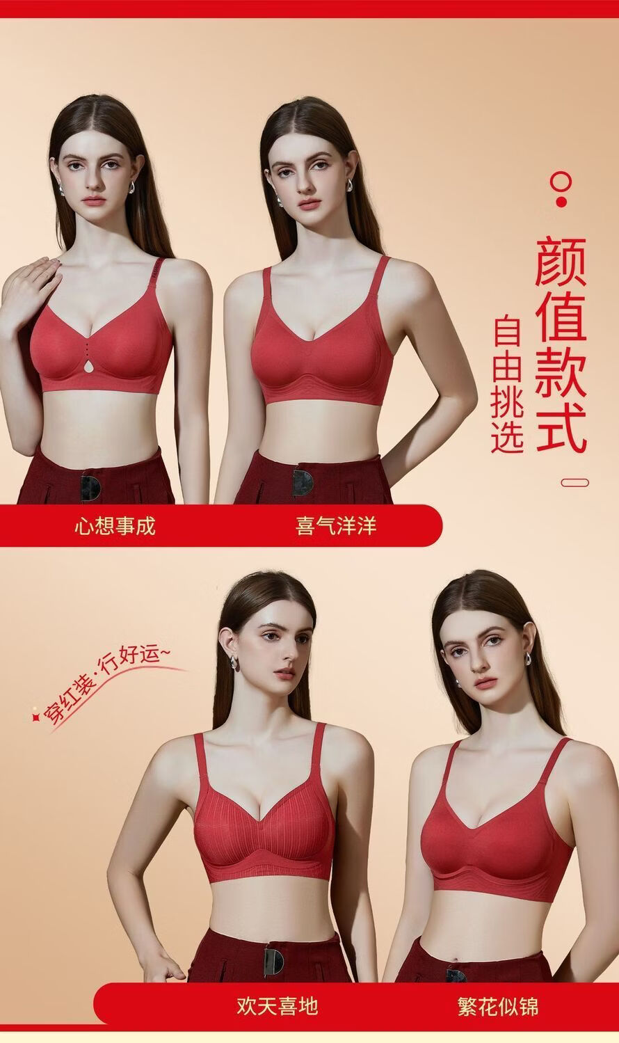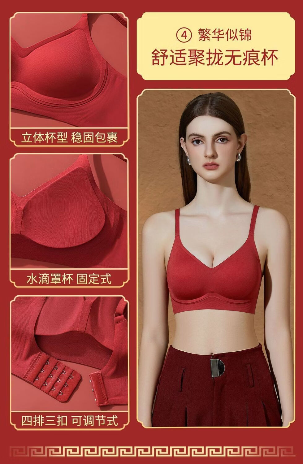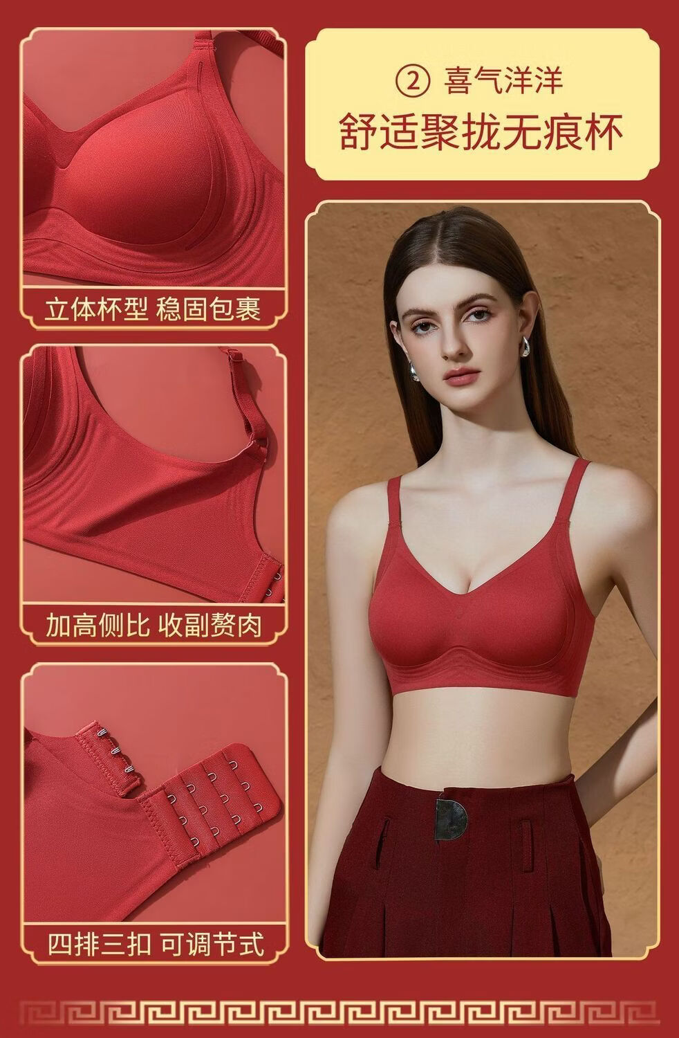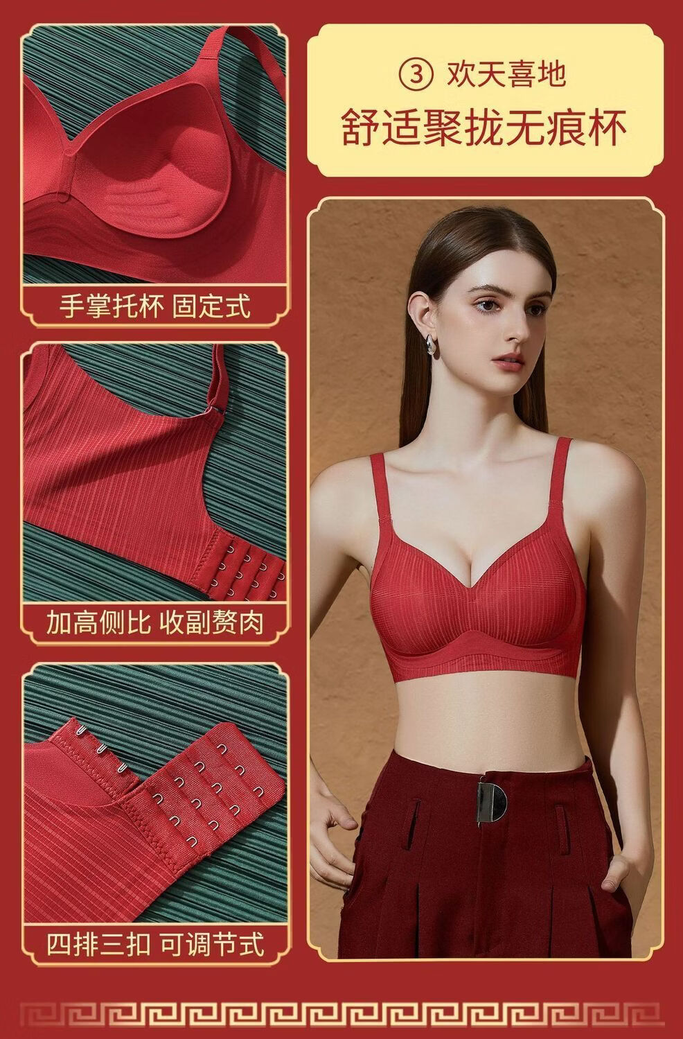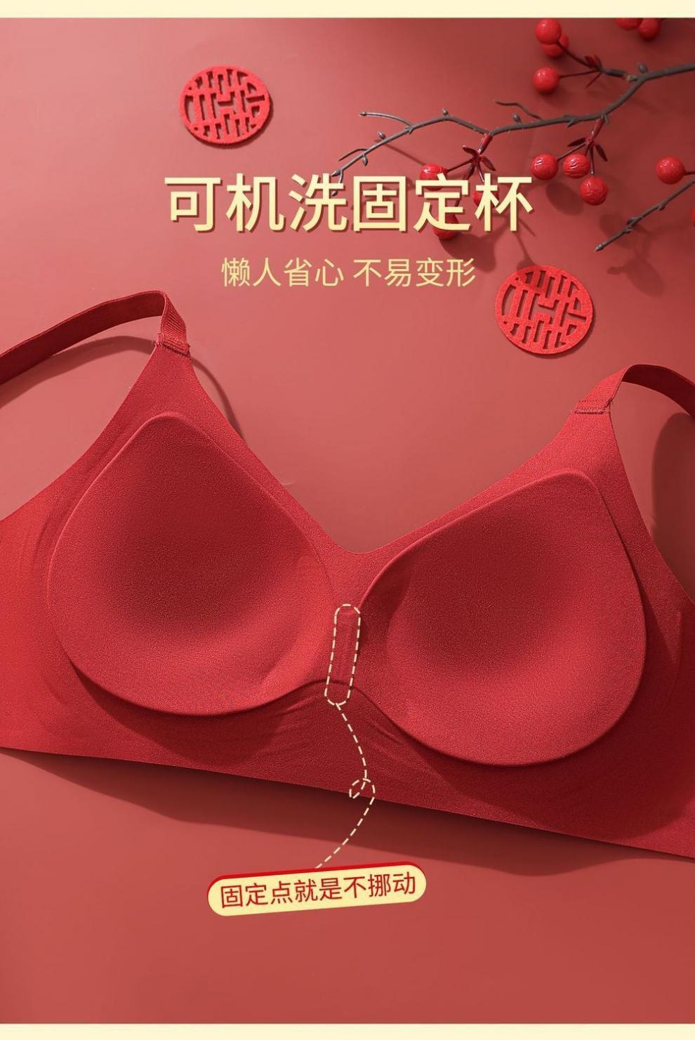 Langsha's zodiac year Qiji red underwear for women with small breasts gathered for the bride's wedding, good luck, anti-sagging, seamless sports bra cover, joyful (underwear + gift box + socks) S suitable for 80-95 Jin Jin equals 0.5 kg
