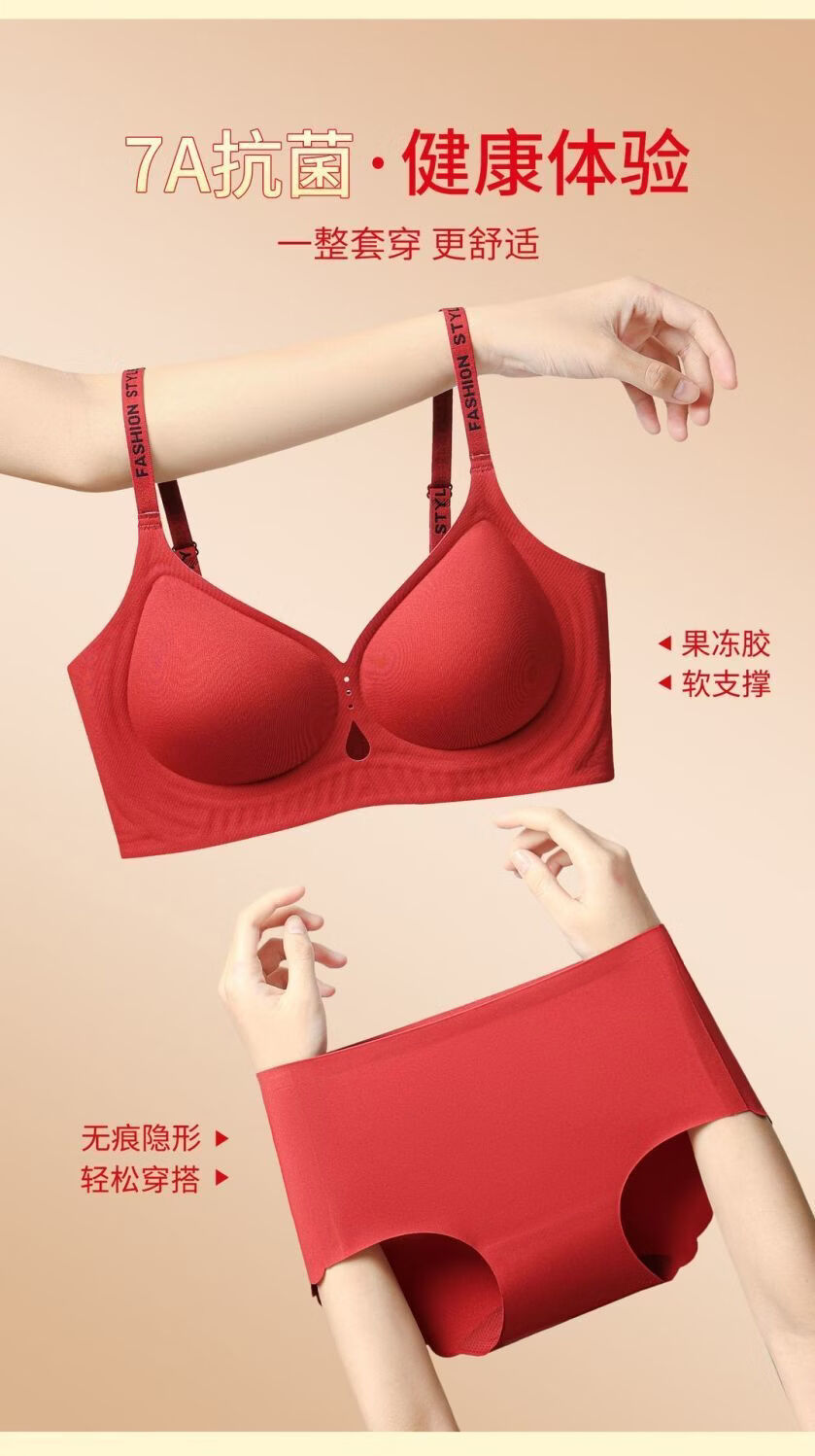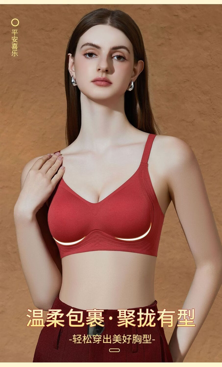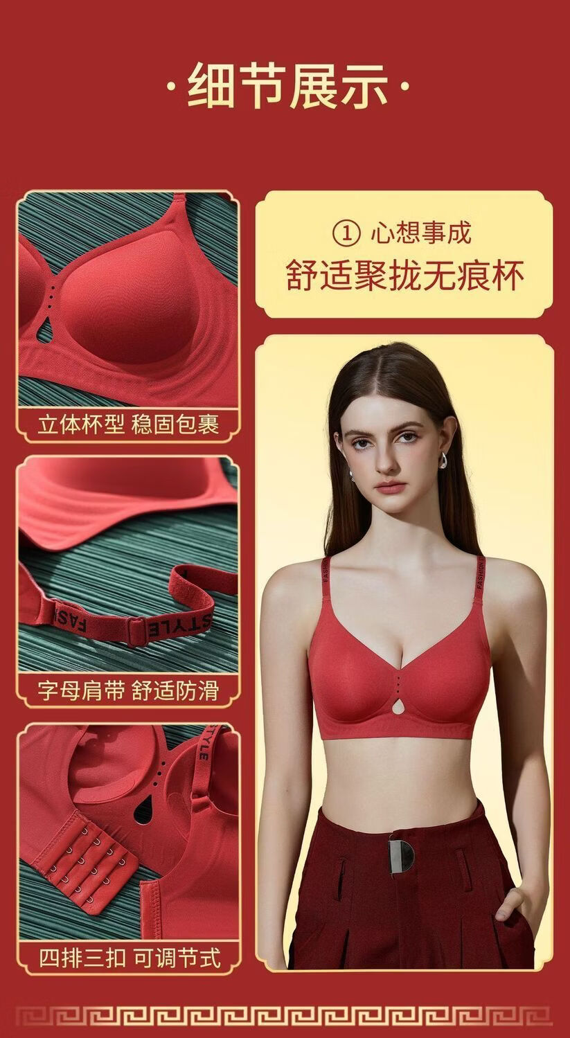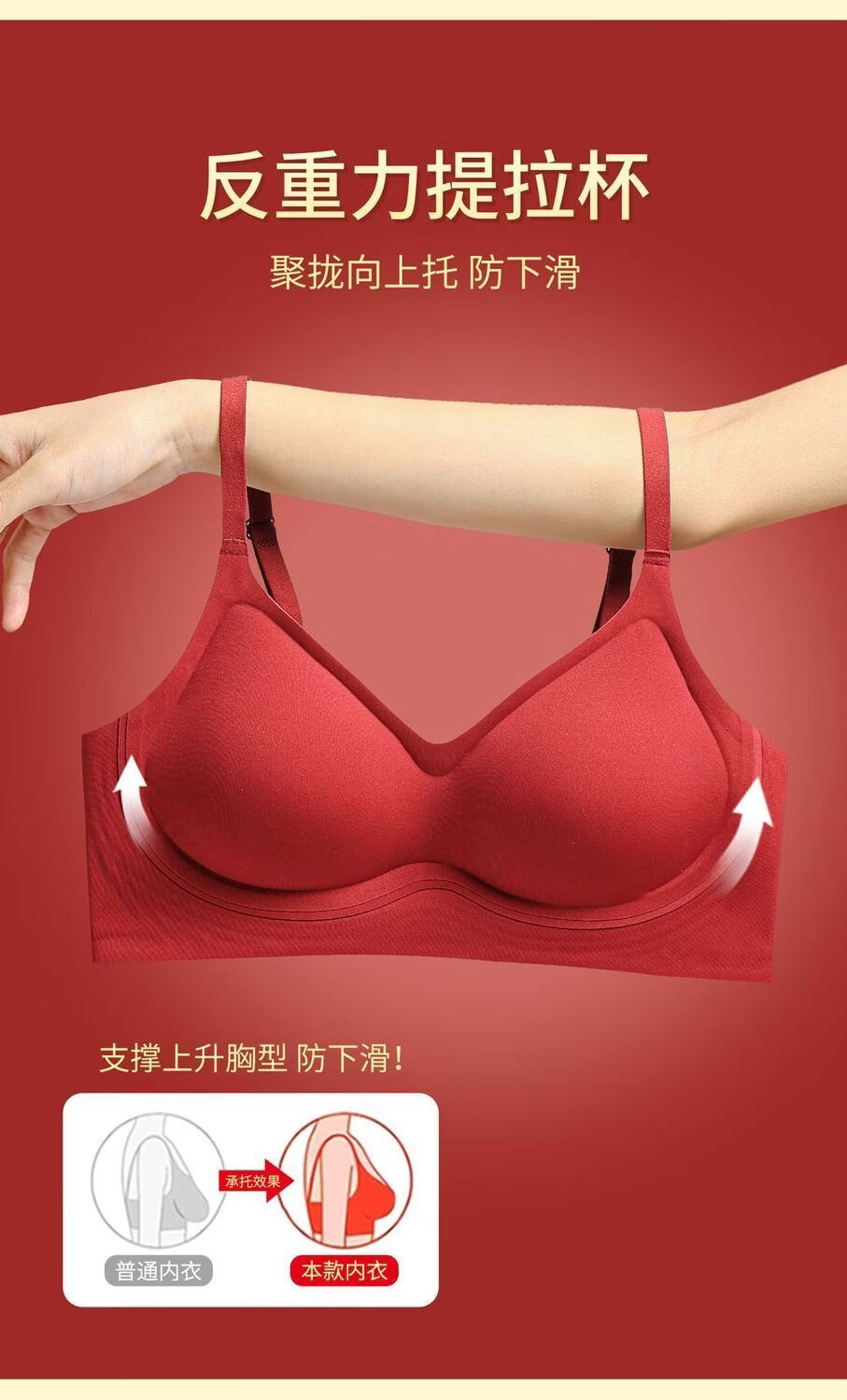 Langsha's zodiac year Qiji red underwear for women with small breasts gathered for the bride's wedding, good luck, anti-sagging, seamless sports bra cover, joyful (underwear + gift box + socks) S suitable for 80-95 Jin Jin equals 0.5 kg