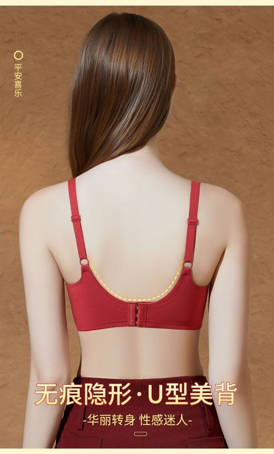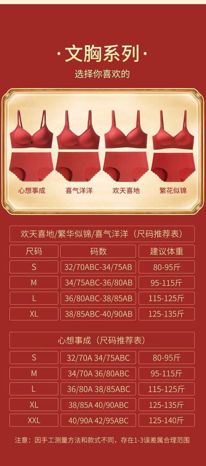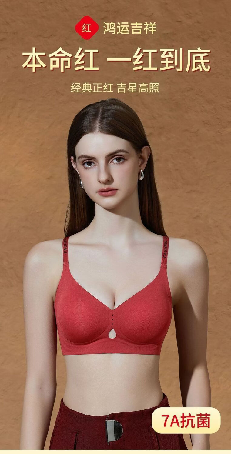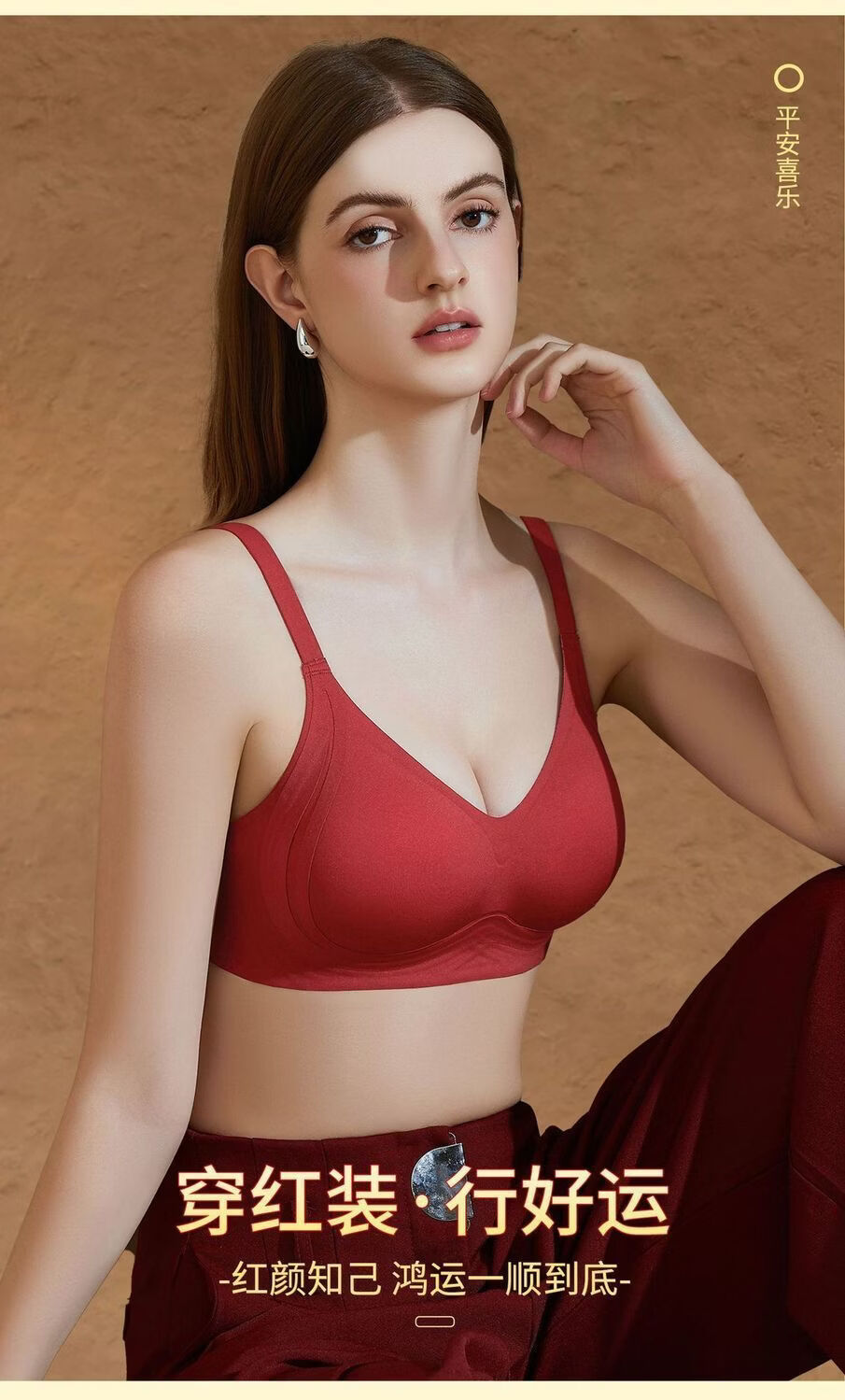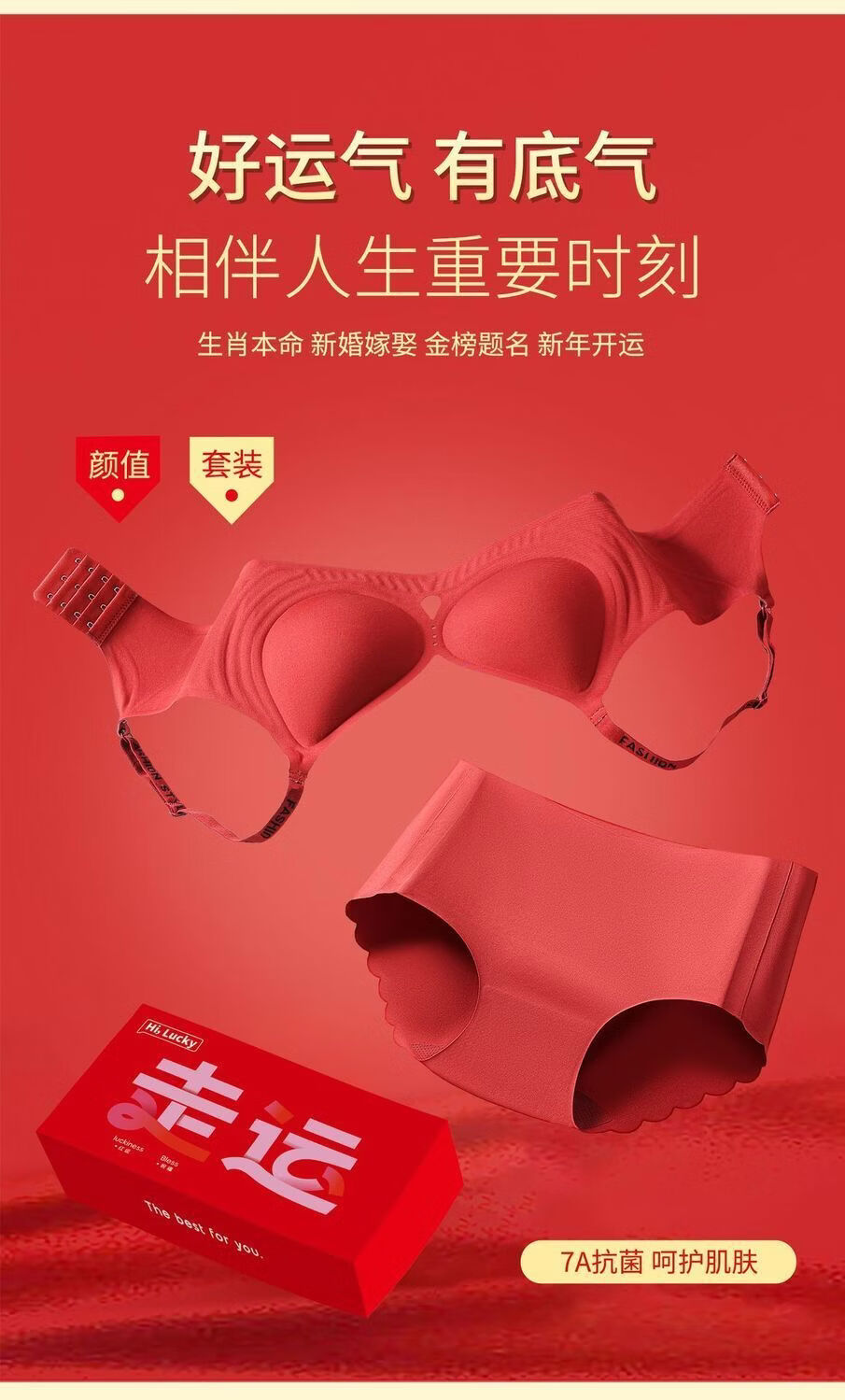 Langsha's zodiac year Qiji red underwear for women with small breasts gathered for the bride's wedding, good luck, anti-sagging, seamless sports bra cover, joyful (underwear + gift box + socks) S suitable for 80-95 Jin Jin equals 0.5 kg