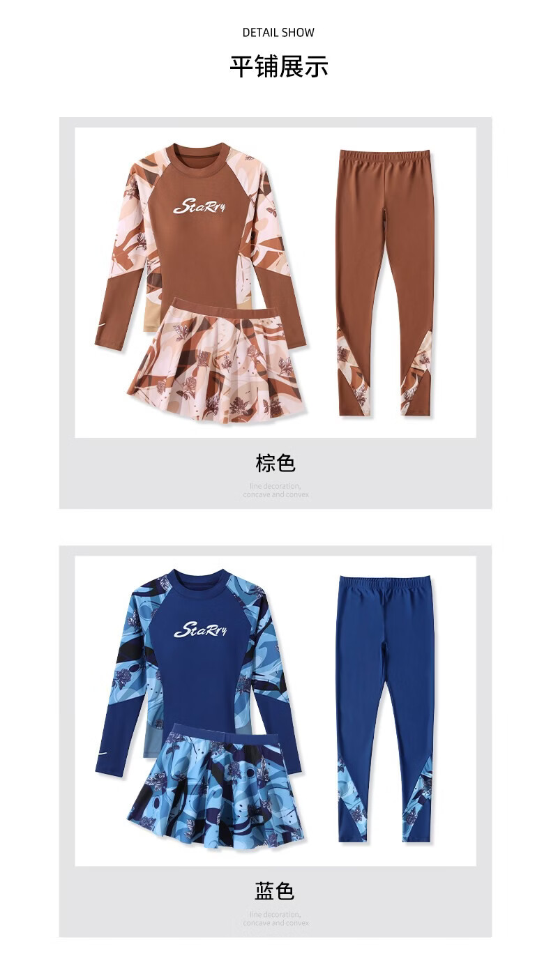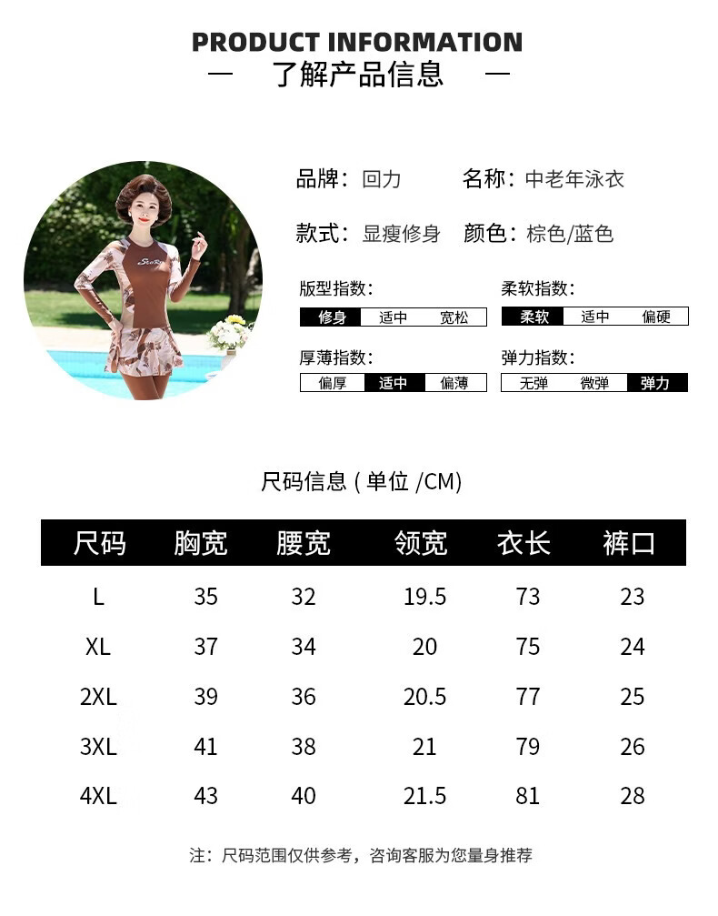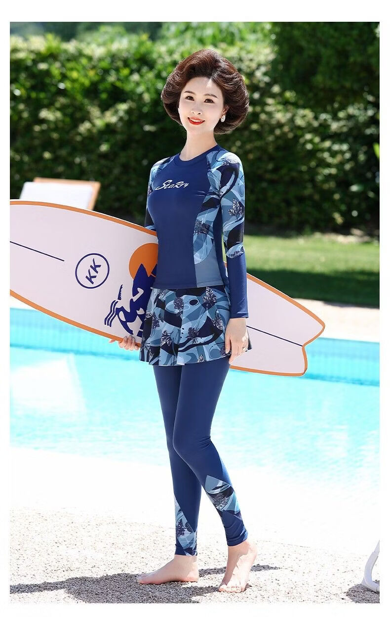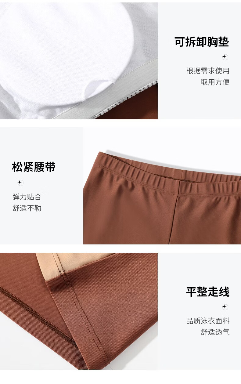 Huali middle-aged and elderly swimsuit three-piece set 2025 new mother girl conservative split long-sleeved trousers slimming hot spring coffee color (mobile phone bag set) L (recommended 90-105 Jin Jin equals 0.5 kg)