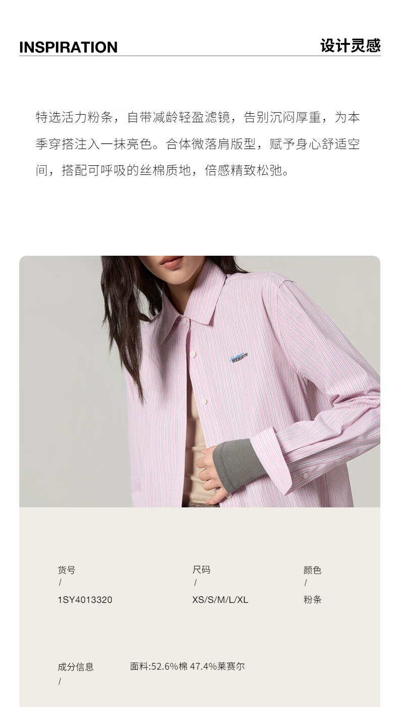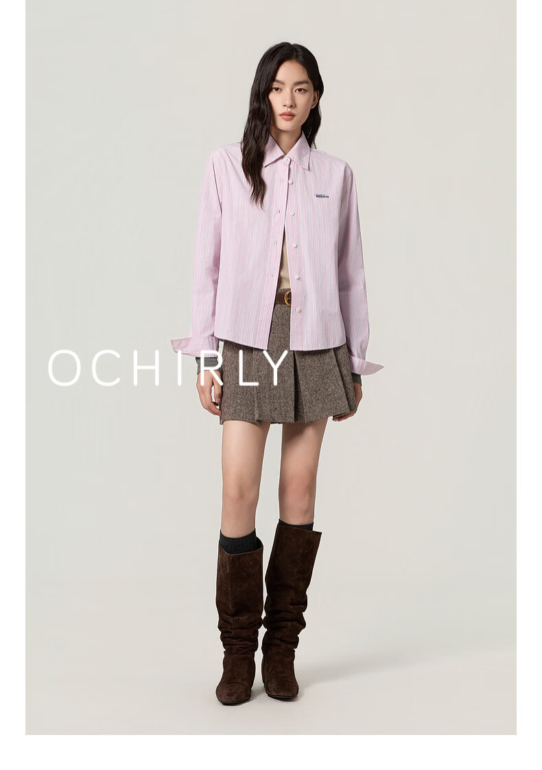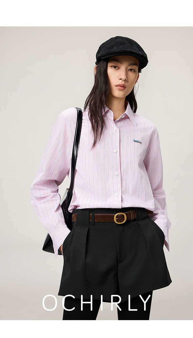 OCHIRLY new Tencel cotton yarn-dyed striped shirt long-sleeved shirt casual 2026 spring official authentic vermicelli XS
