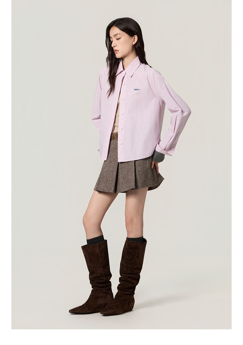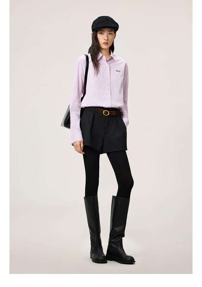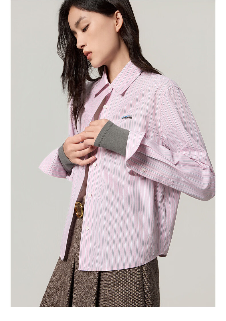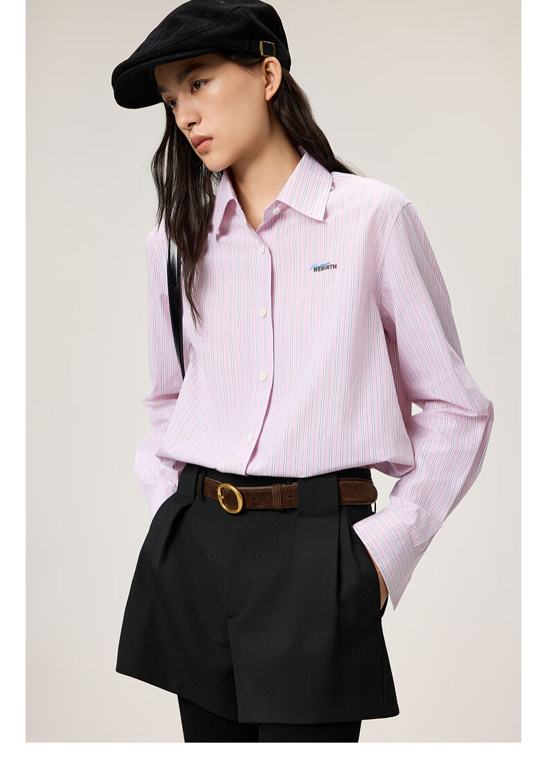 OCHIRLY new Tencel cotton yarn-dyed striped shirt long-sleeved shirt casual 2026 spring official authentic vermicelli XS