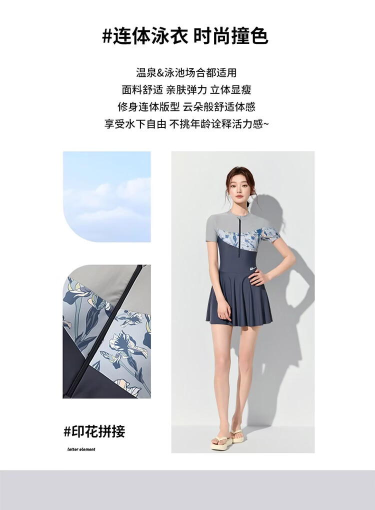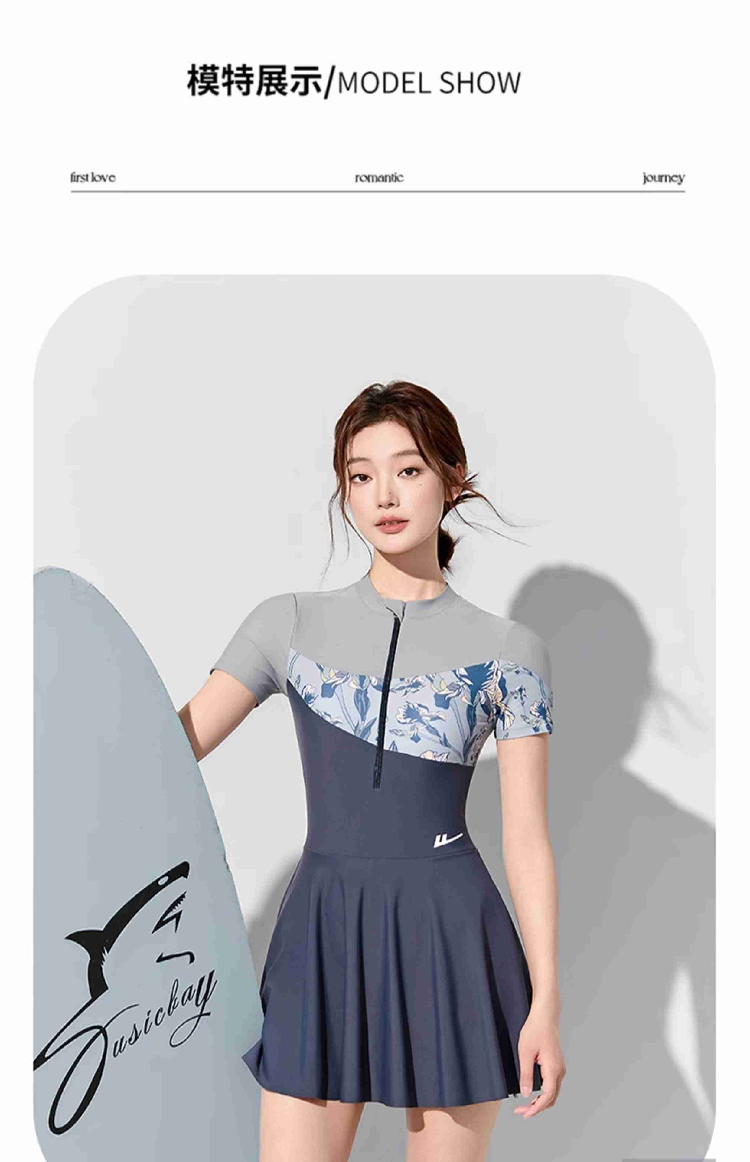 Pull back swimsuit women's 2025 new summer sun protection one-piece conservative slimming body-covering professional sports swimsuit gray XL