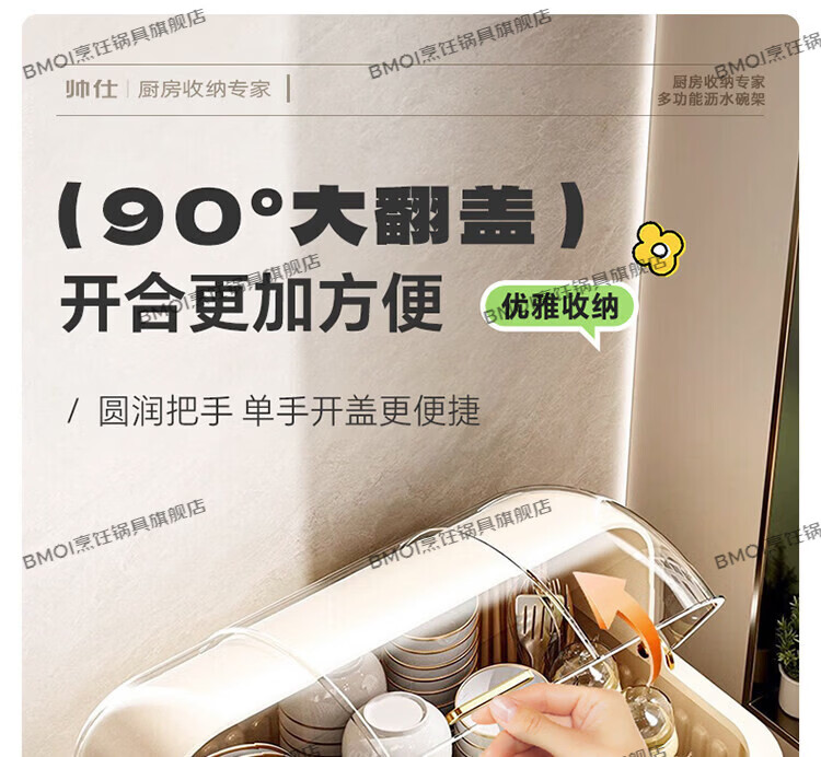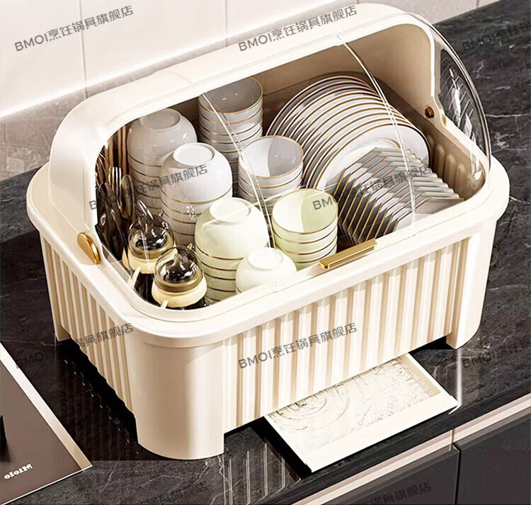 BMOI Germany imported quality tableware storage box bowl and plate cabinet with lid for tableware and bowl box for bowl household storage kitchen thickened extra large cream yellow for about 5-6 people