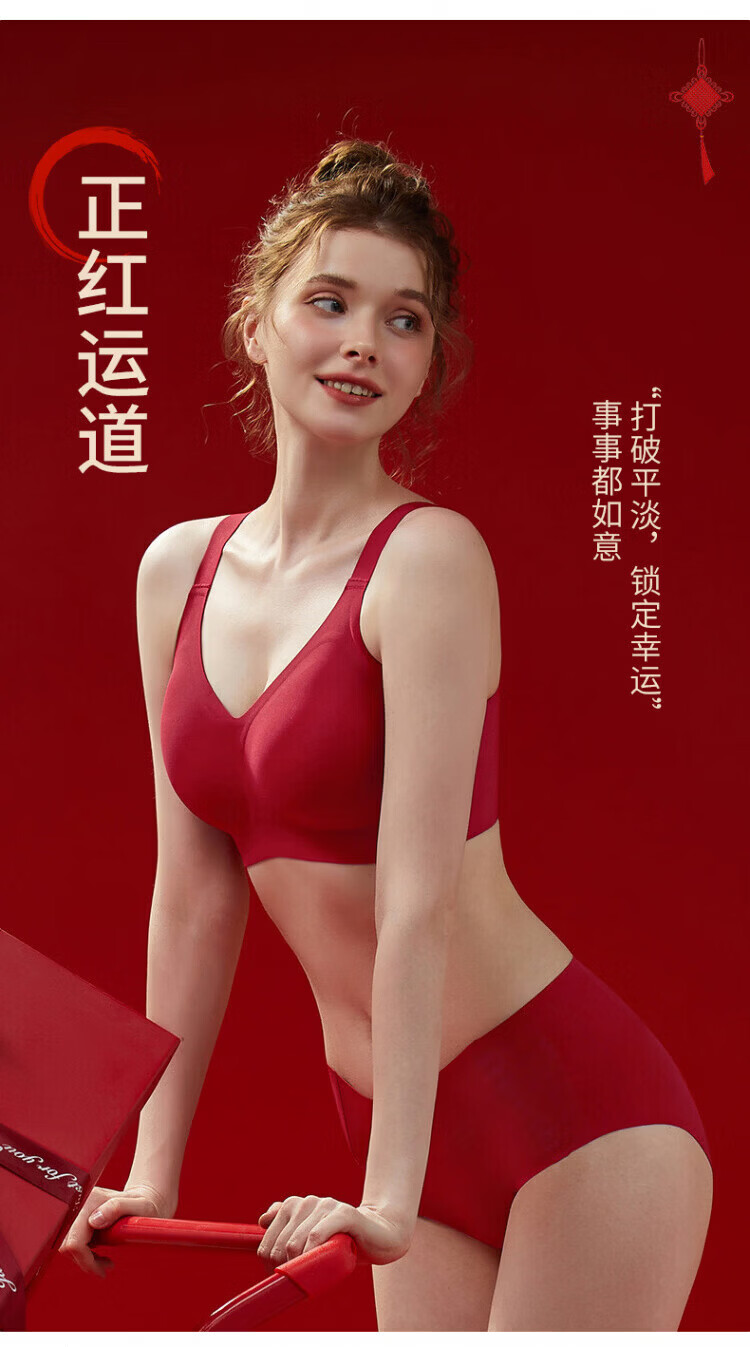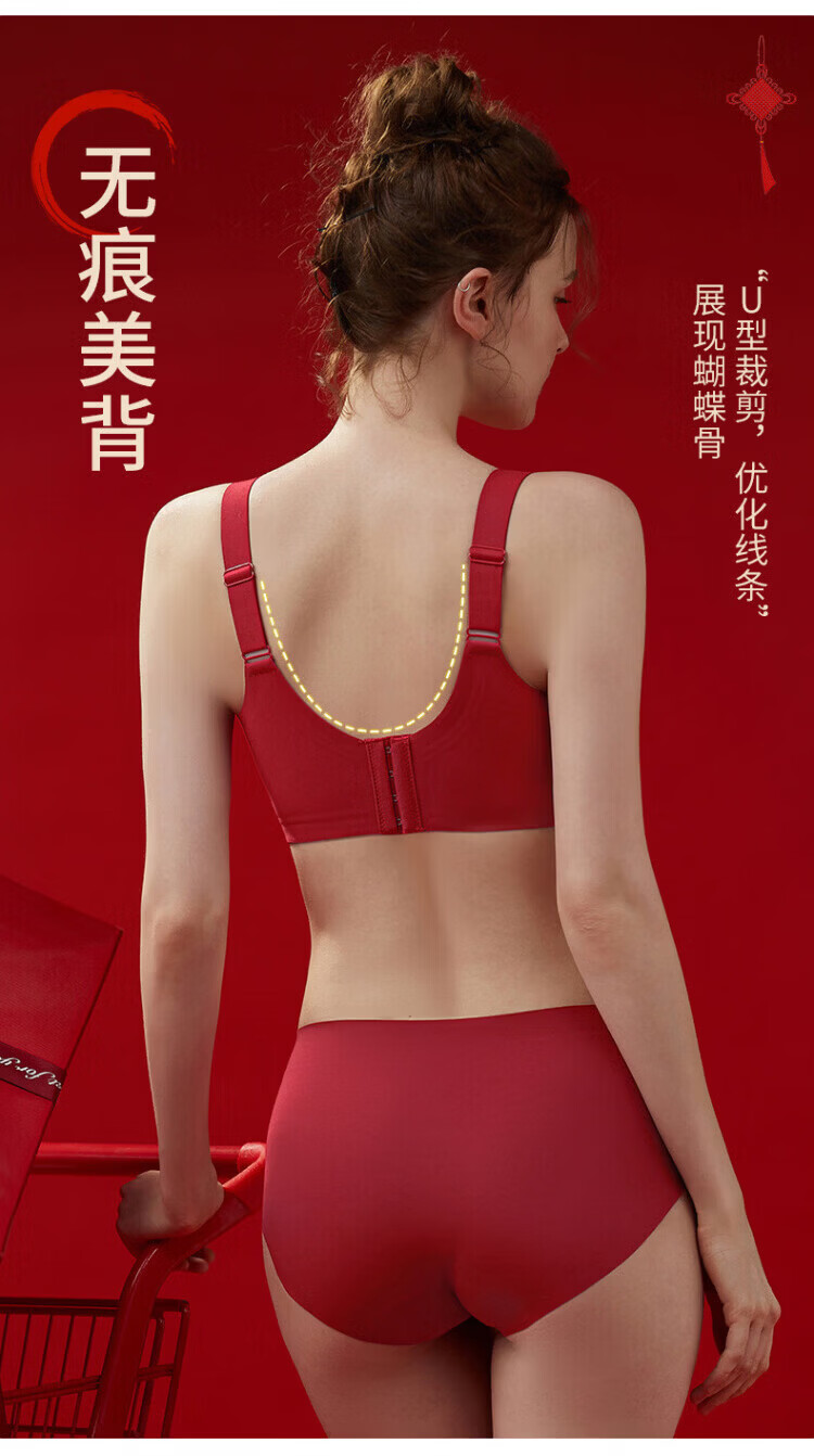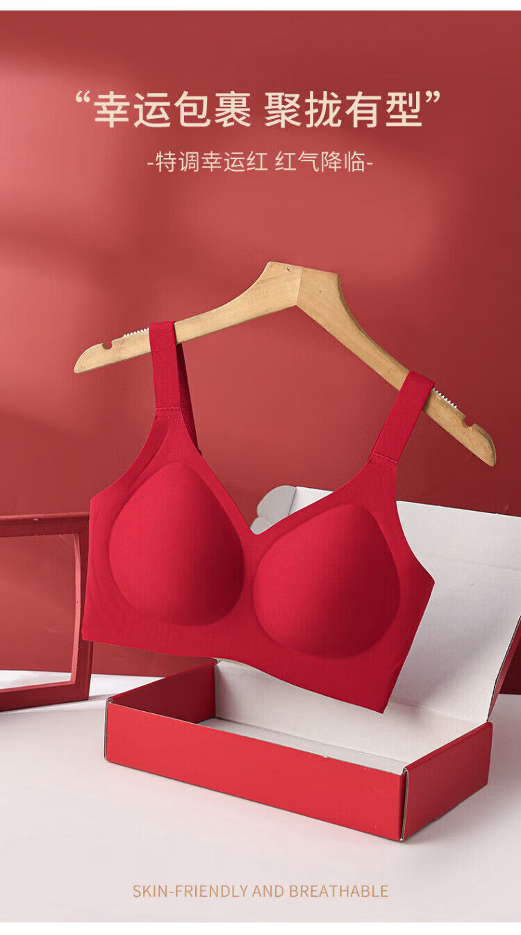 Urban Beauty Red Underwear Women's Push-Up Bra Set Small Breasts Show Big New New Year of the Zodiac Wedding Bride's Nipple Bra Lucky Set Bra + Panties + Red Envelope Transfer Beads + Gift Box M B-D Cup 95-110Jin Jin is equal to 0.5 kg