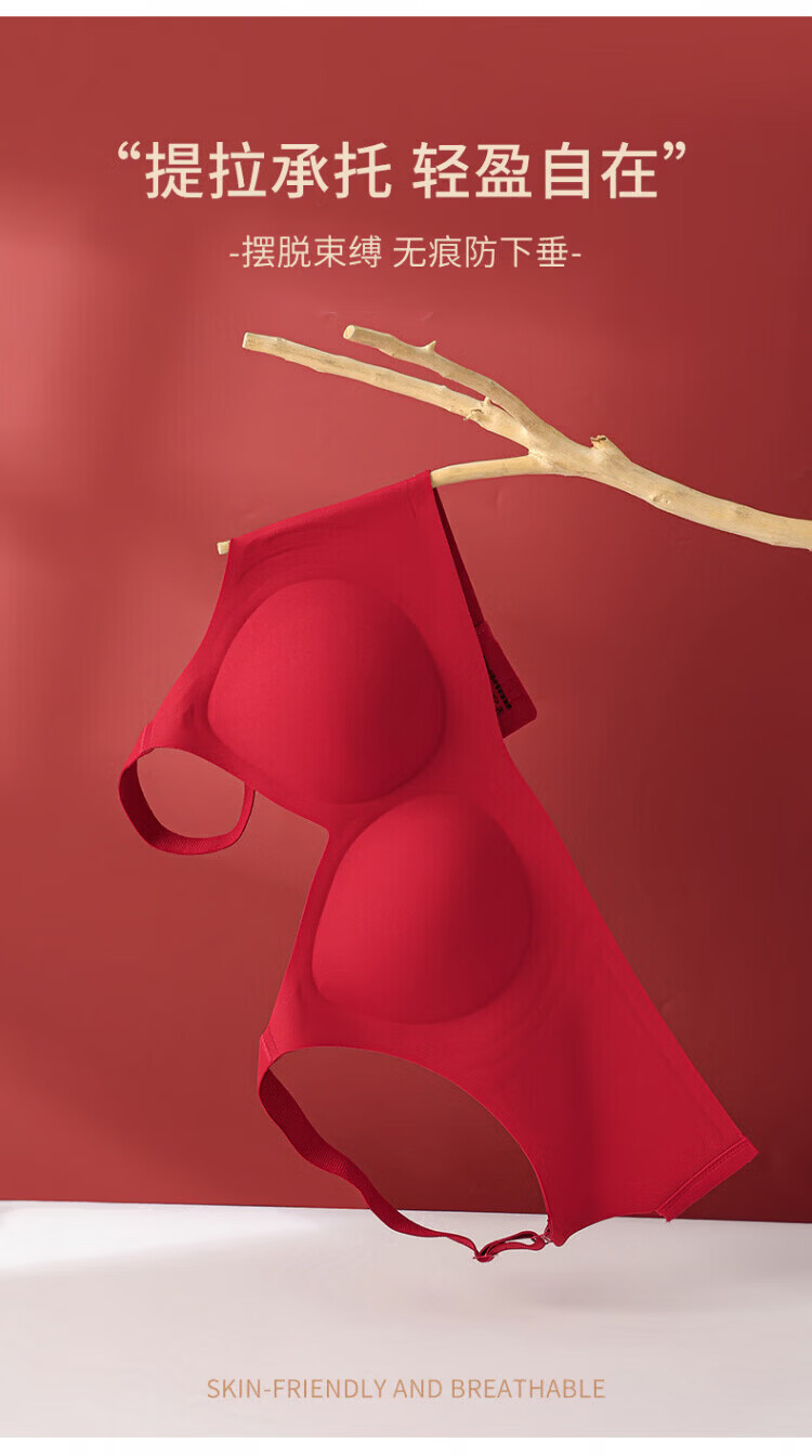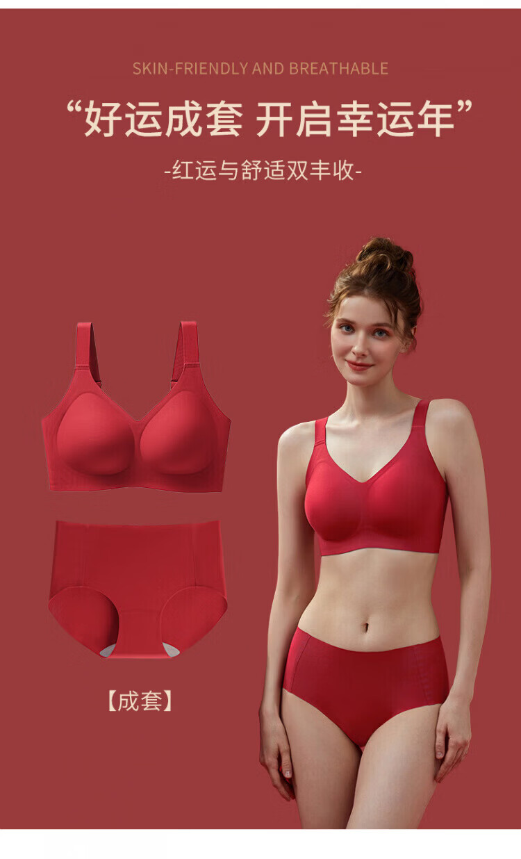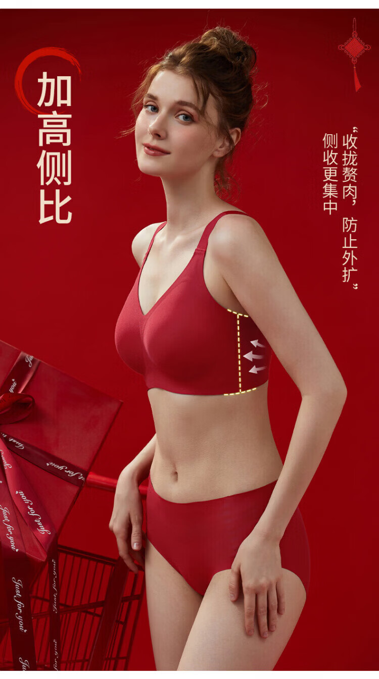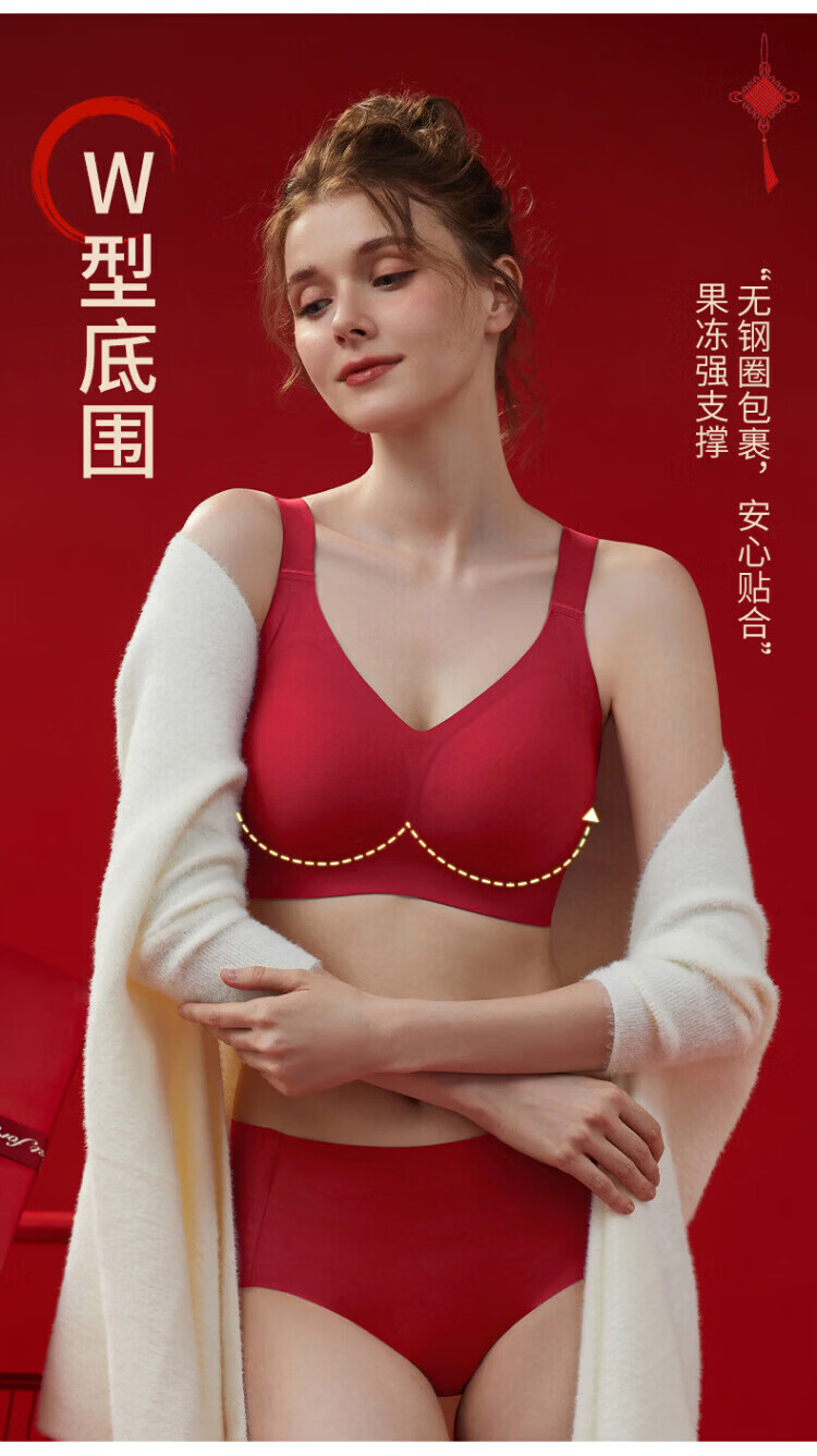 Urban Beauty Red Underwear Women's Push-Up Bra Set Small Breasts Show Big New New Year of the Zodiac Wedding Bride's Nipple Bra Lucky Set Bra + Panties + Red Envelope Transfer Beads + Gift Box M B-D Cup 95-110Jin Jin is equal to 0.5 kg