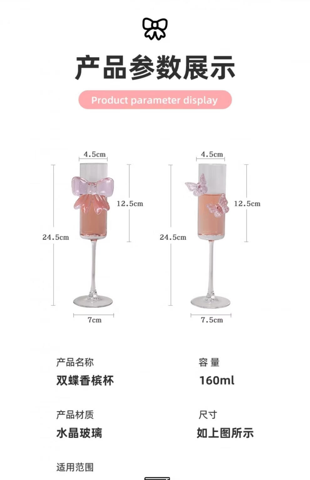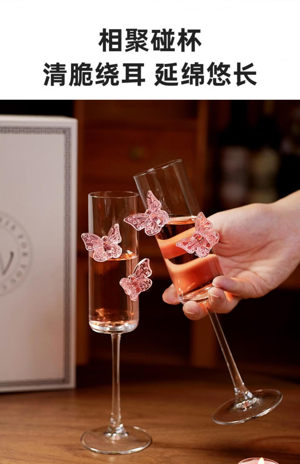 Siganu crystal champagne glass gift box high-value wine glass pair 1 butterfly champagne glass