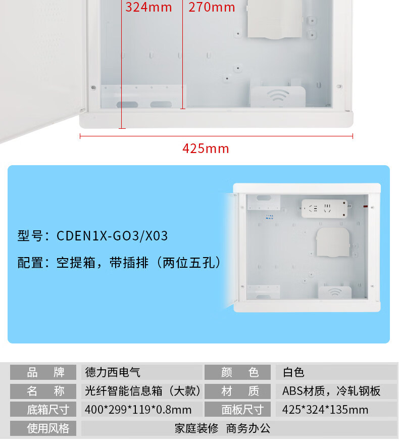 Delixi home concealed weak current box large multimedia information box fiber optic network distribution box module point modification two-person five-hole plug strip + folding cat rack store manager recommendation 400*1