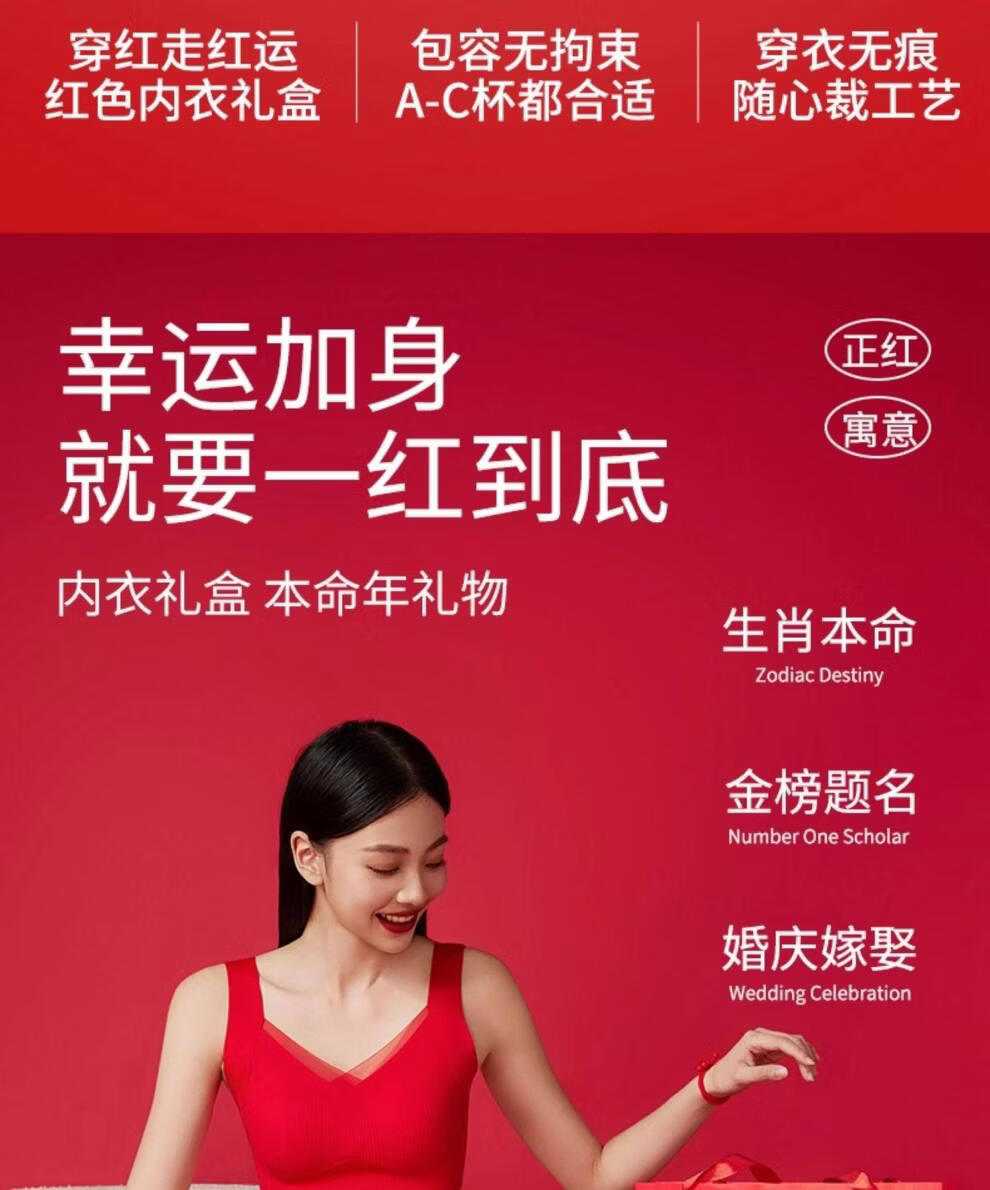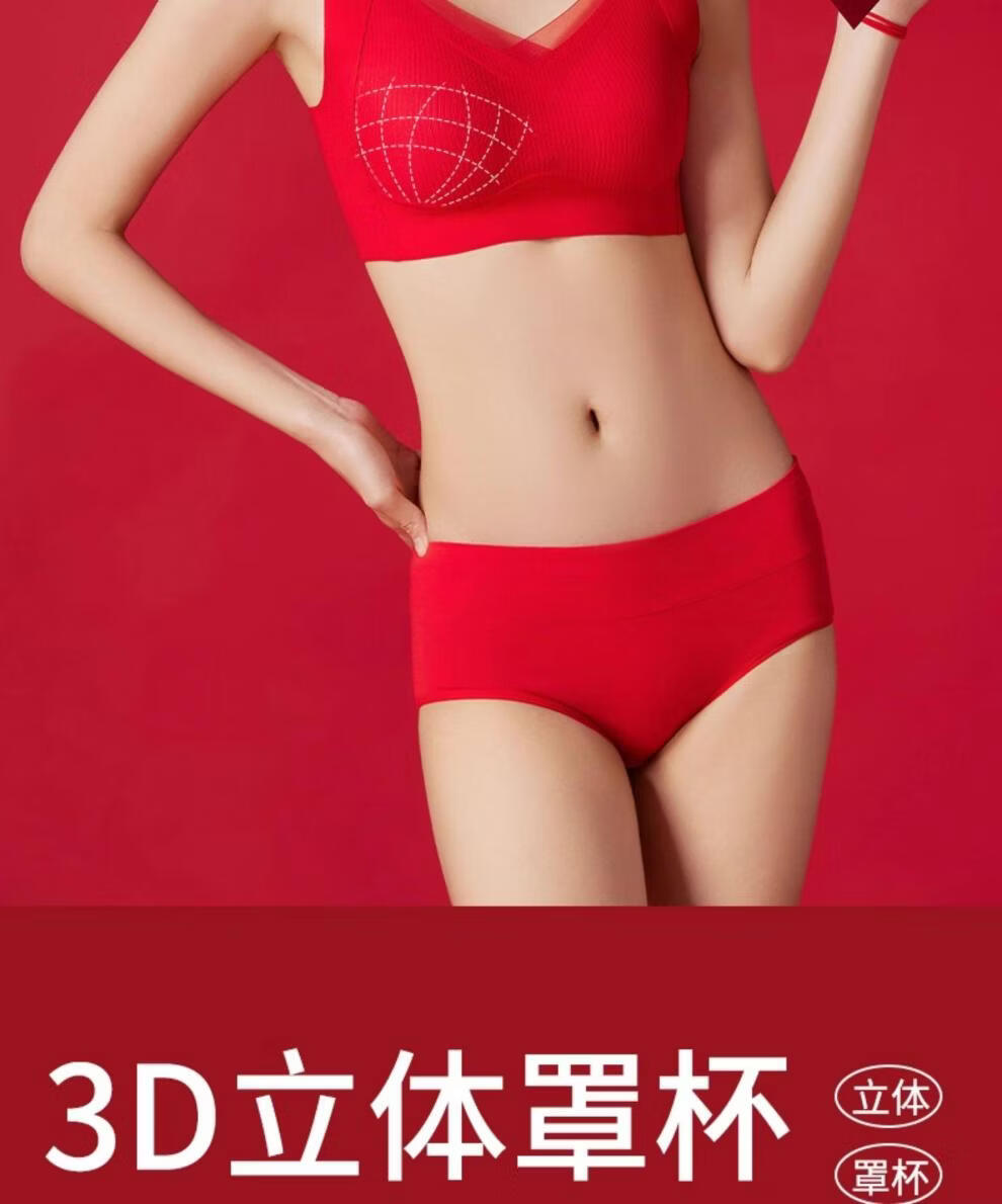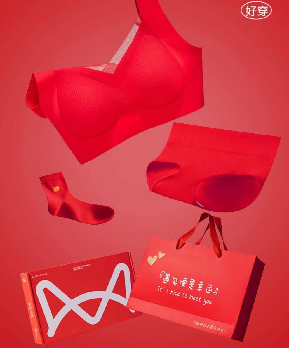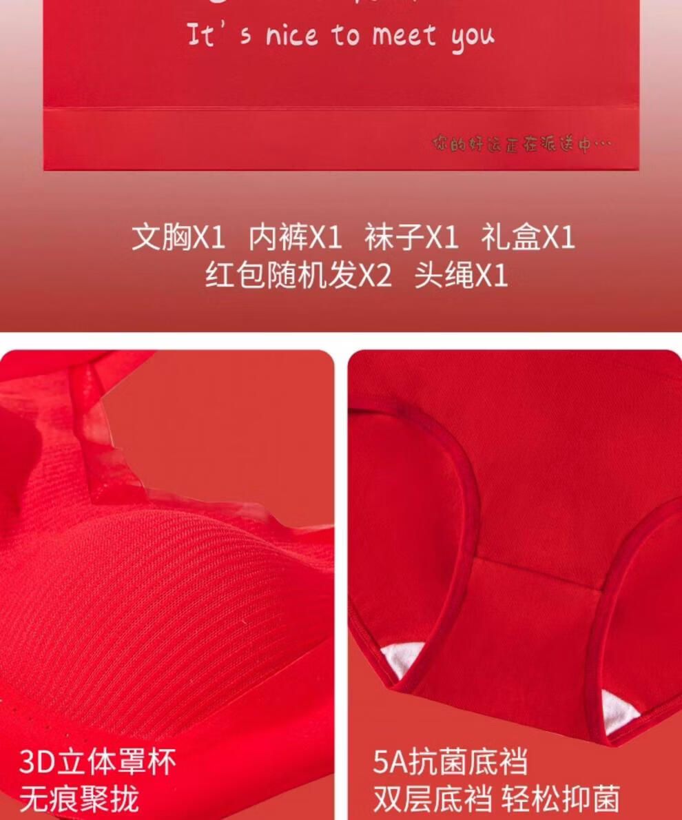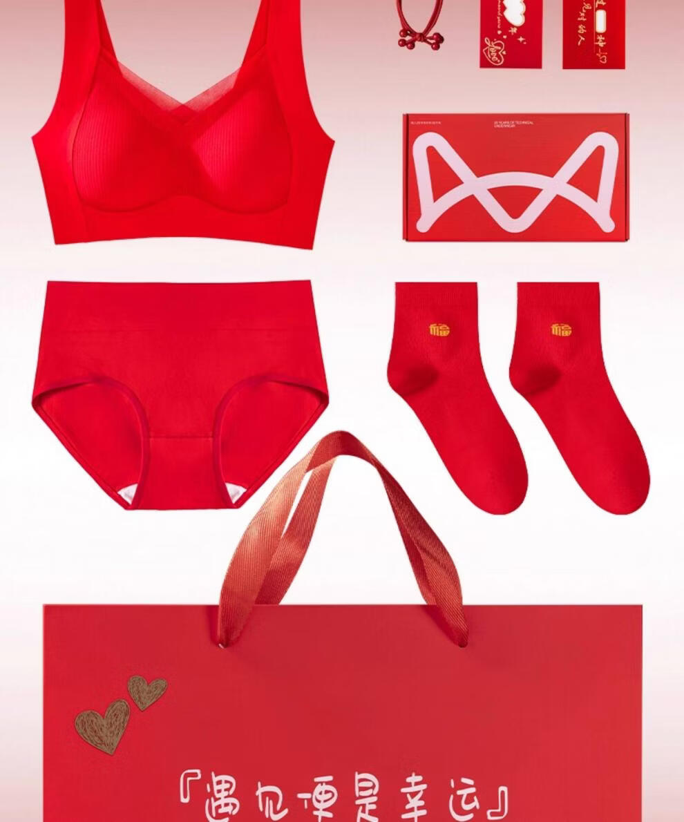 Cat Man (MiiOW) 2026 Year of the Horse Zodiac Year Underwear Set Women's Red Seamless Push-up No Wires Wedding Bridal Bra Vest Style Good Gift Choice Chinese Red Underwear 1+Underwear 1+Socks 1 pair 3XL 42/95ABC 135-150Jin Jin equals 0.5 kg