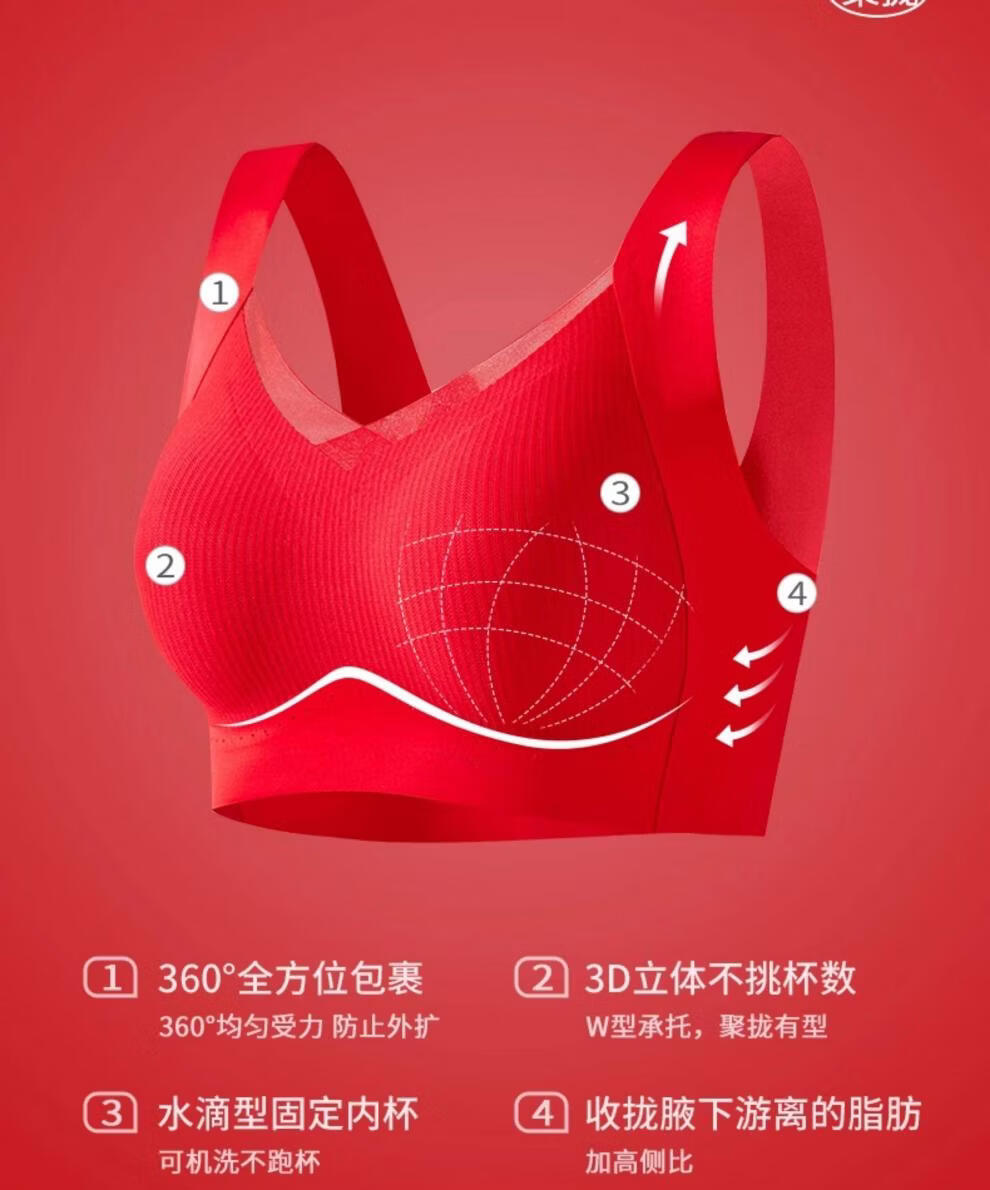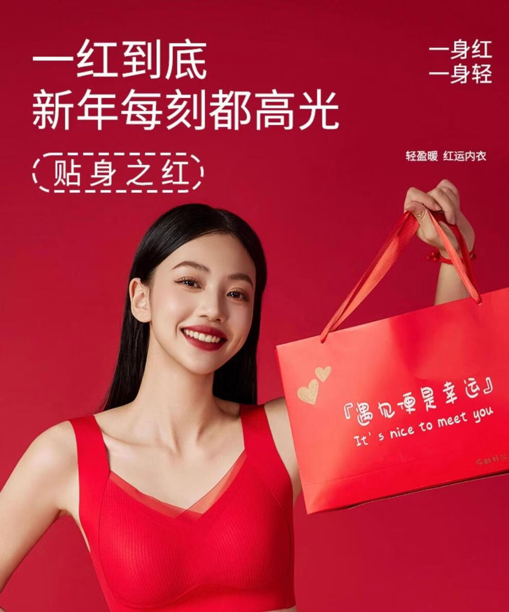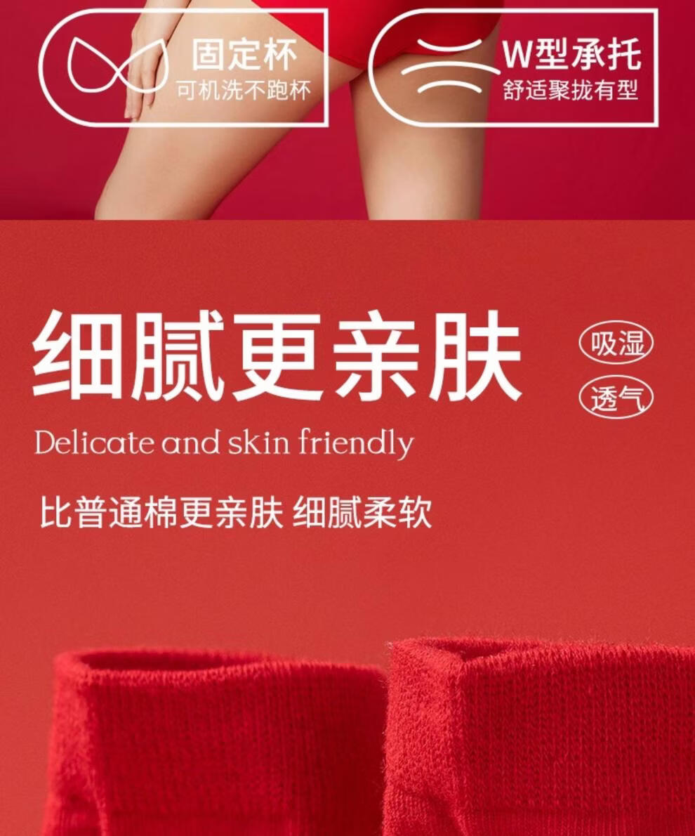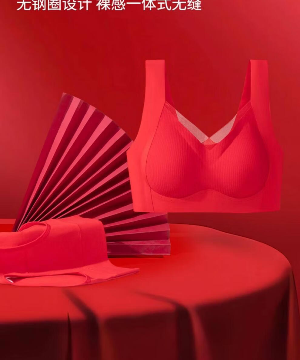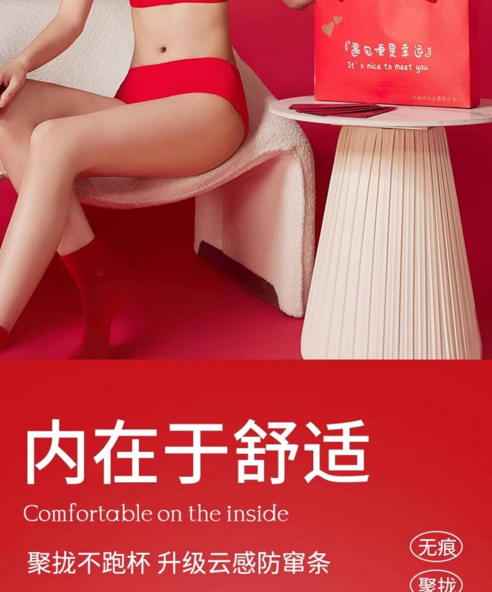Cat Man (MiiOW) 2026 Year of the Horse Zodiac Year Underwear Set Women's Red Seamless Push-up No Wires Wedding Bridal Bra Vest Style Good Gift Choice Chinese Red Underwear 1+Underwear 1+Socks 1 pair 3XL 42/95ABC 135-150Jin Jin equals 0.5 kg