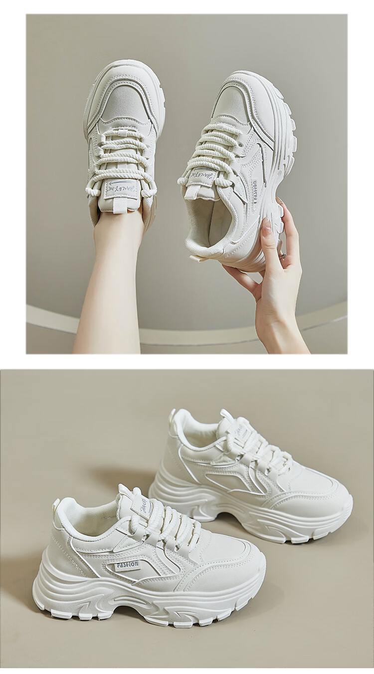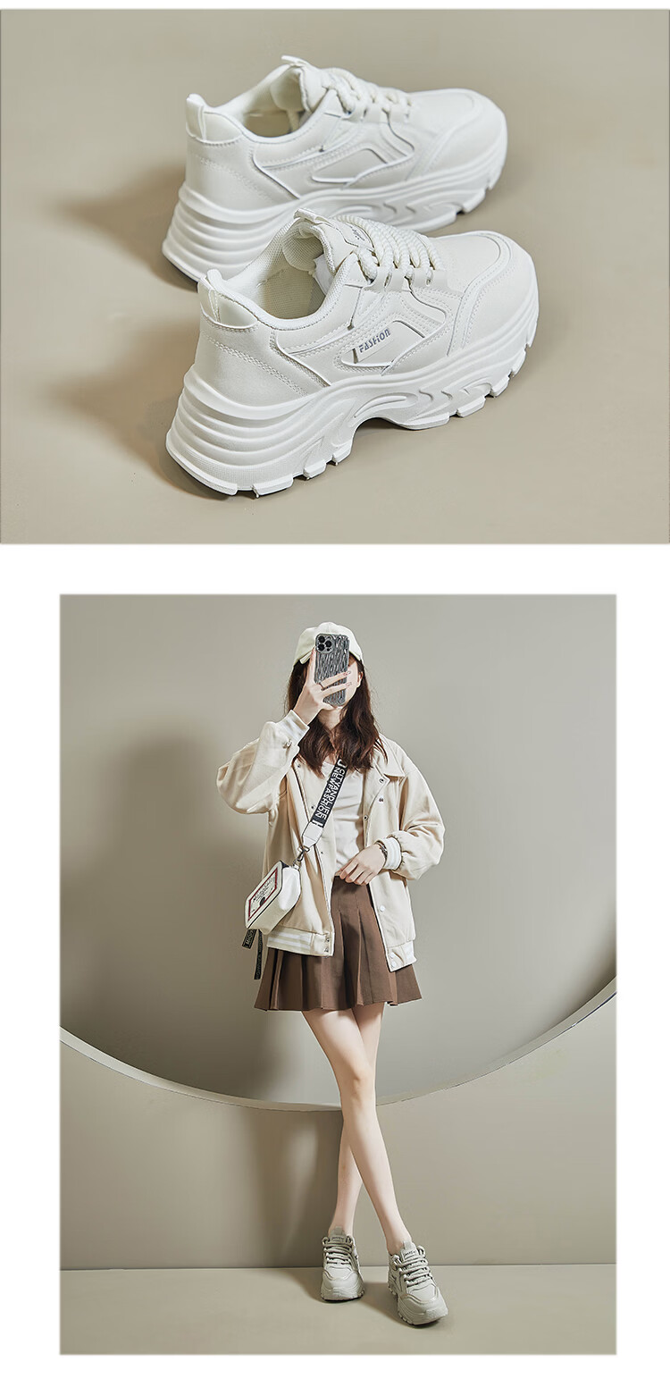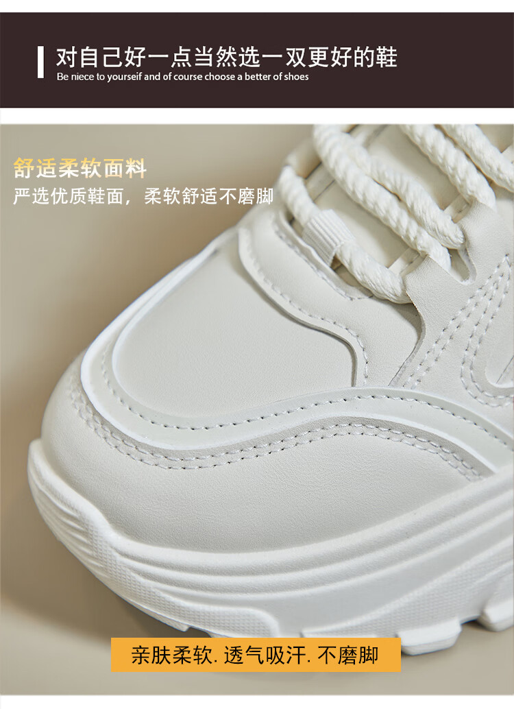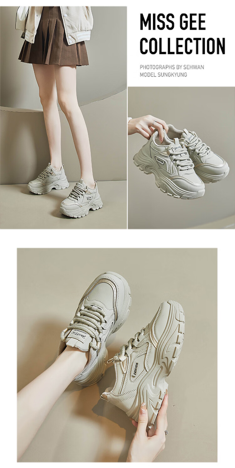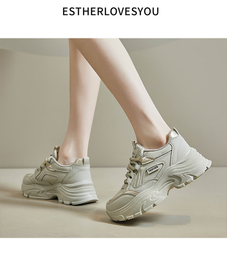 Woodpecker shit-stepping thick-soled dad shoes for women, fashionable and versatile, 2026 spring and autumn new leather waterproof sports and casual shoes, beige 36