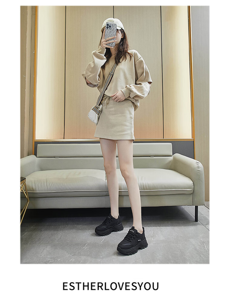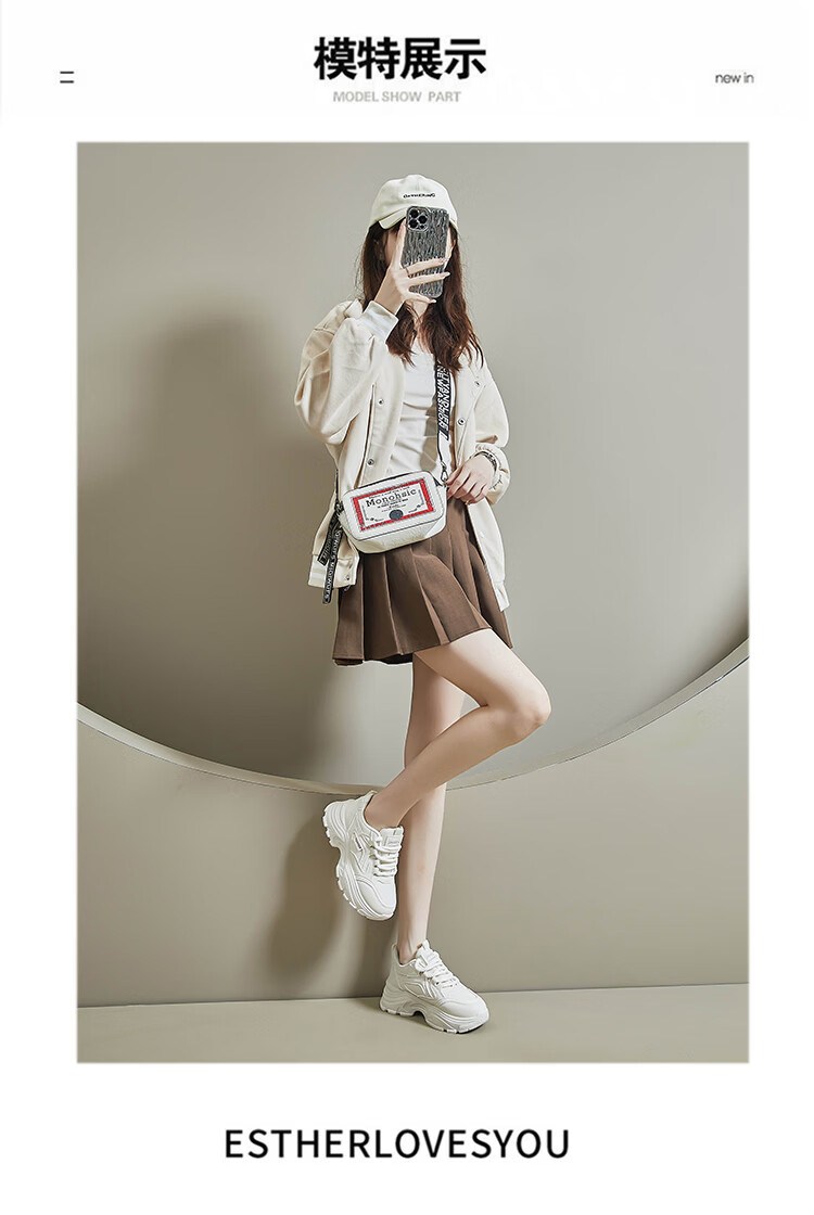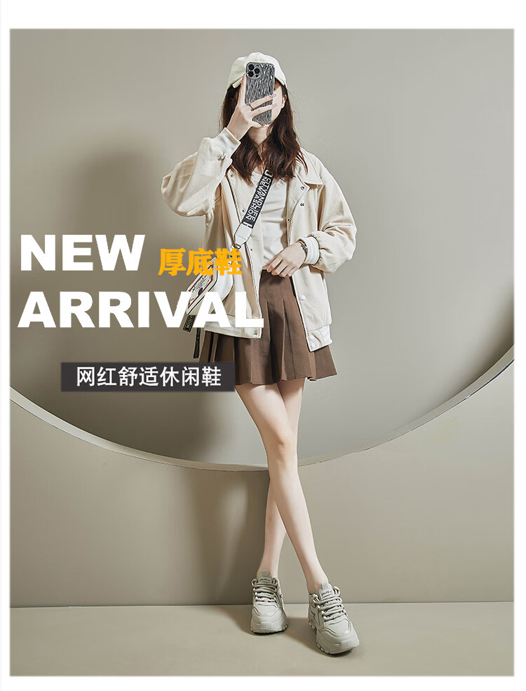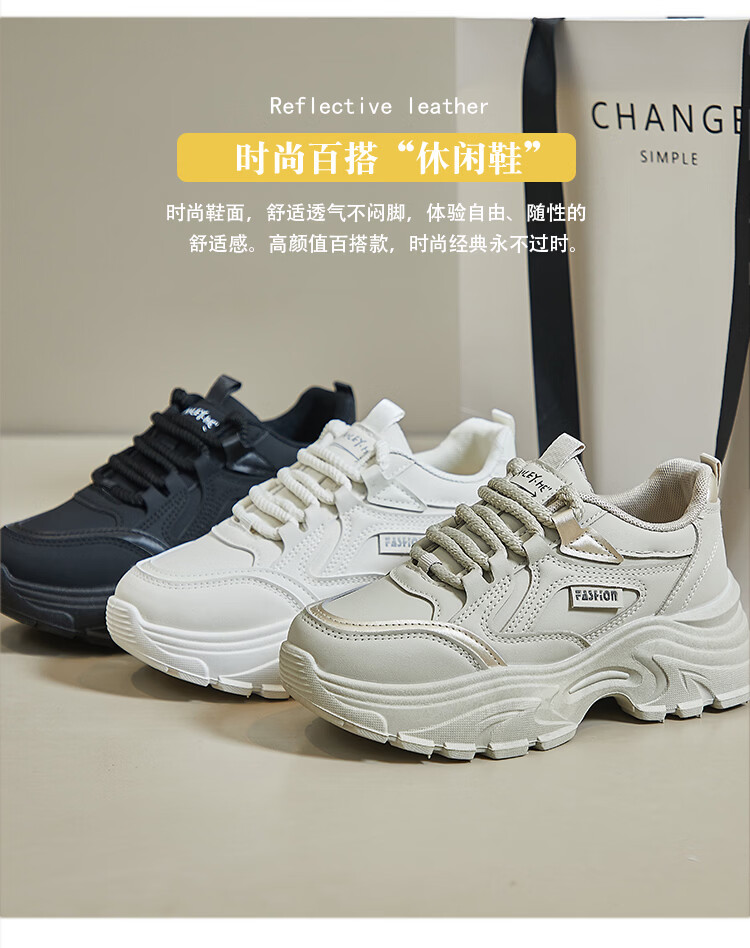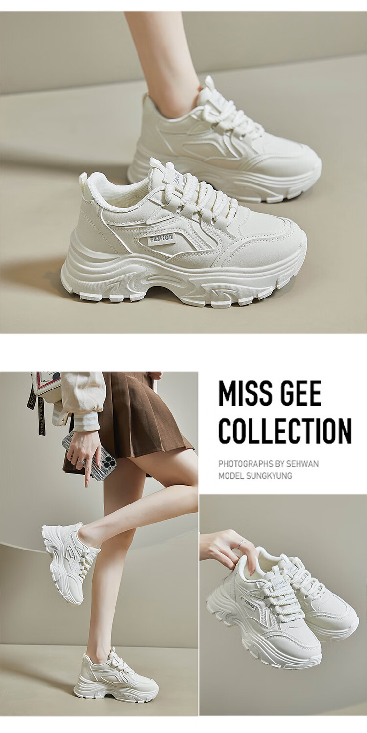 Woodpecker shit-stepping thick-soled dad shoes for women, fashionable and versatile, 2026 spring and autumn new leather waterproof sports and casual shoes, beige 36