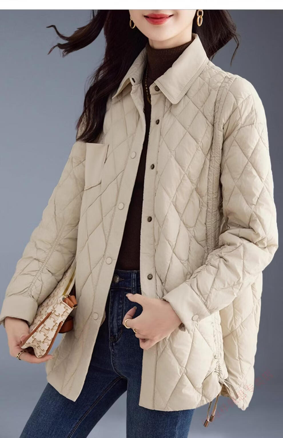Hengyuanxiang Lightweight Down Jacket Medium Long Women's Thin Style 2025 Autumn and Winter New Small Shirt Style High-end White Duck Down Jacket Beige L (125-140Jin Jin equals 0.5kg)