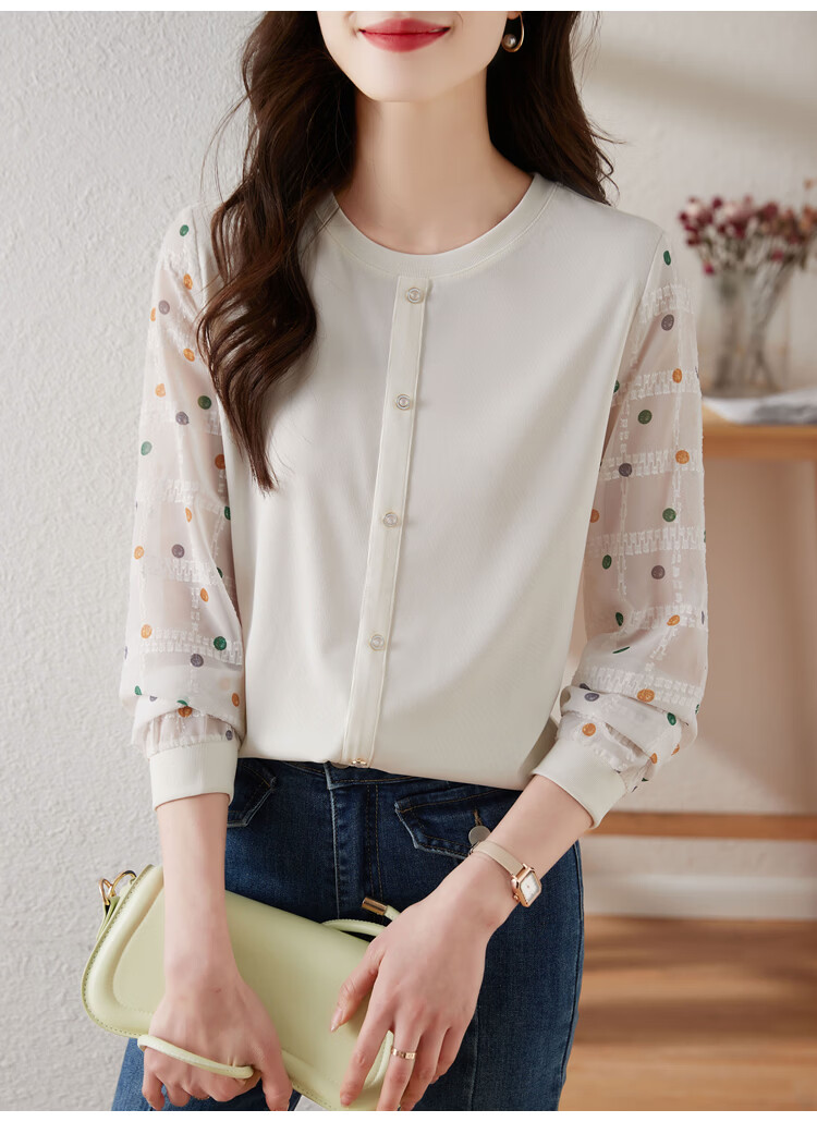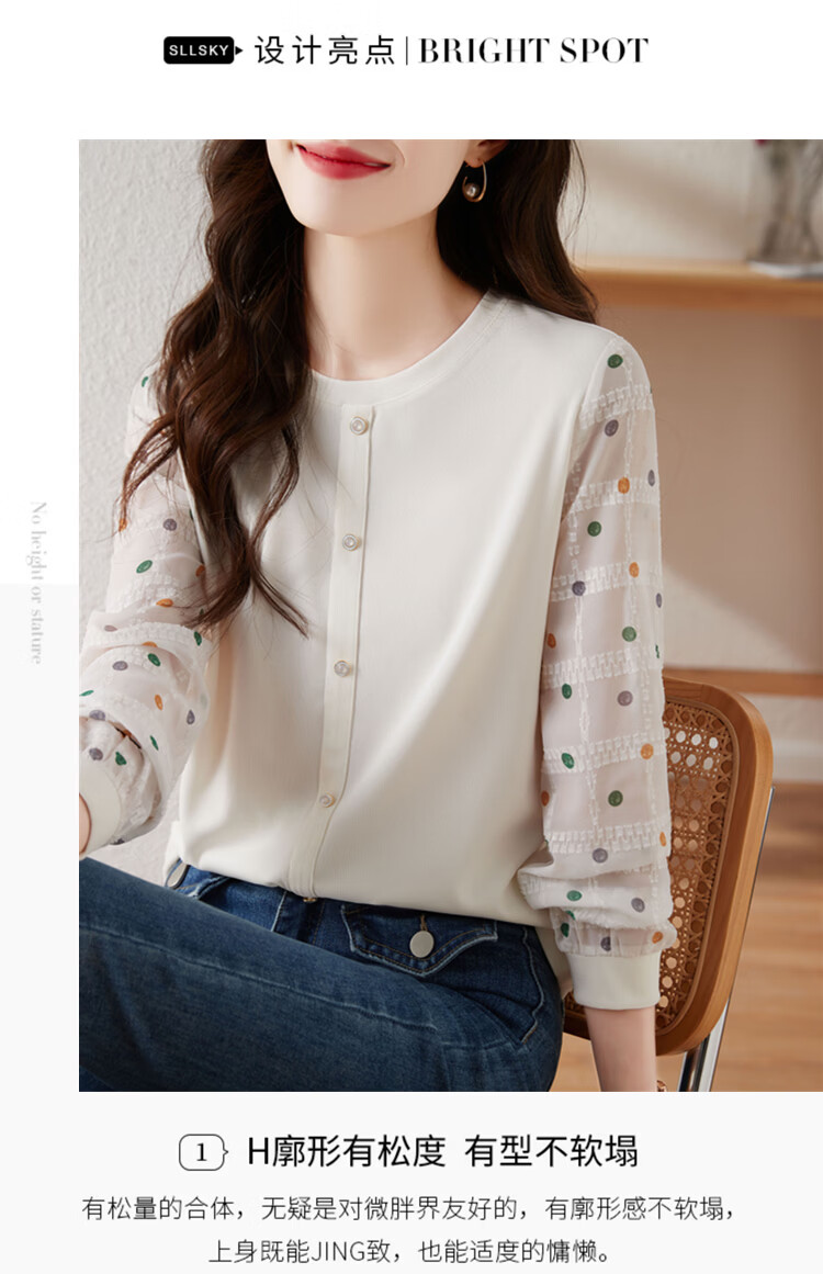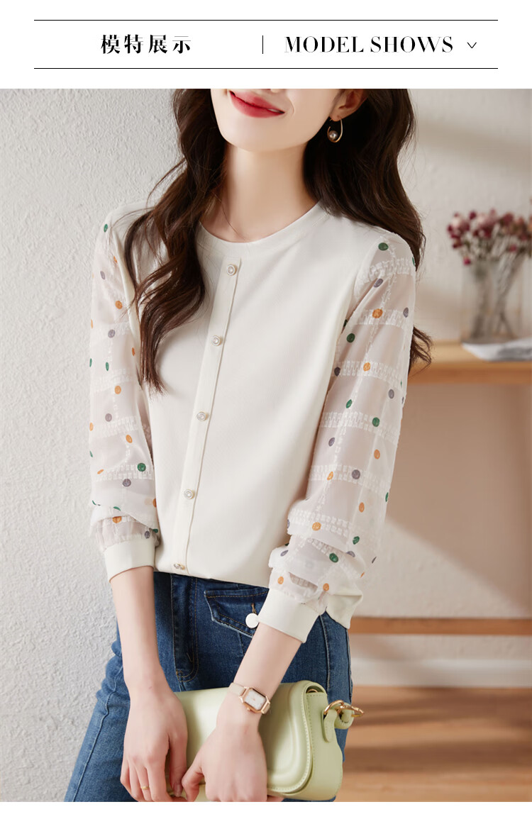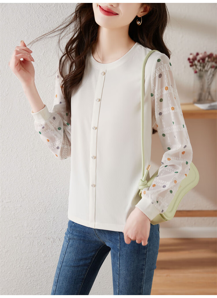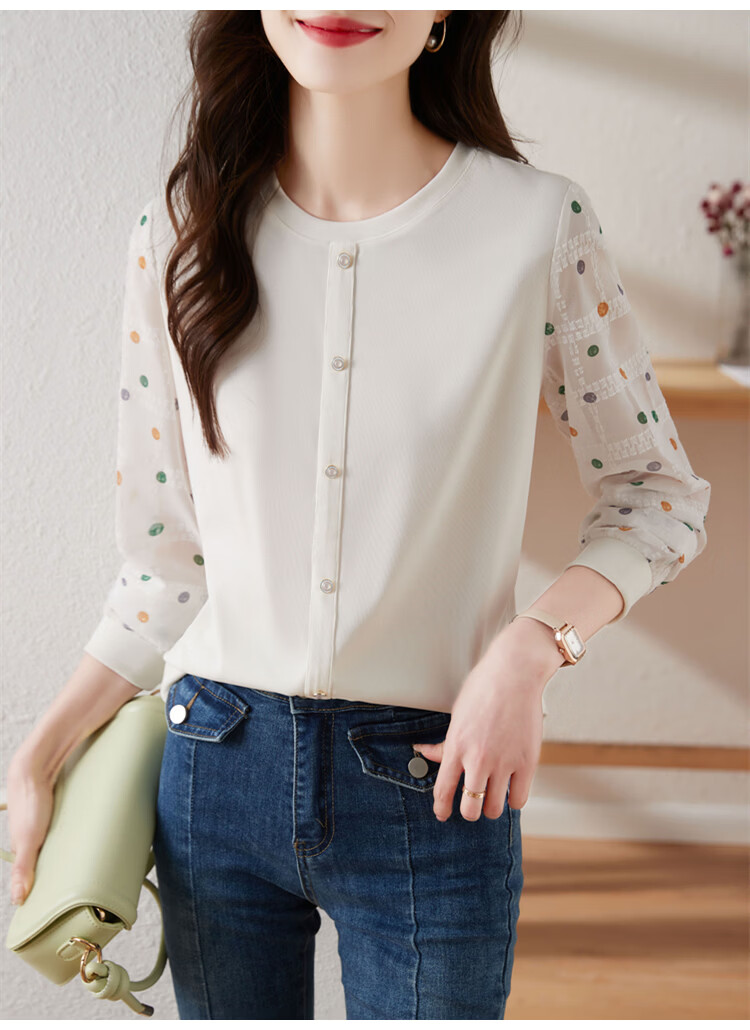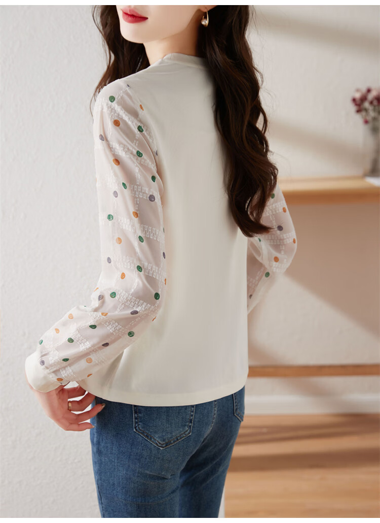 Hengyuanxiang polka-dot long-sleeved chiffon shirt for women 2026 new spring French age-reducing knitted top bottoming shirt early spring white one size