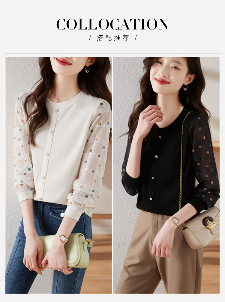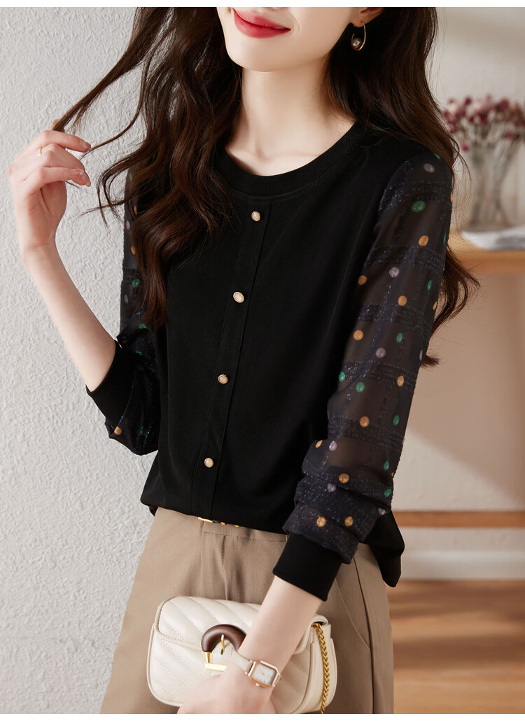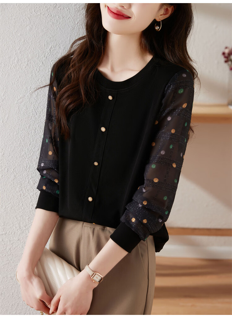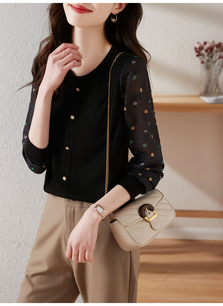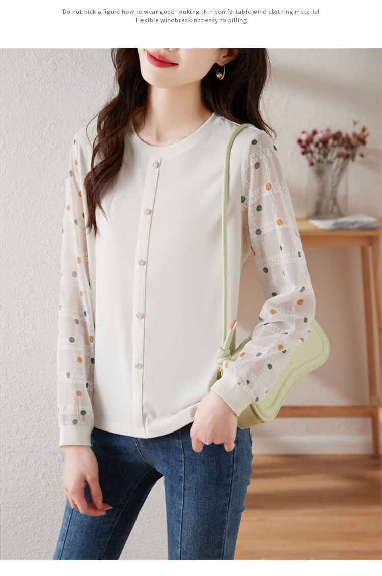 Hengyuanxiang polka-dot long-sleeved chiffon shirt for women 2026 new spring French age-reducing knitted top bottoming shirt early spring white one size