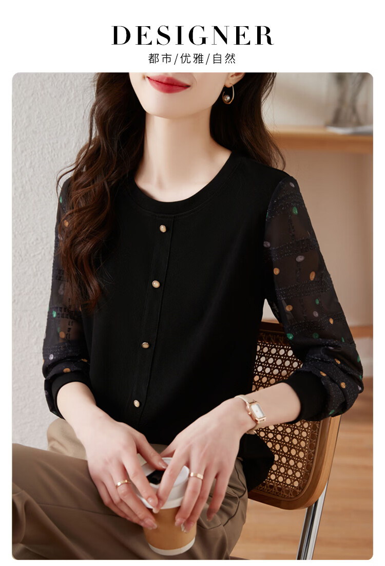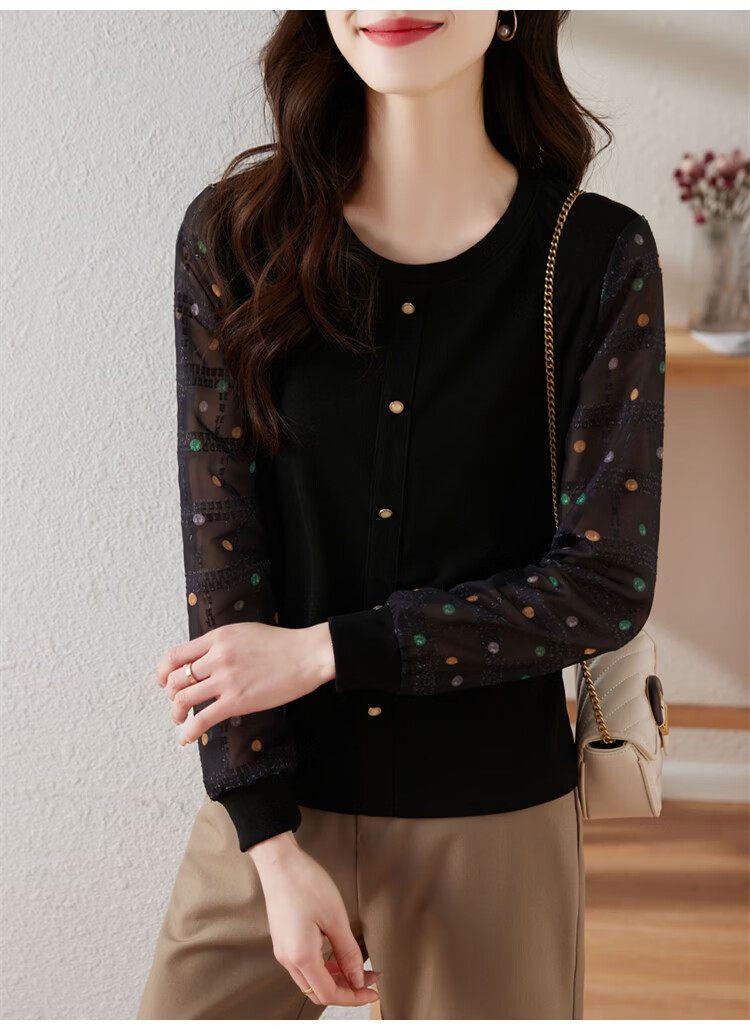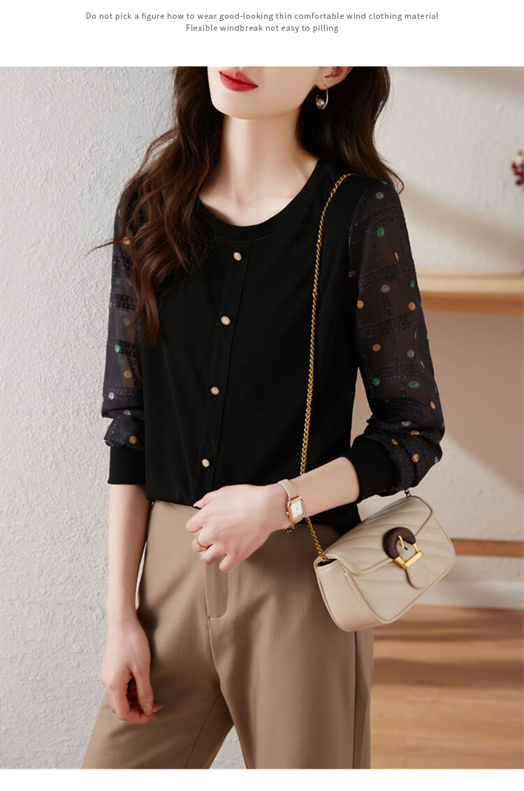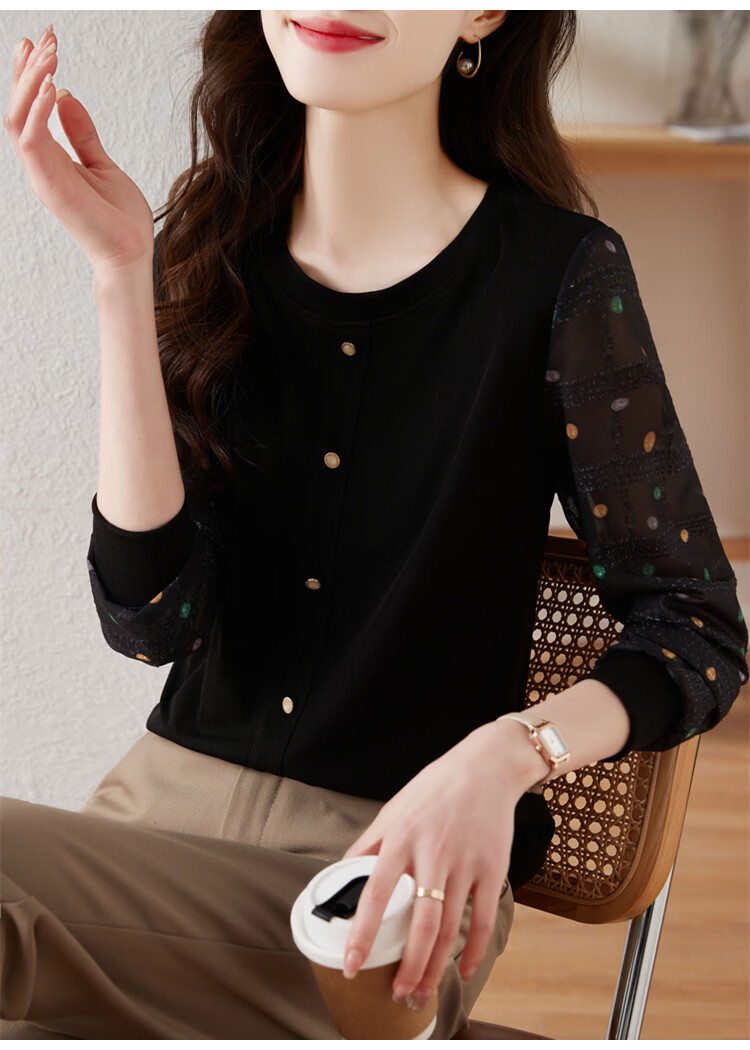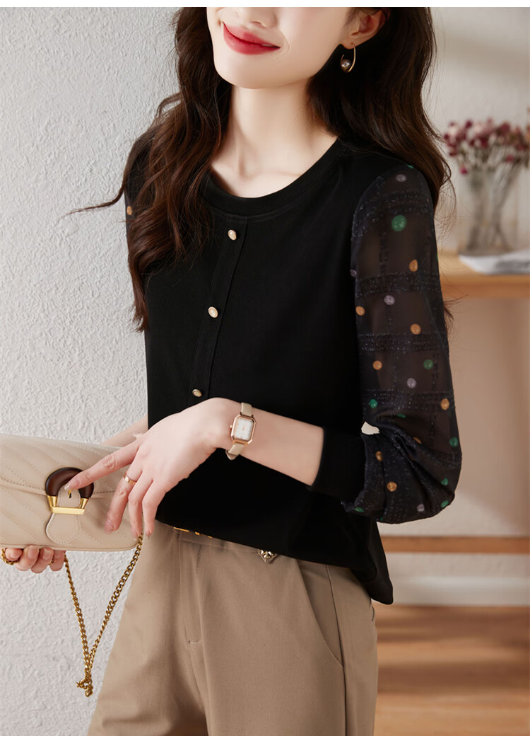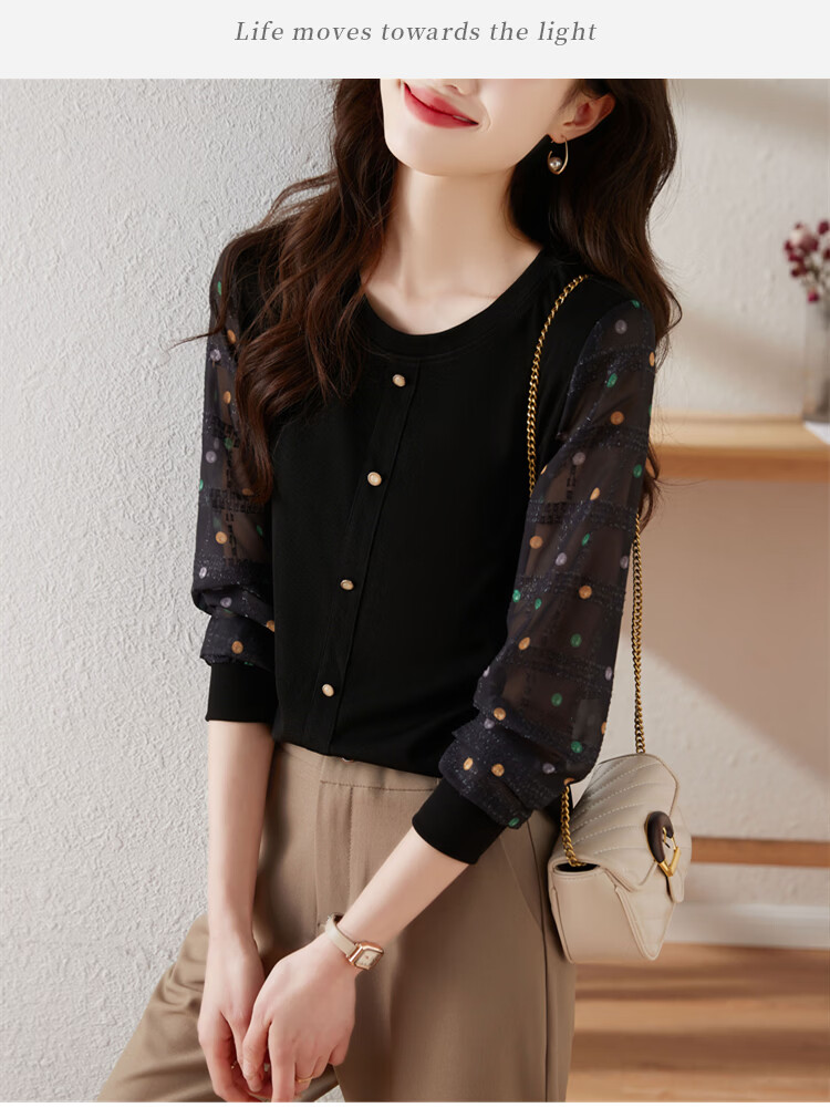 Hengyuanxiang polka-dot long-sleeved chiffon shirt for women 2026 new spring French age-reducing knitted top bottoming shirt early spring white one size