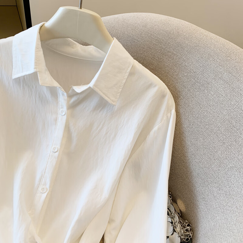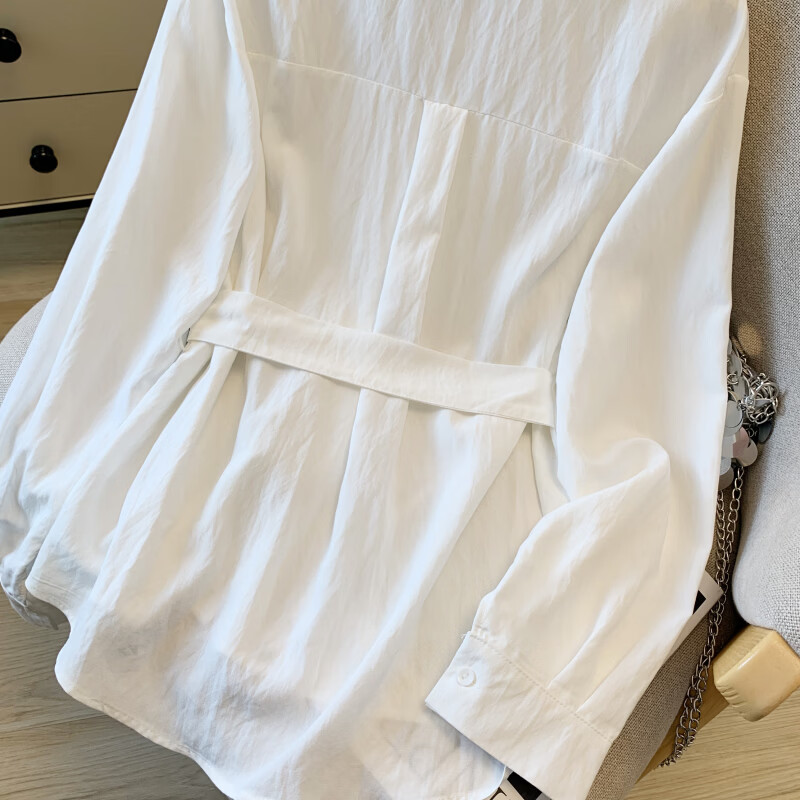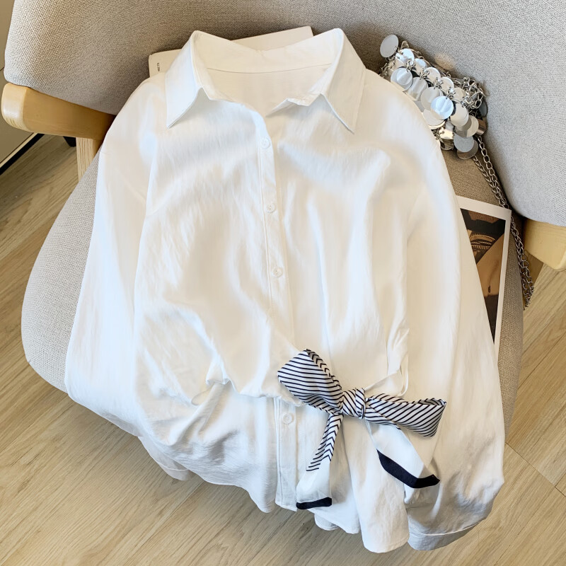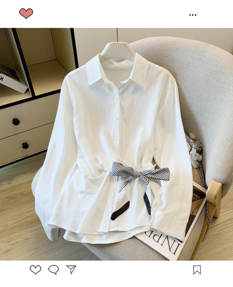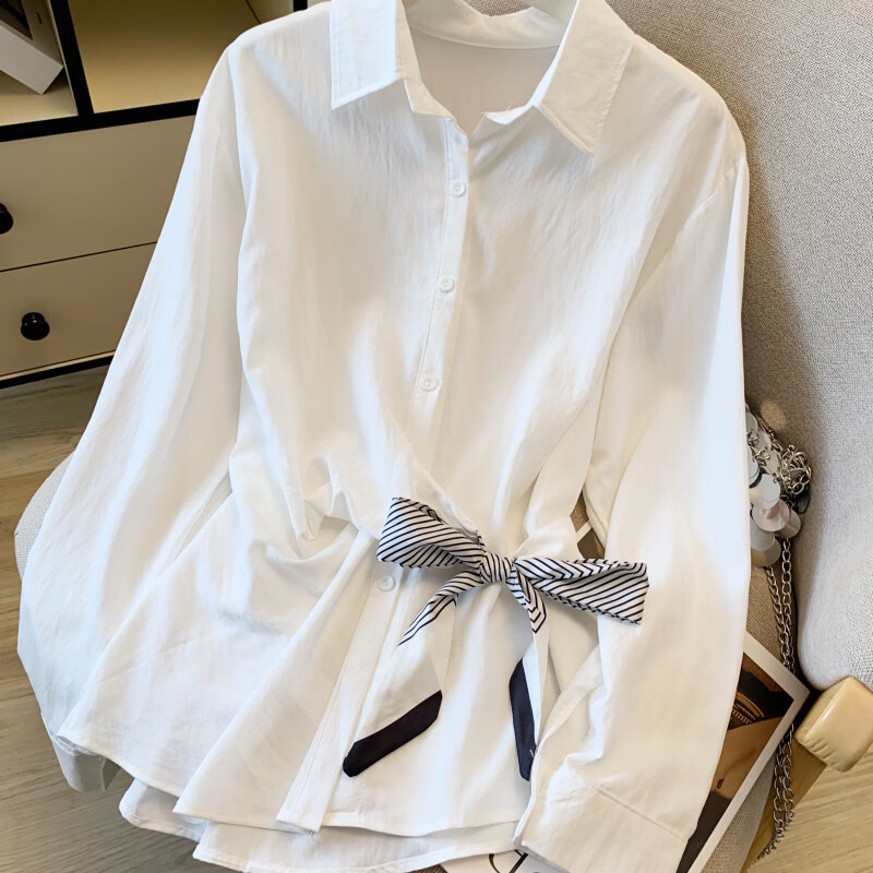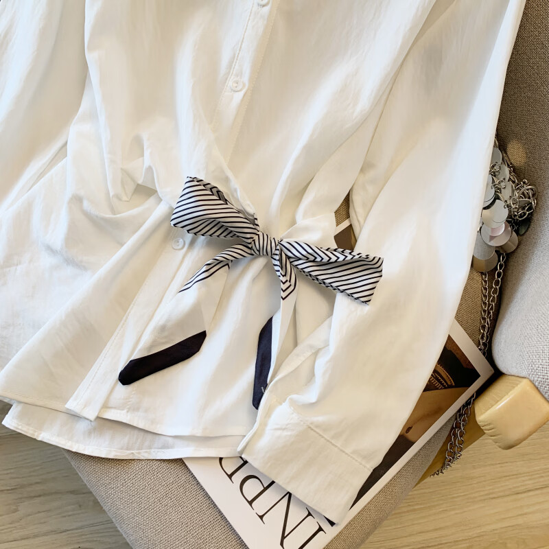 Hengyuanxiang 2026 new autumn style waist slimming design niche light familiar silk scarf fashion chic long-sleeved shirt layered white S