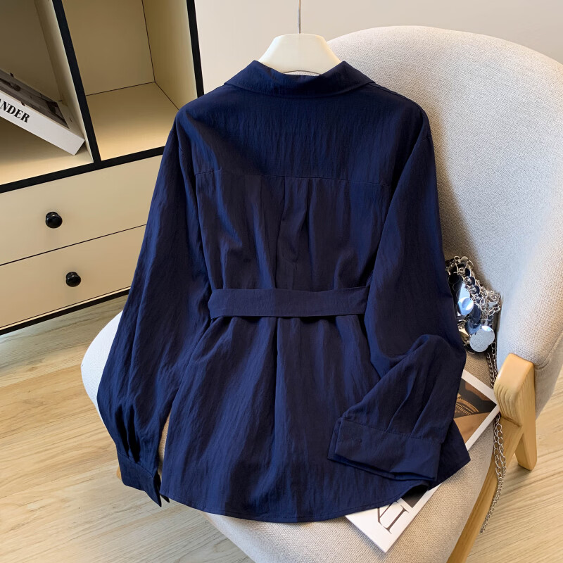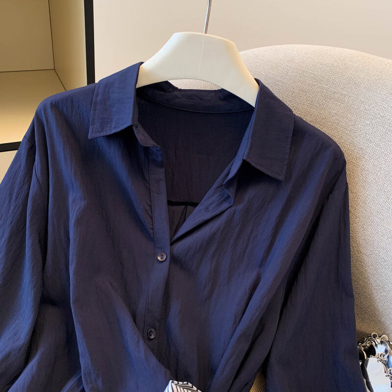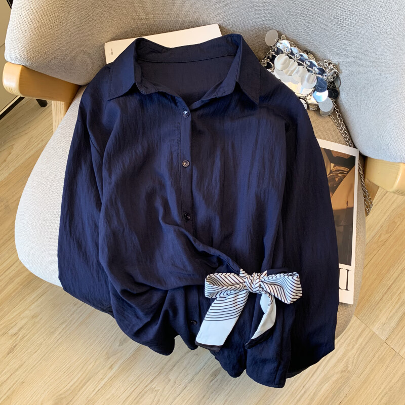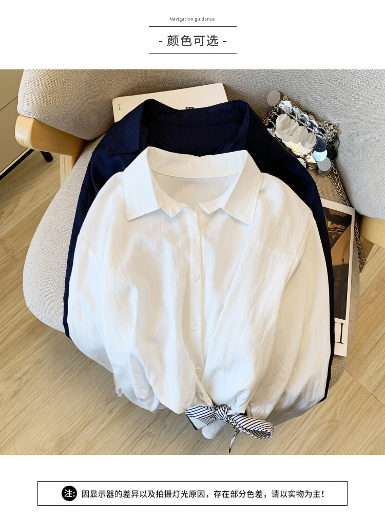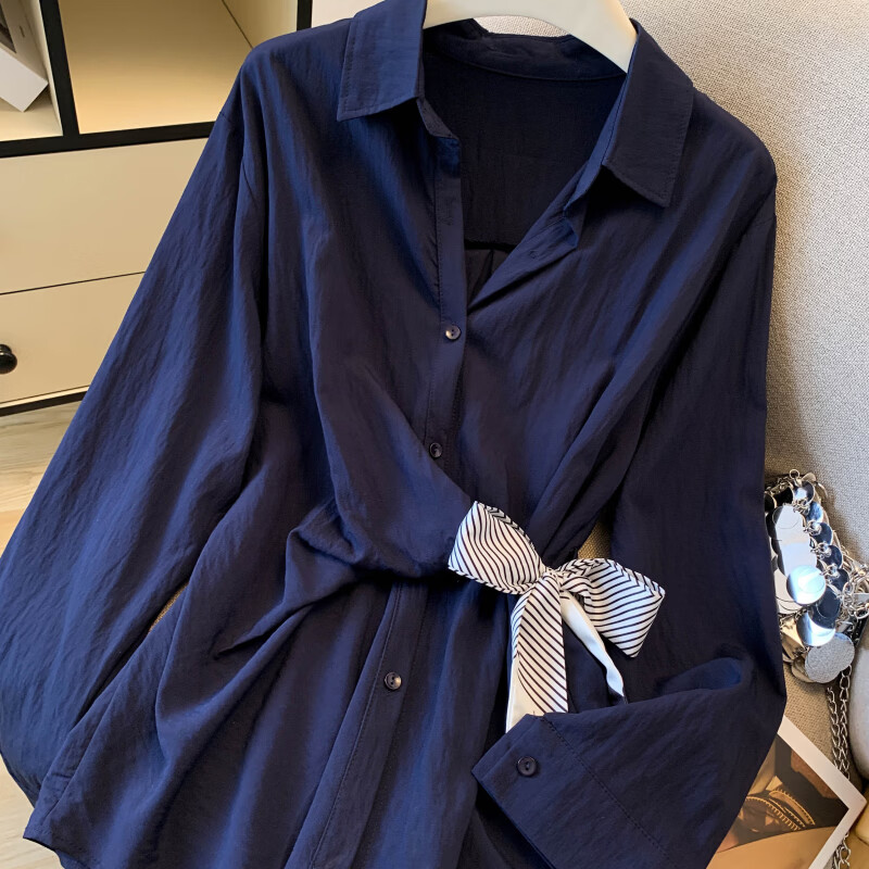Hengyuanxiang 2026 new autumn style waist slimming design niche light familiar silk scarf fashion chic long-sleeved shirt layered white S