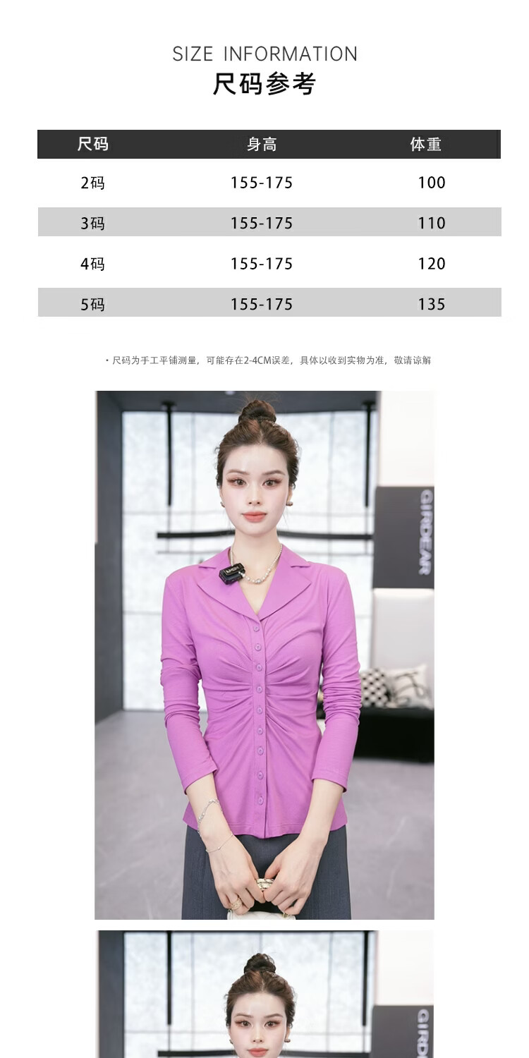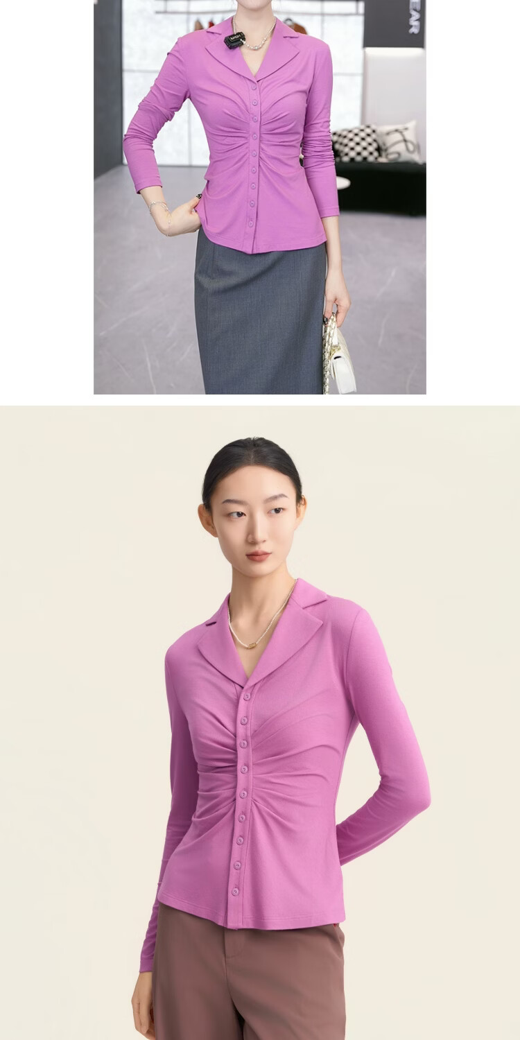 GIRDEAR's hot new winter style, linear beauty, slim, fashionable, light and mature long-sleeved shirt 130097, light purple M (size 3)