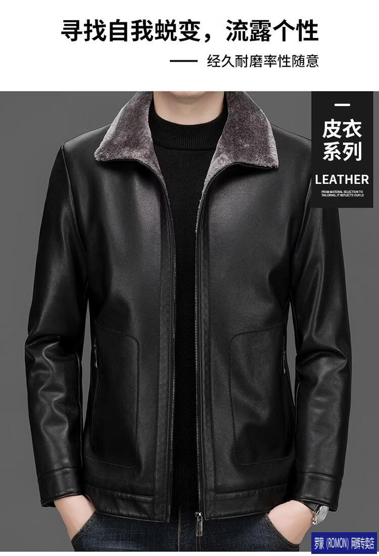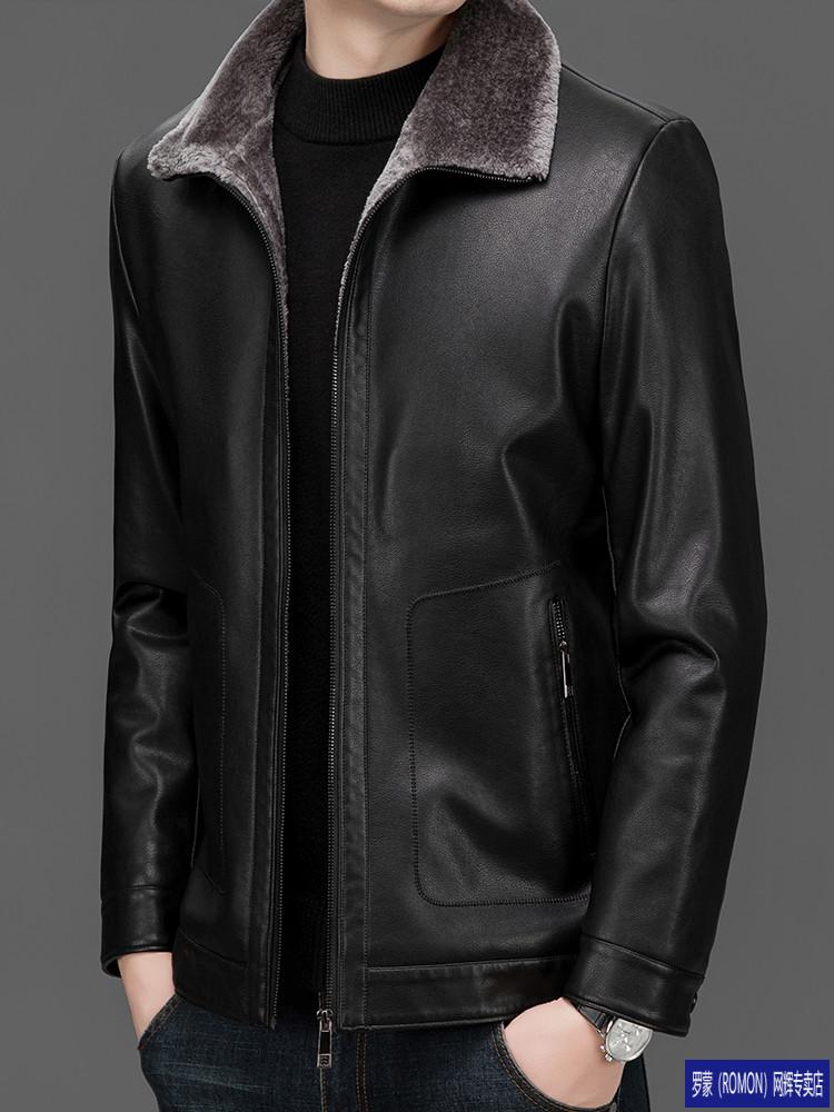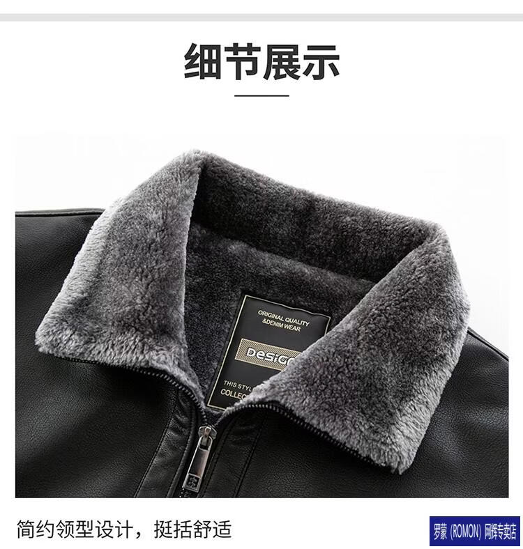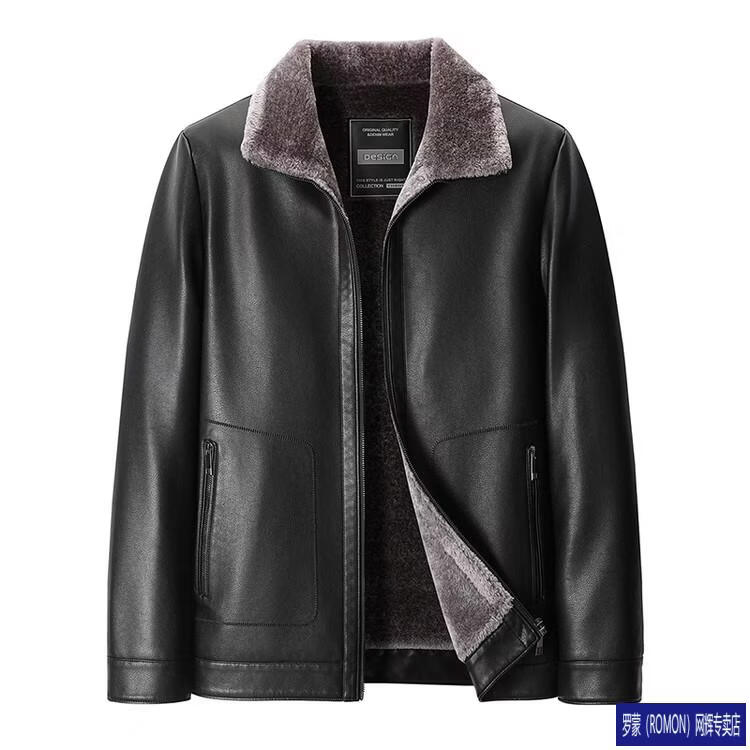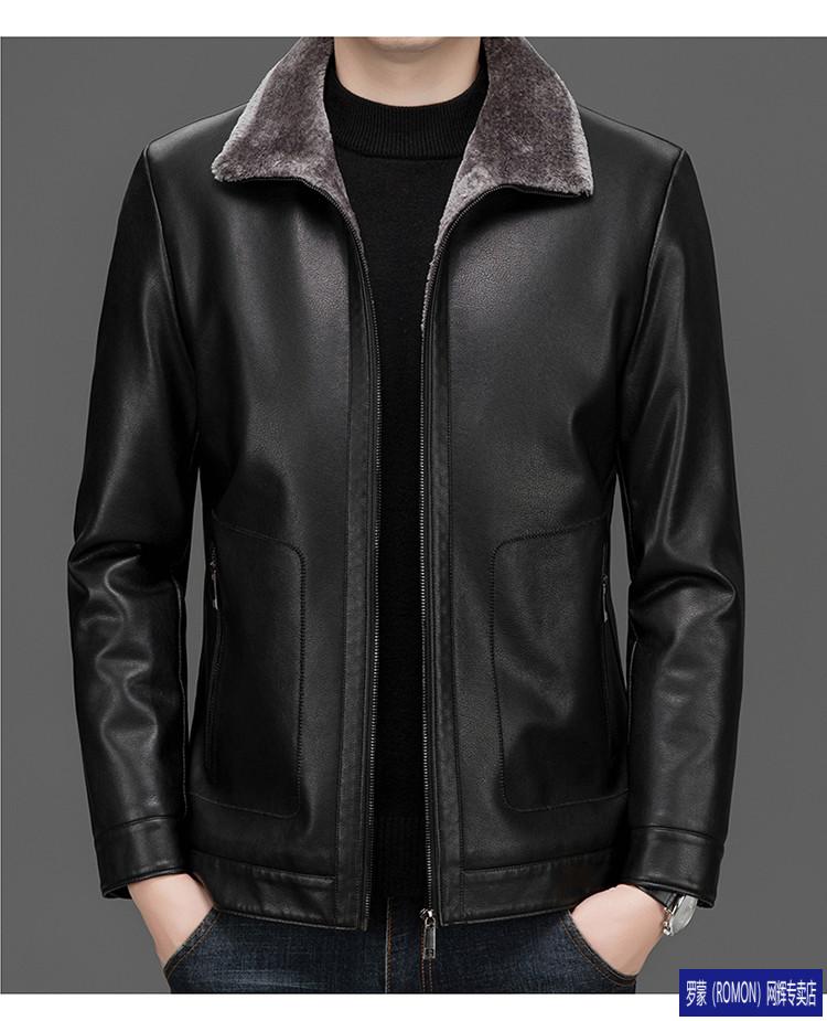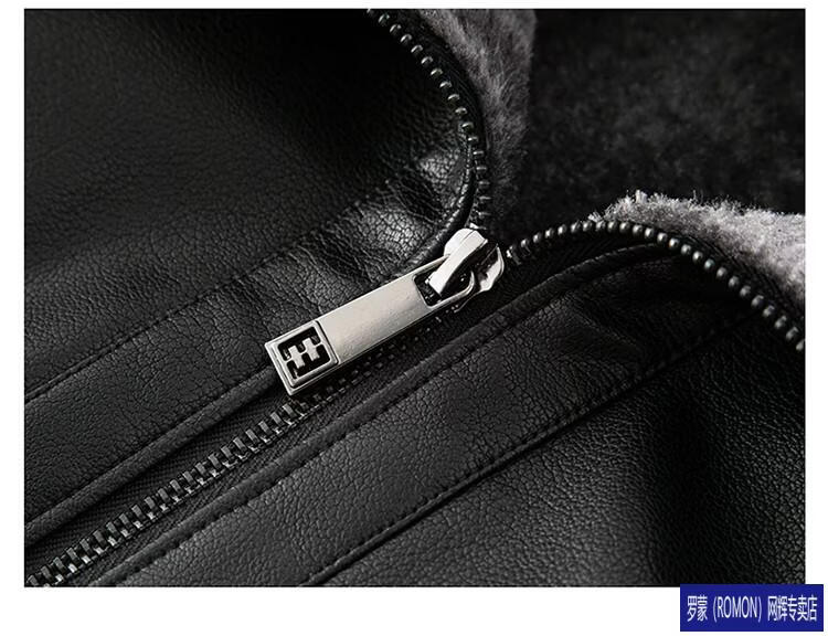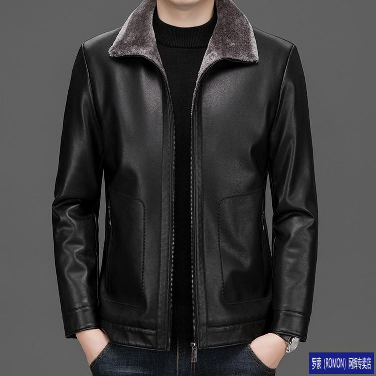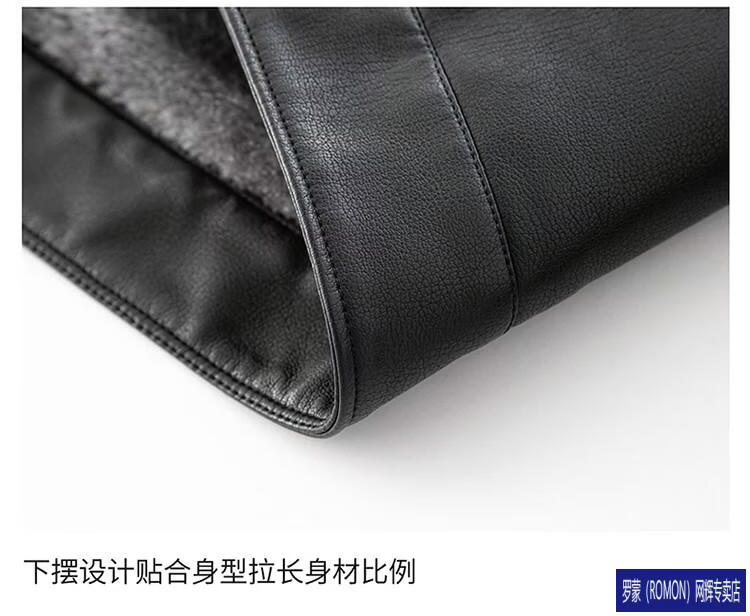 ROMON winter new velvet thickened Haining imitation leather men's fur all-in-one leather jacket black XL 180/92A