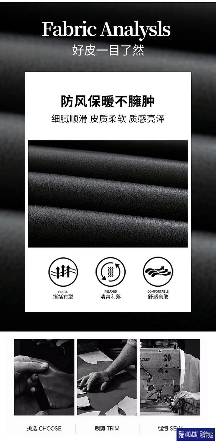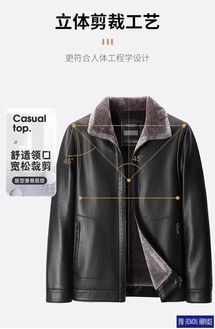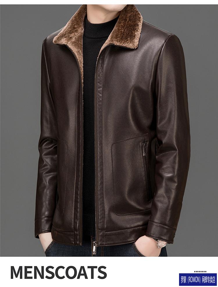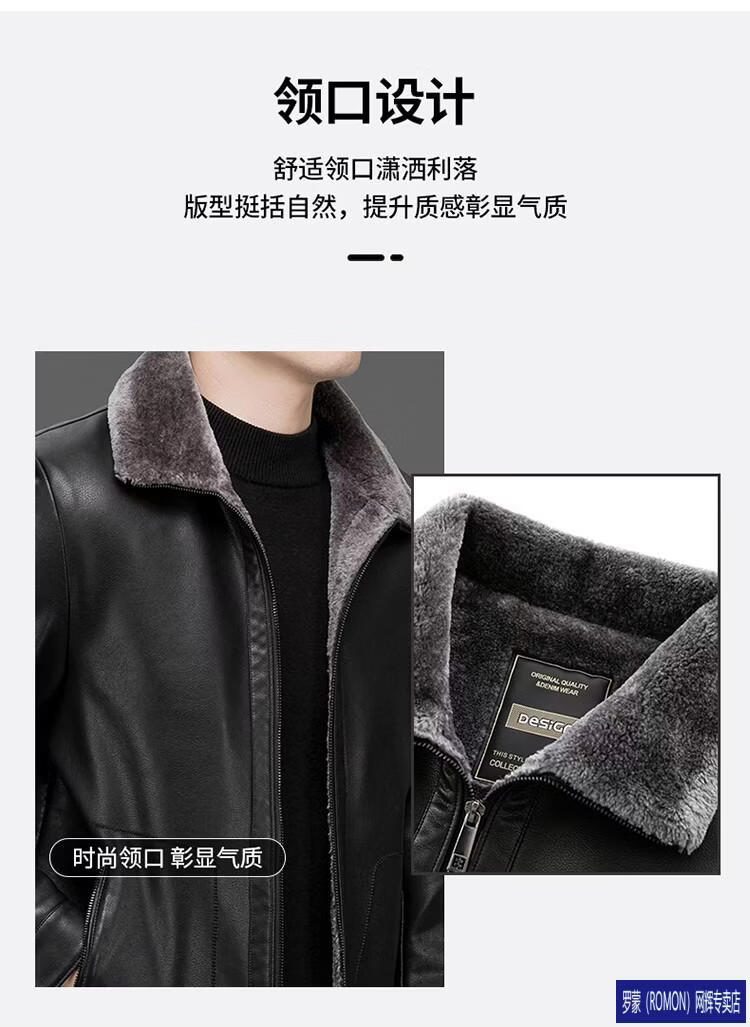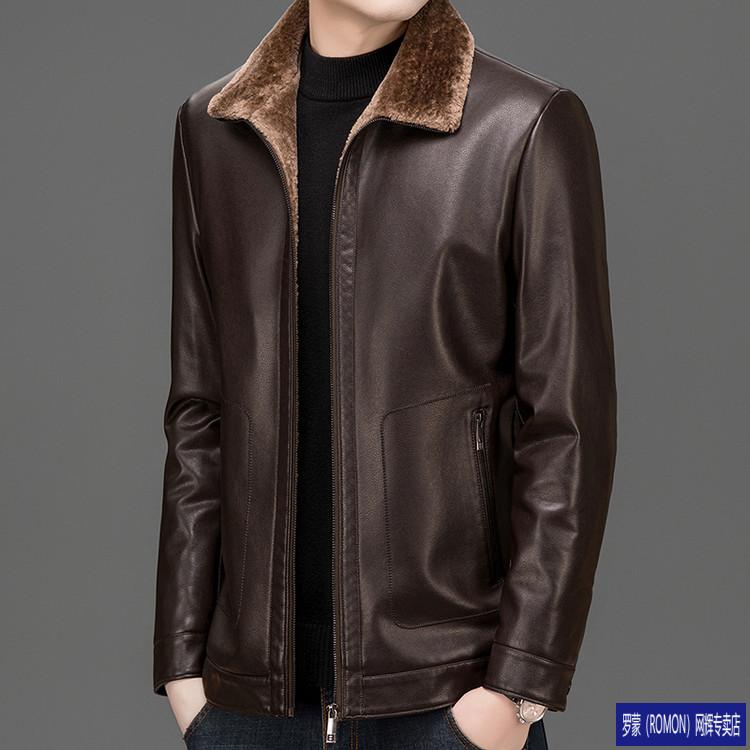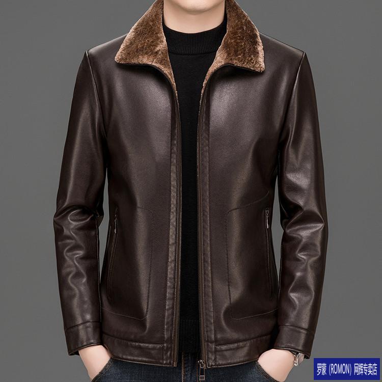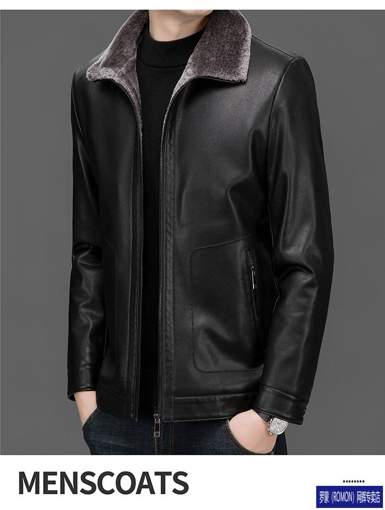 ROMON winter new velvet thickened Haining imitation leather men's fur all-in-one leather jacket black XL 180/92A