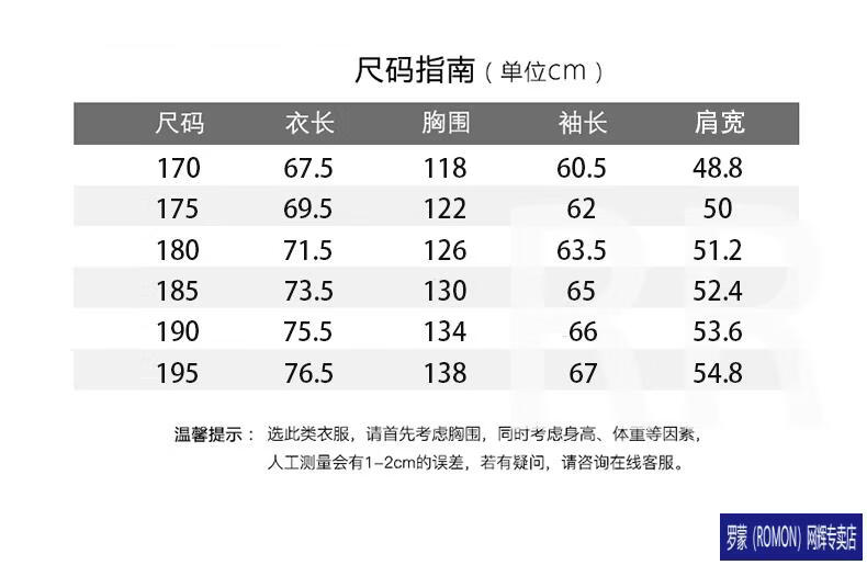 China (cm) 165 / 88-90 170 / 96-98 175 / 108-110 180 / 118-122 185 / 126-130