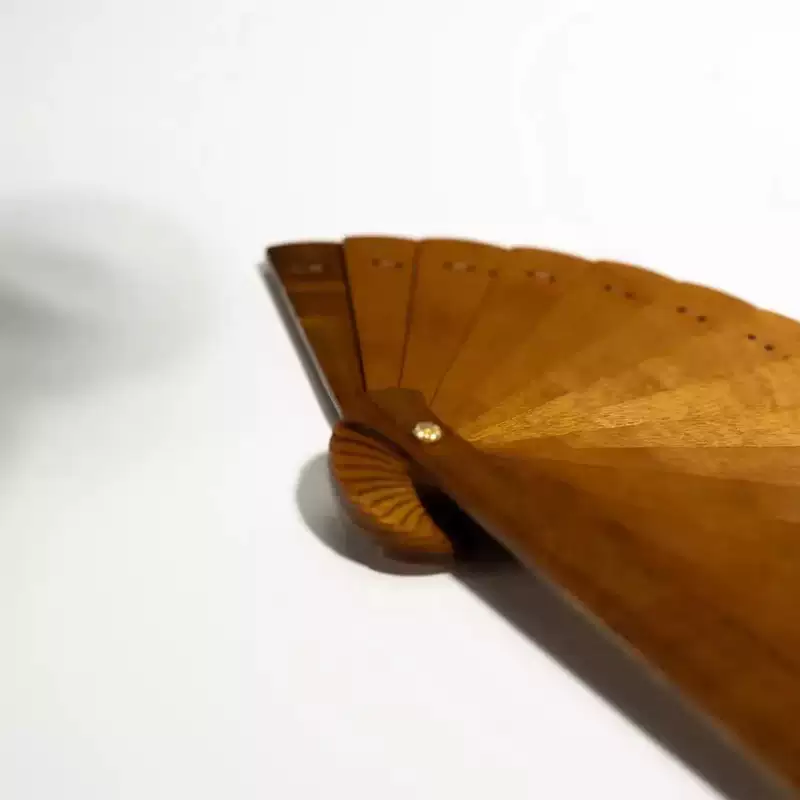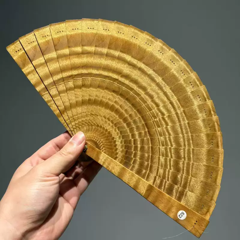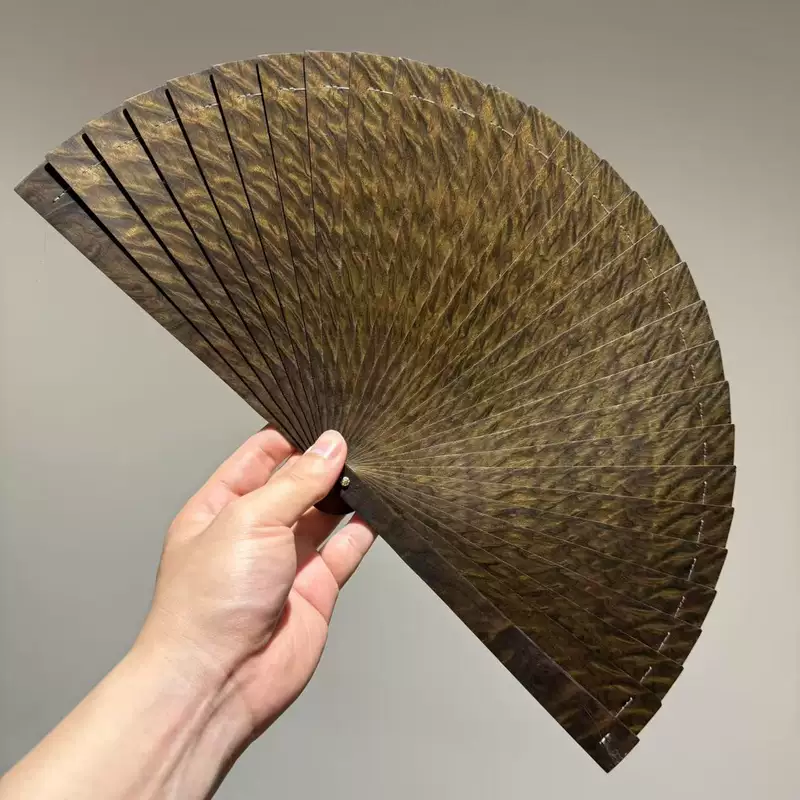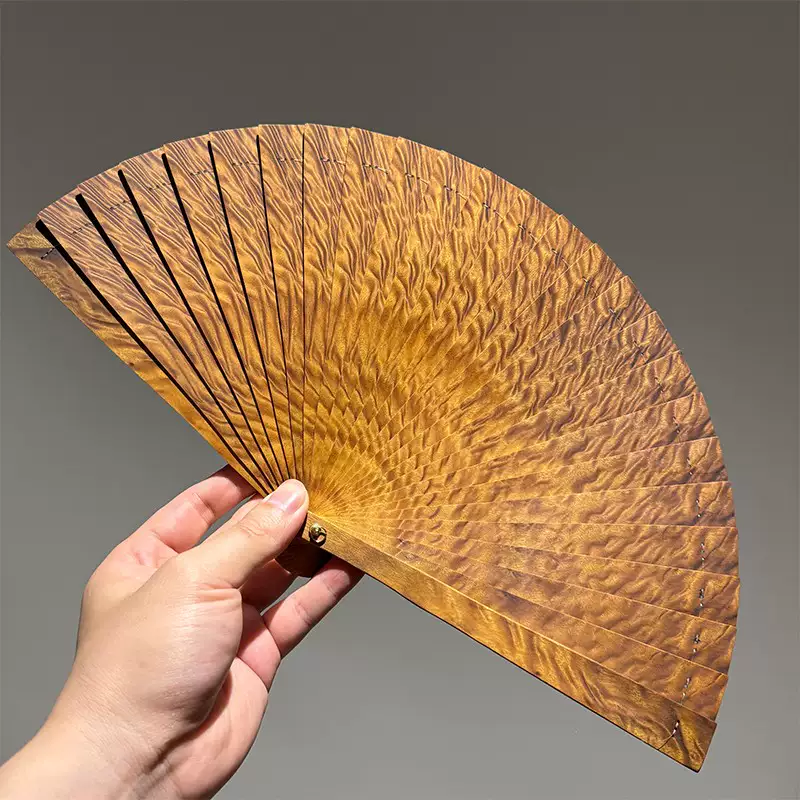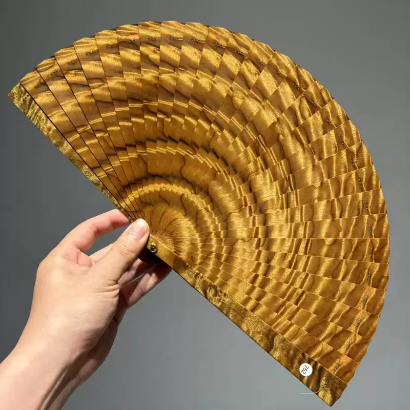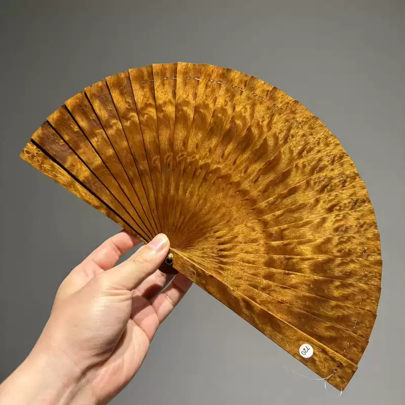 Yusenyi golden nanmu fan gloomy wood fan full of water waves ancient style summer fragrant wood fan Chinese style mini folding fan portable 16cm red oil cloud pattern 882 one thing one shot daily use fan