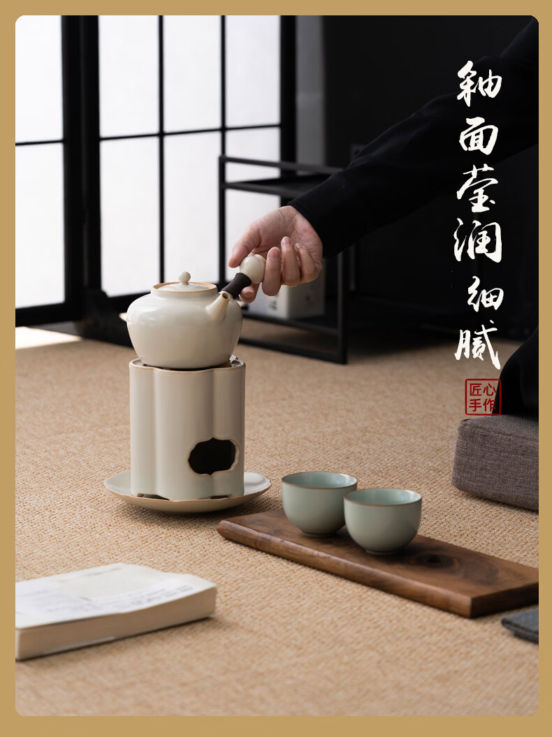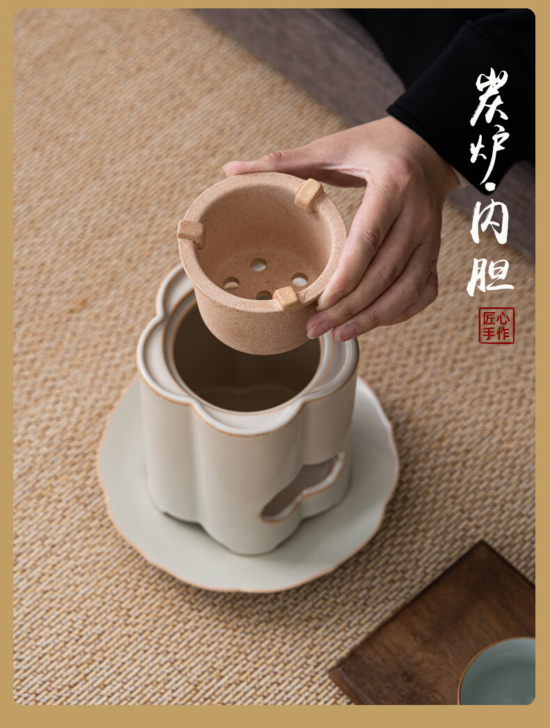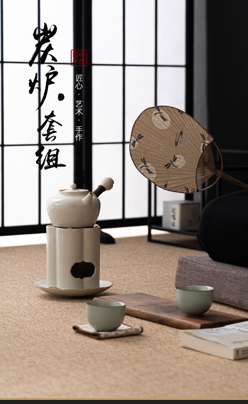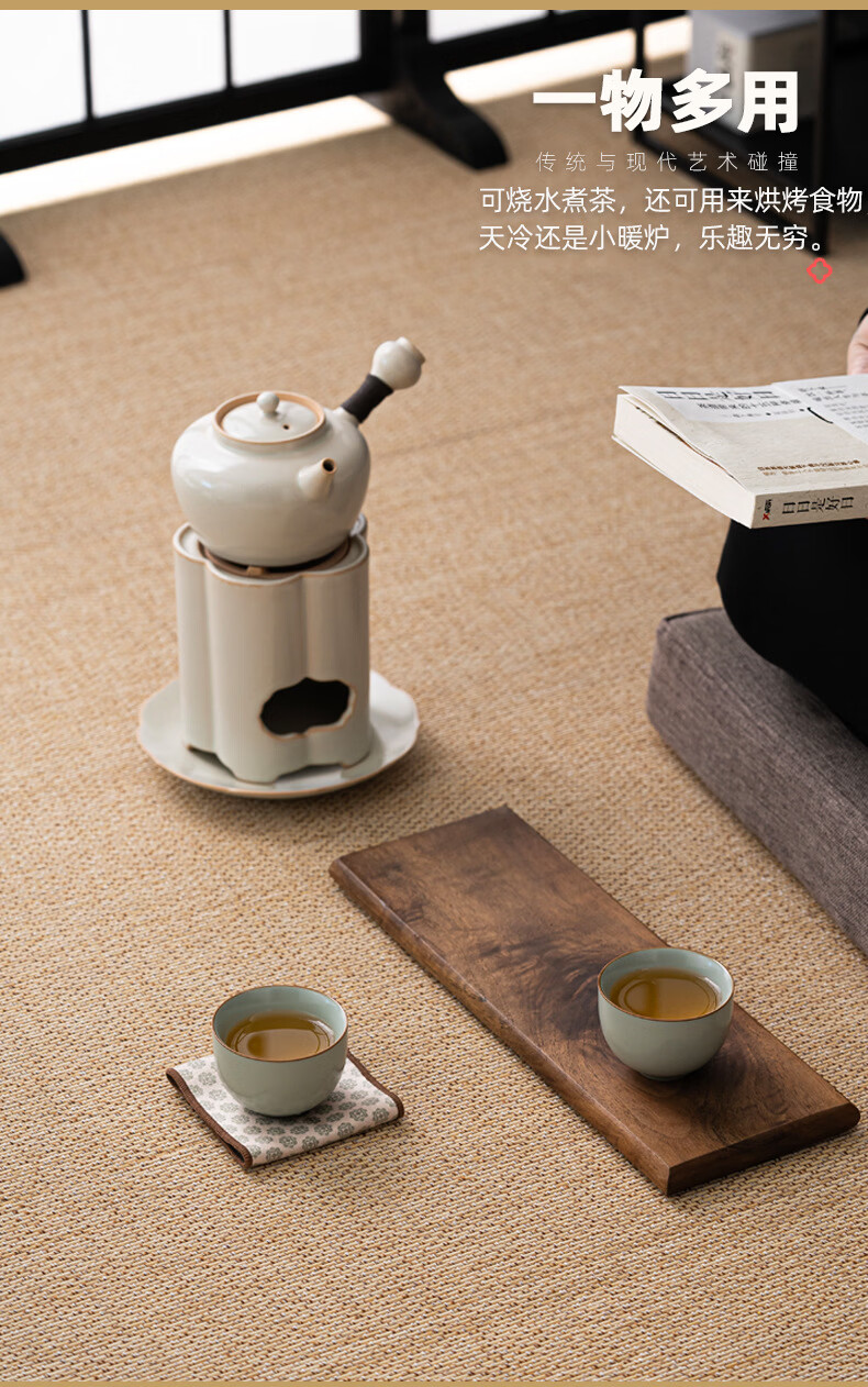 Initial conception of carbon stove for tea making, charcoal stove, wind stove, tea making set, ceramic kettle, health preserving pottery pot, retro kung fu tea stove, outdoor lifting kettle + carbon stove, default item