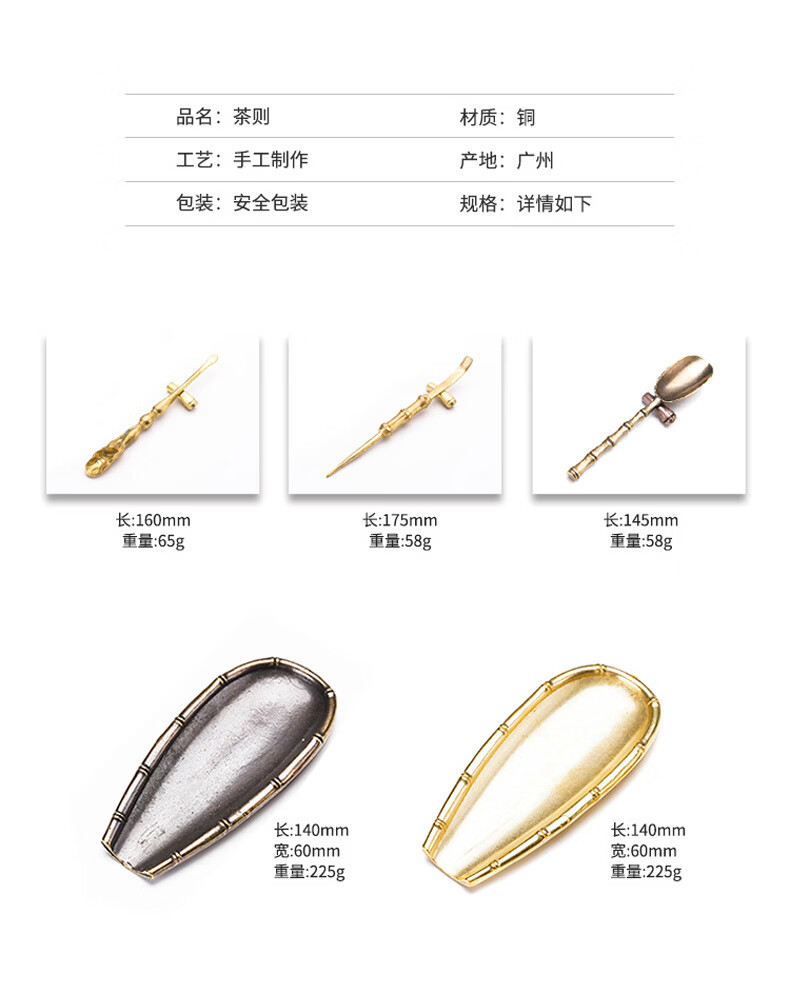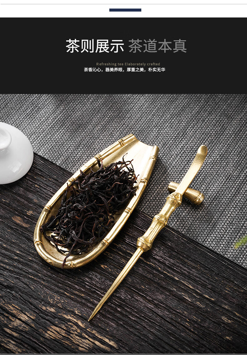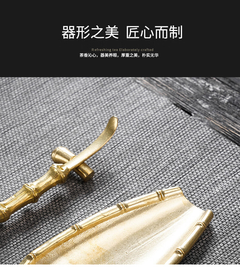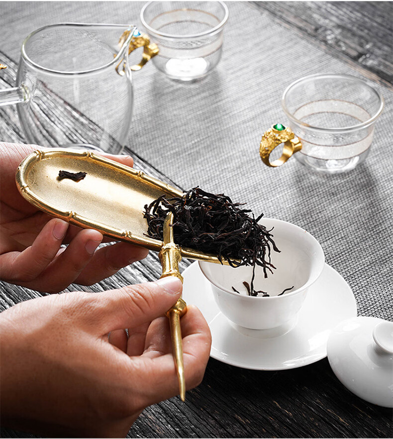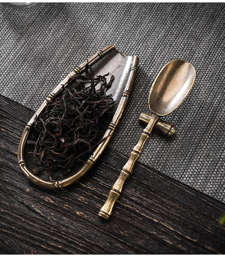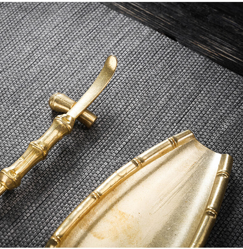 Initial conception of the gold and jade fragrant copper awakening tea set, a three-piece set of handmade tea lotus tea spoons with bamboo joints and tea spoons, Kung Fu tea set accessories, and a three-piece retro lotus tea set with bamboo joints
