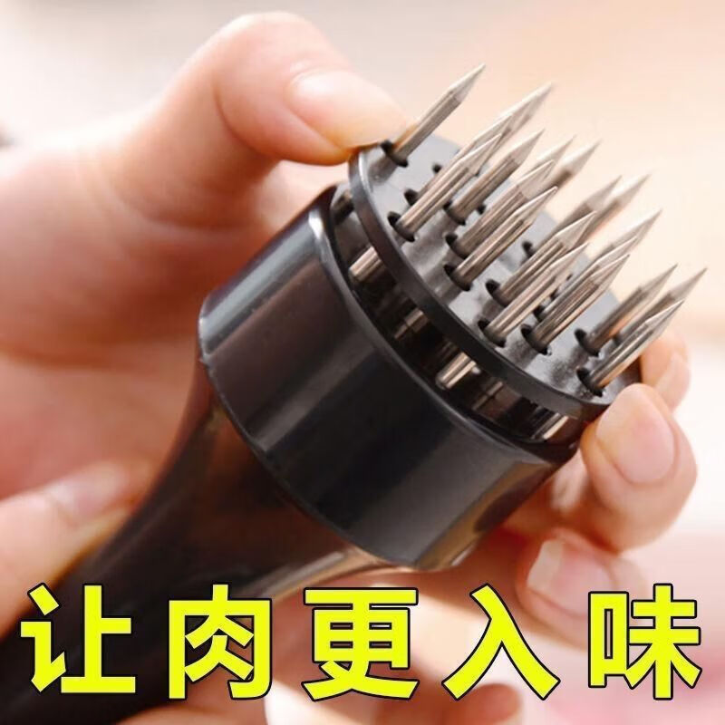 LZJV家用断筋嫩肉针猪扒鸡排鸡翅松肉针敲肉锤不锈钢牛排扎孔器猪 独立包装袋装16针黑-1个装
