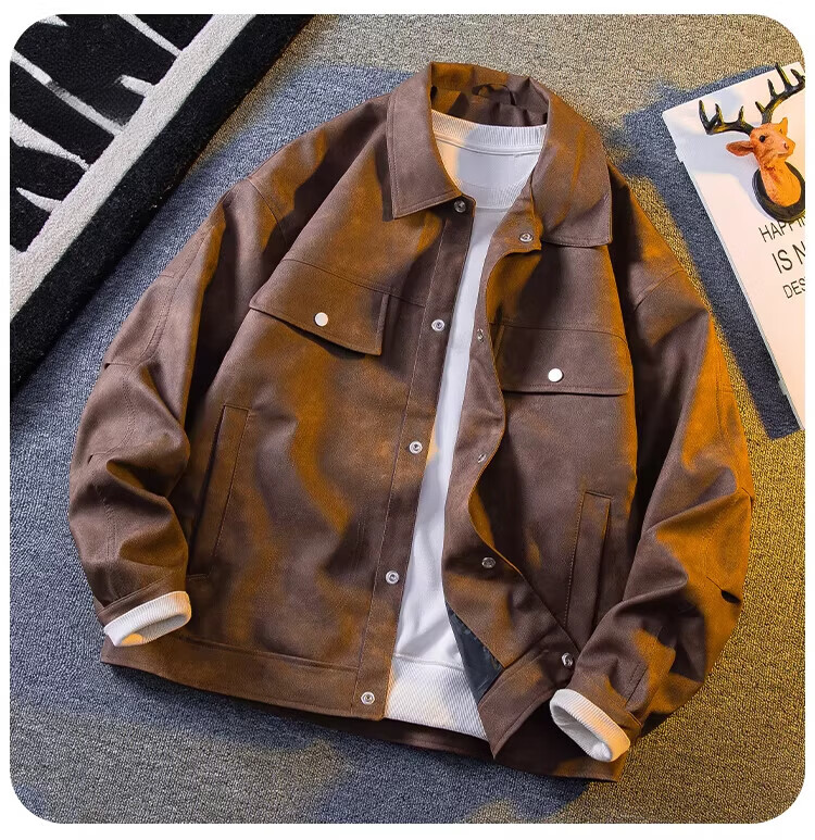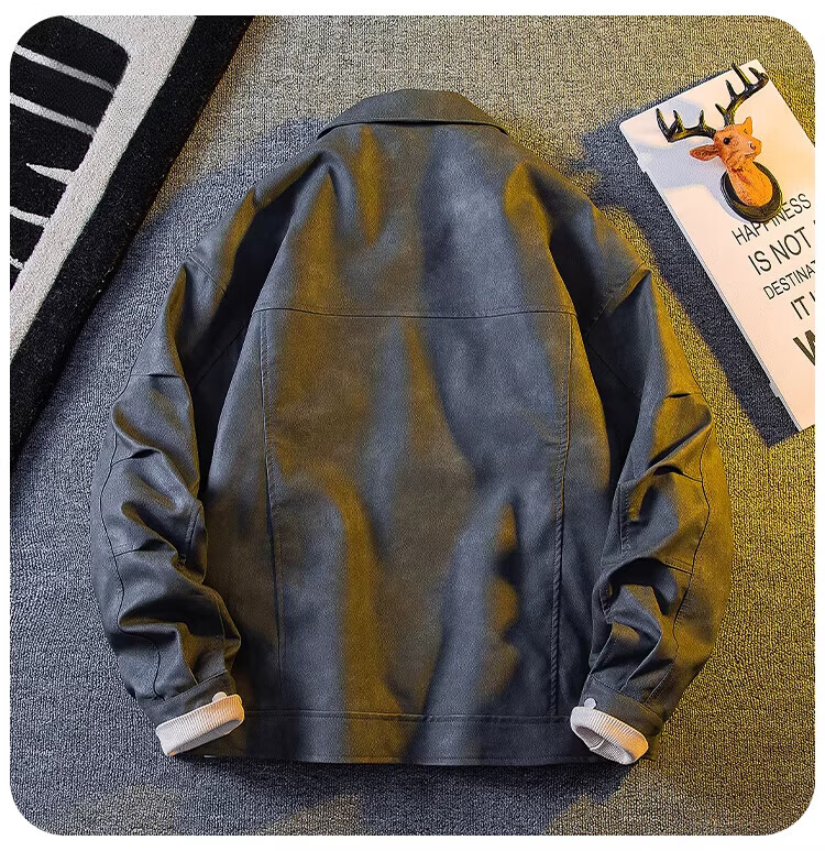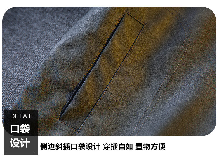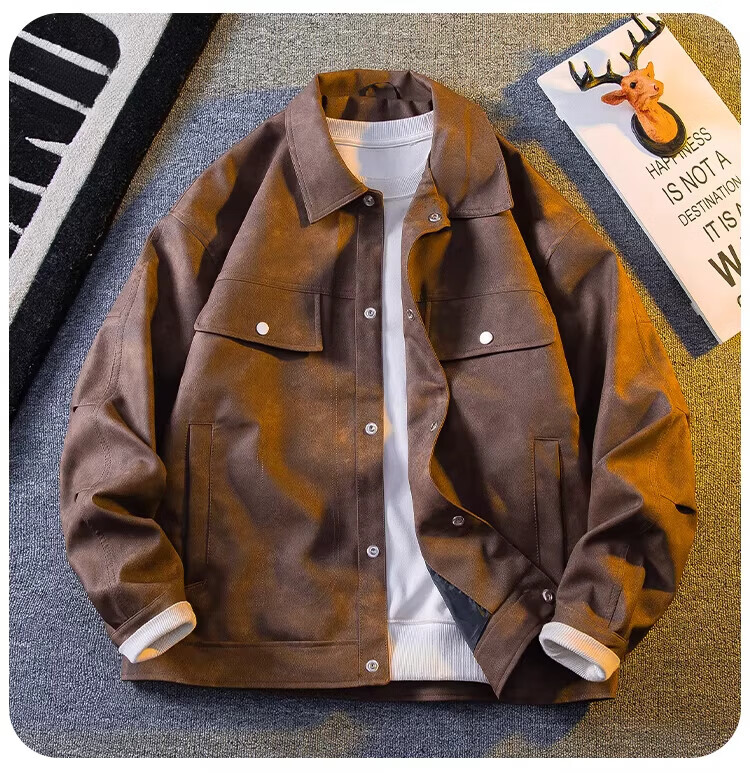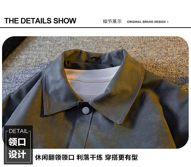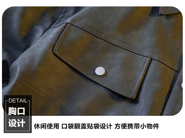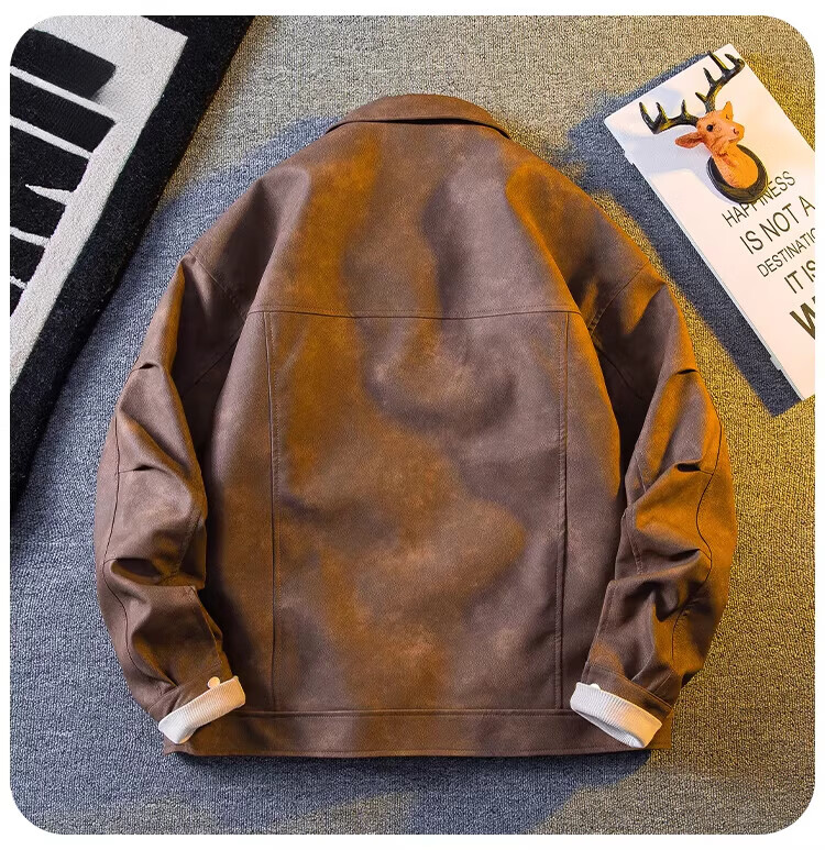 Playboy American Retro Motorcycle Leather Jacket Men's High Street Handsome Lapel U Leather Jacket Brown M (100-115Jin Jin is equal to 0.5kg)