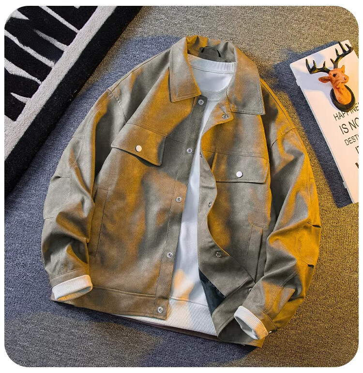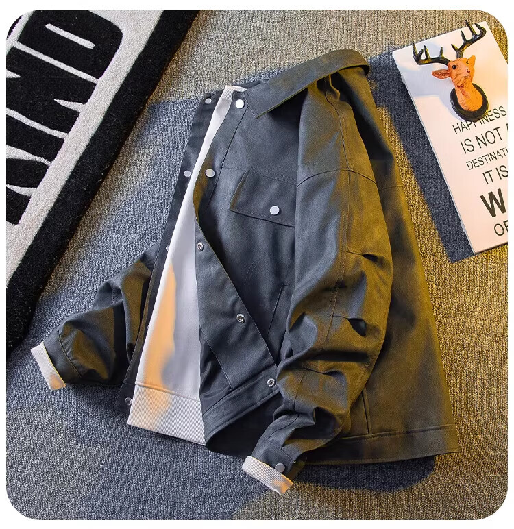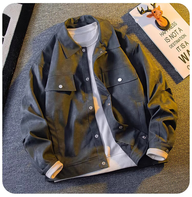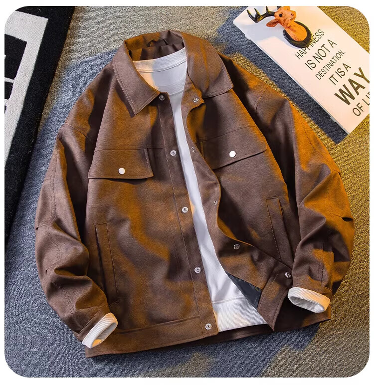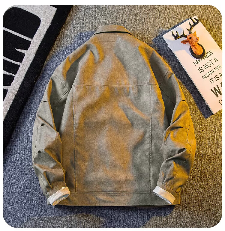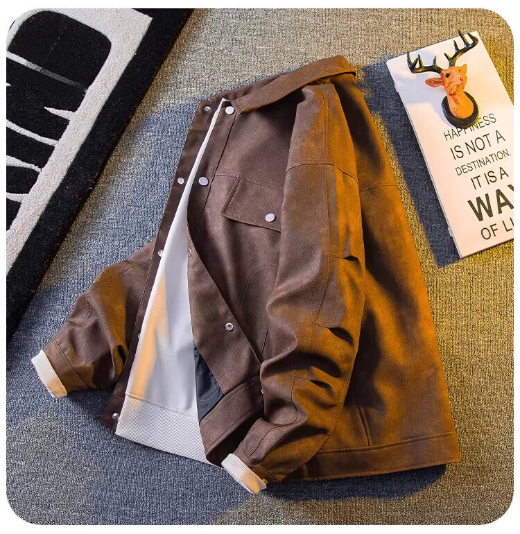Playboy American Retro Motorcycle Leather Jacket Men's High Street Handsome Lapel U Leather Jacket Brown M (100-115Jin Jin is equal to 0.5kg)