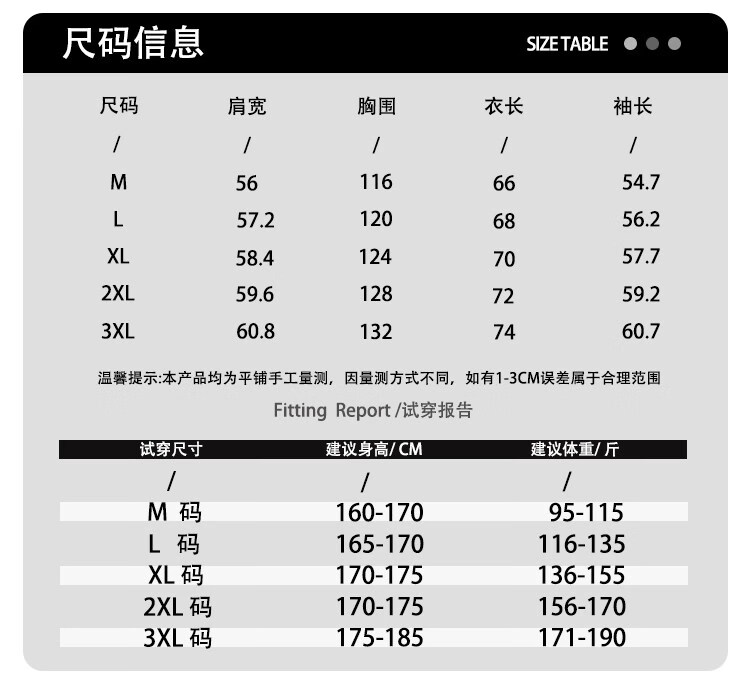 China (cm) 165 / 88-90 170 / 96-98 175 / 108-110 180 / 118-122 185 / 126-130