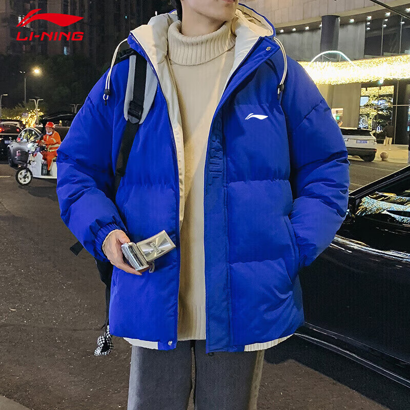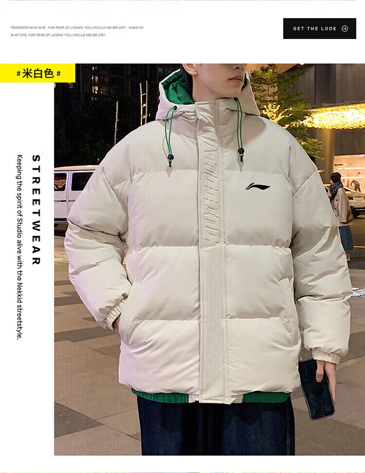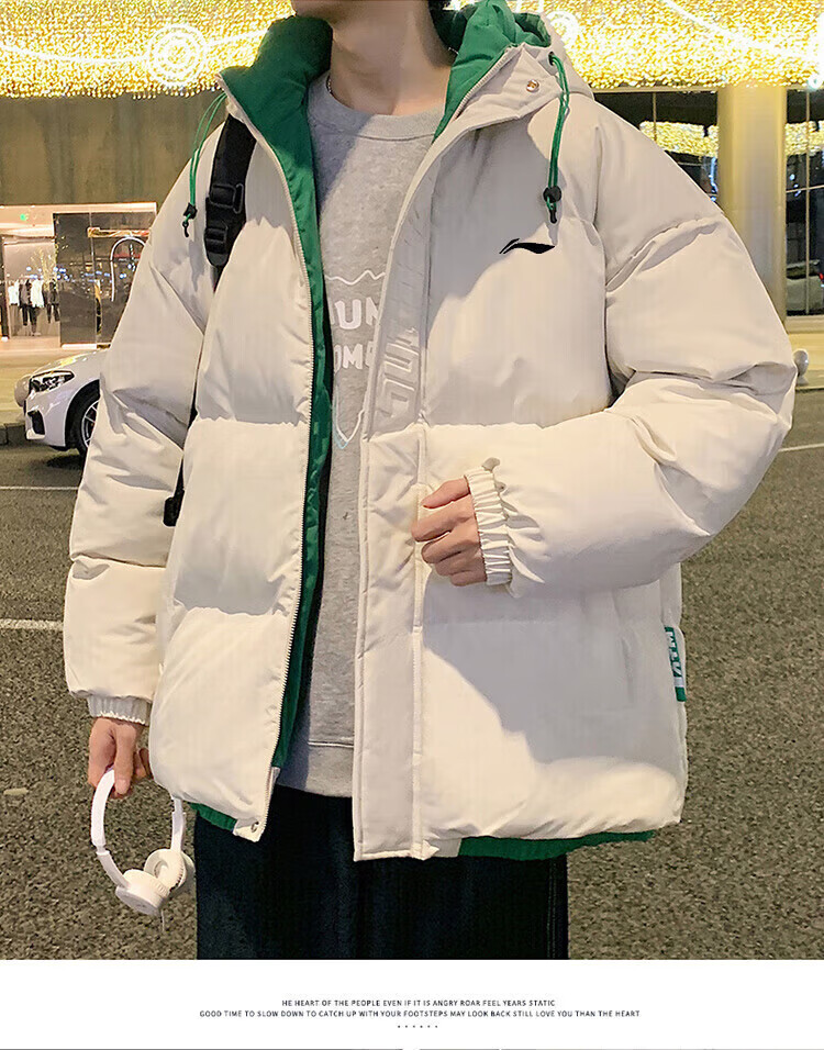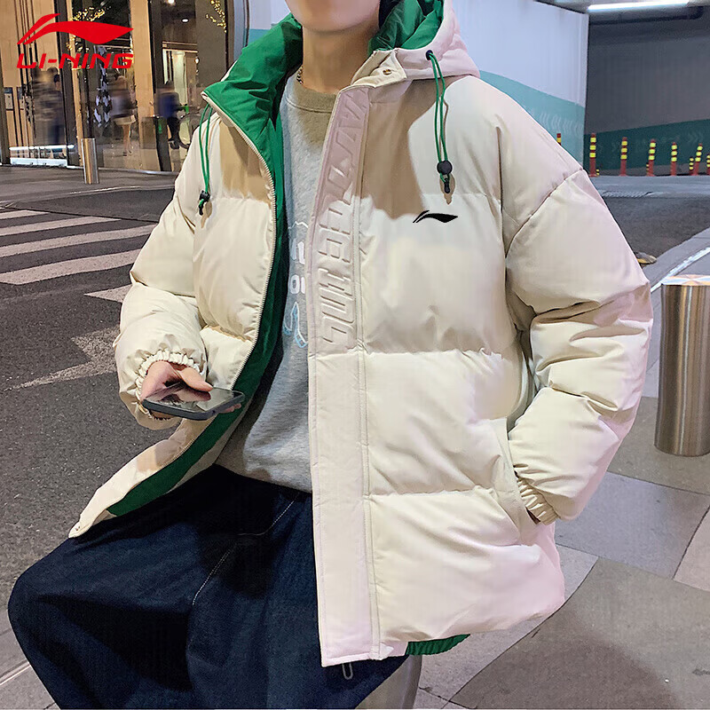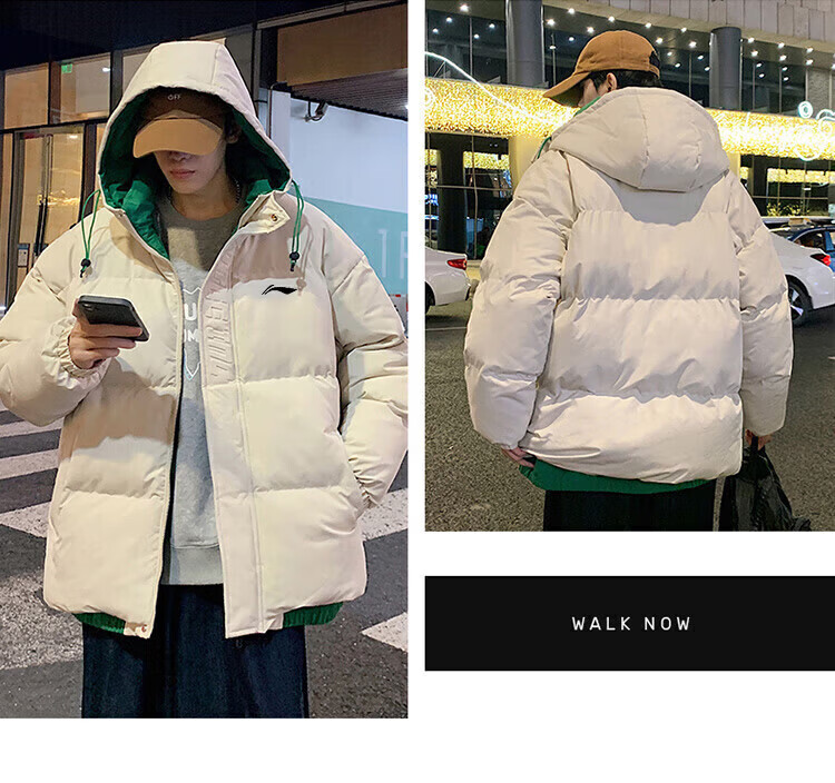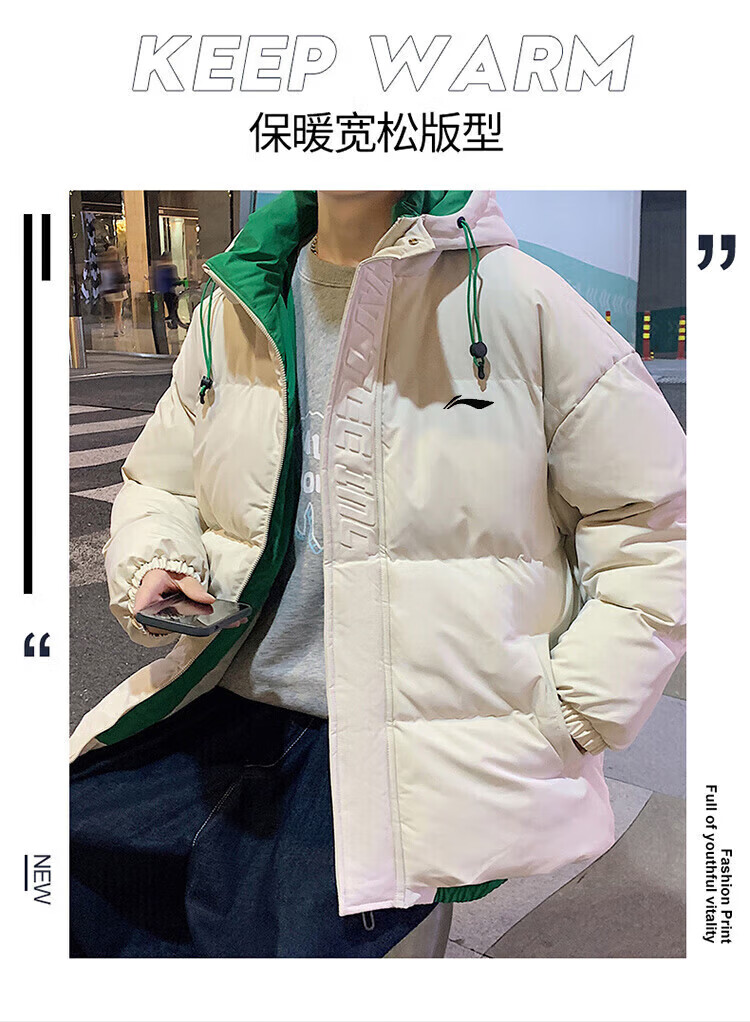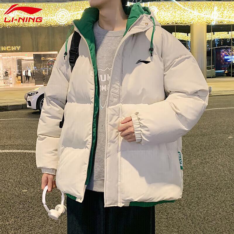 LI-NING SINCE 1990 Li Ning Men's Clothing Winter 2025 New Versatile Trendy Brand Cotton Coat Couple Thickened Warm Cotton Jacket Men's Jacket Off-White Men and Women S 8090Jin Jin is equal to 0.5 kg