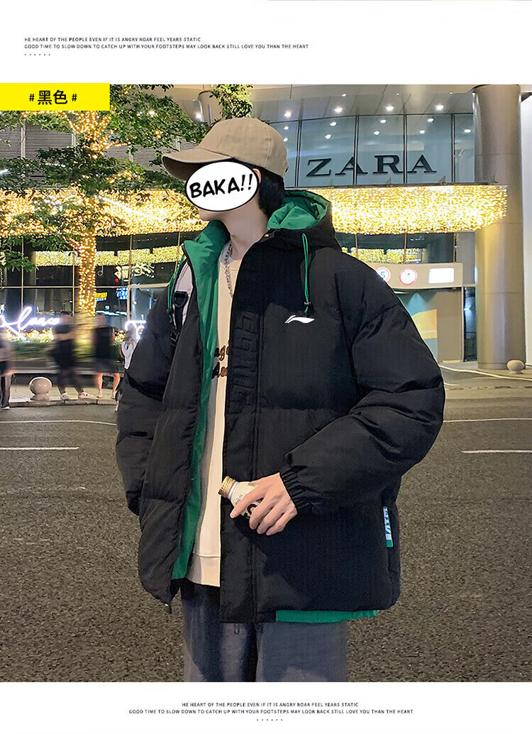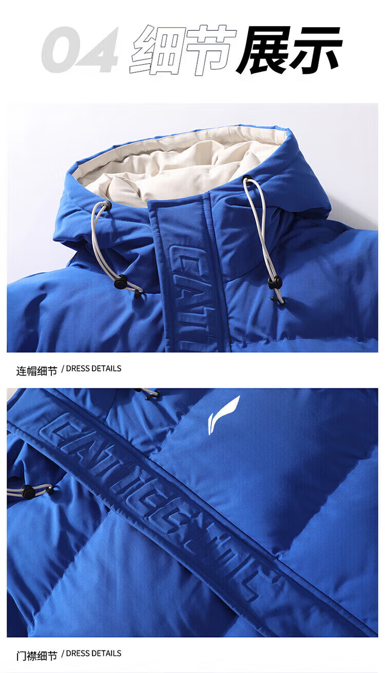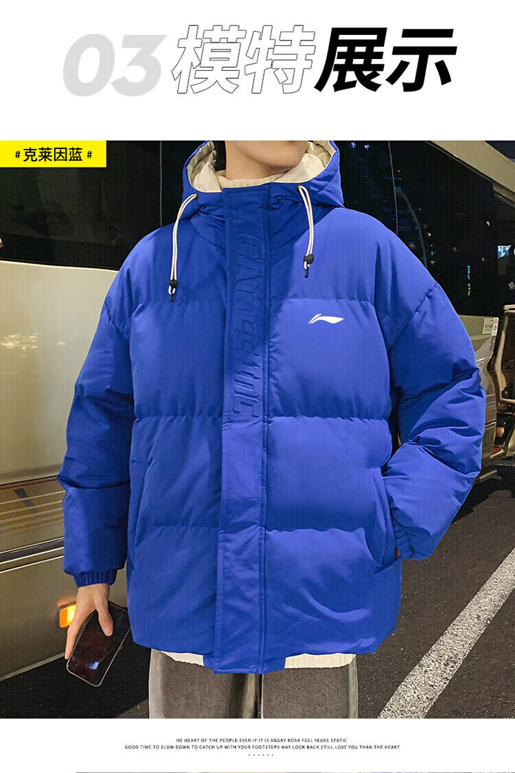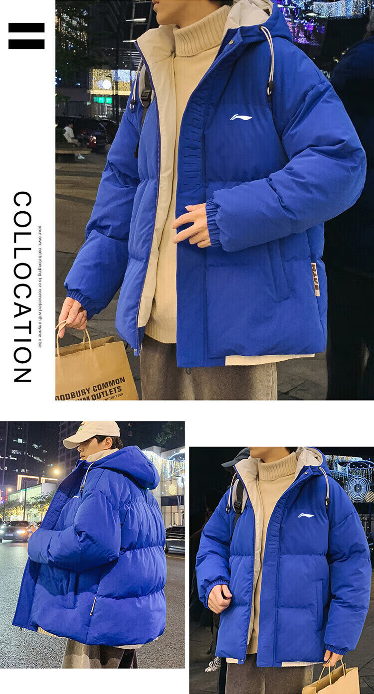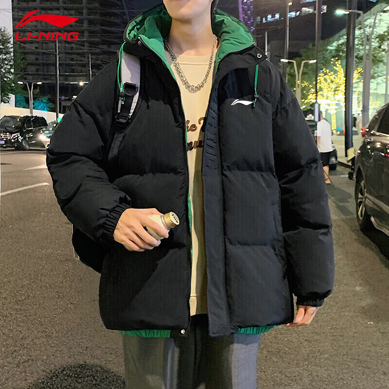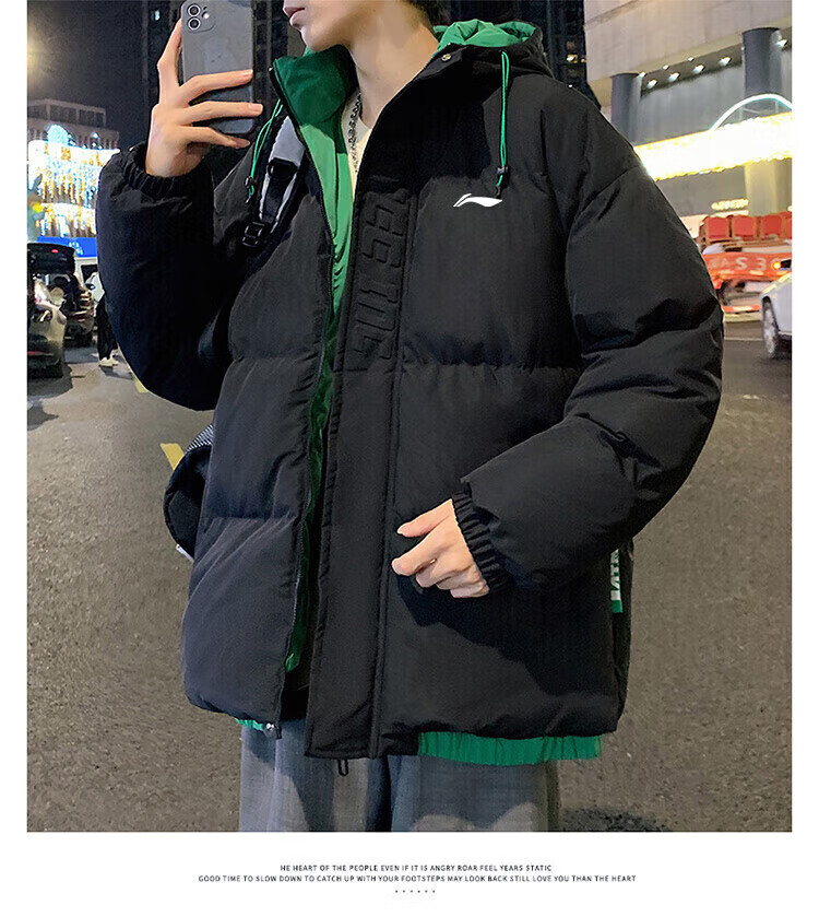LI-NING SINCE 1990 Li Ning Men's Clothing Winter 2025 New Versatile Trendy Brand Cotton Coat Couple Thickened Warm Cotton Jacket Men's Jacket Off-White Men and Women S 8090Jin Jin is equal to 0.5 kg