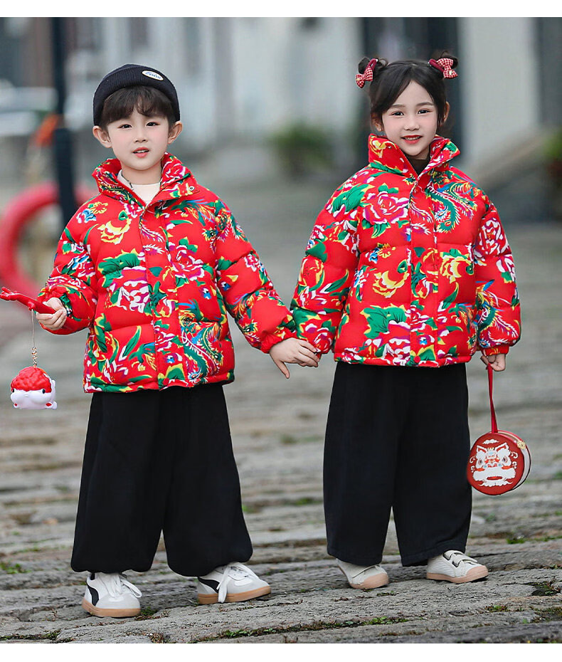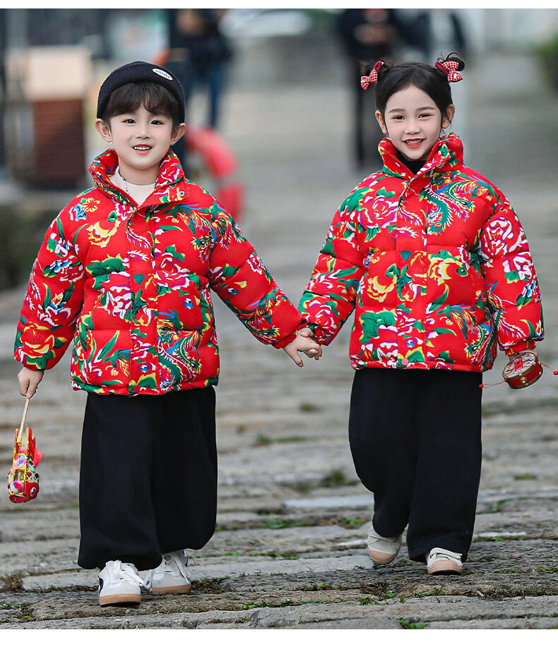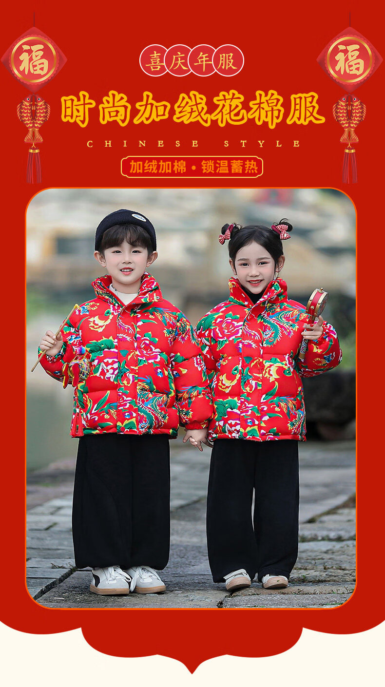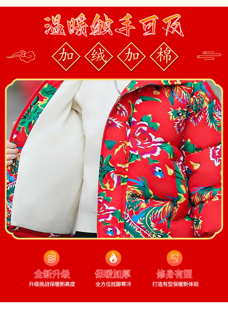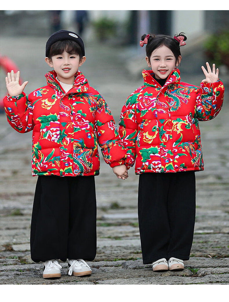 Fat Donglai purchasing brother and sister outfits plus velvet Northeast large flower cotton jacket retro New Year clothes picture color_same style for men and women 90 cm