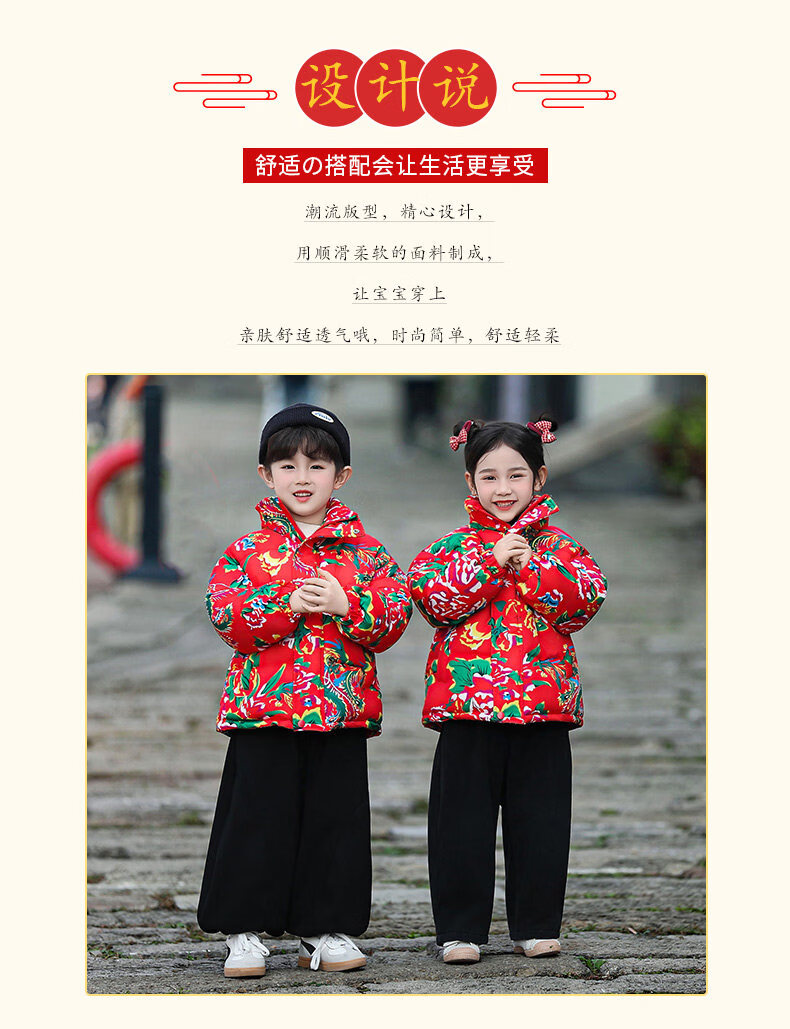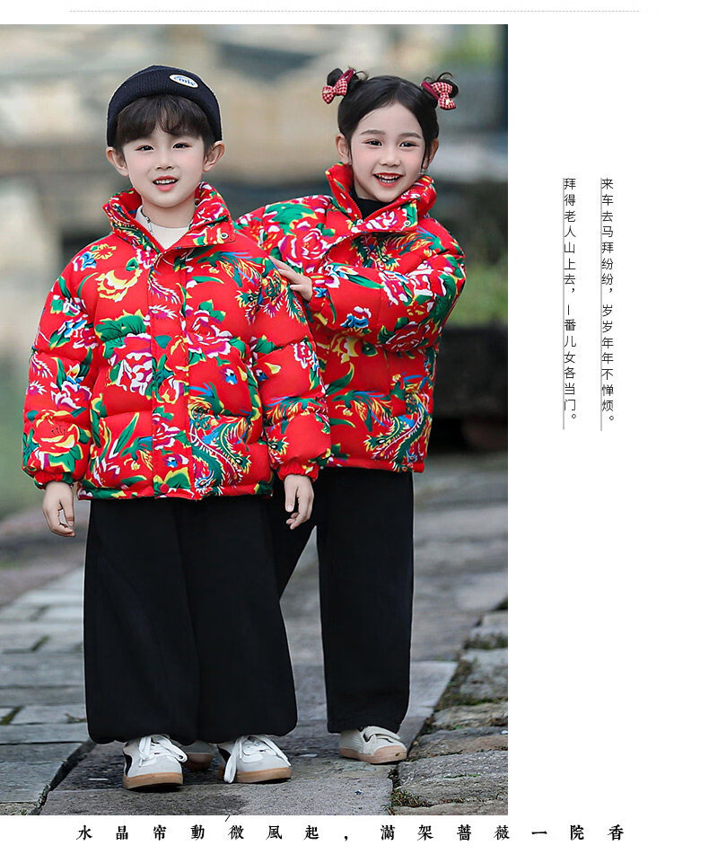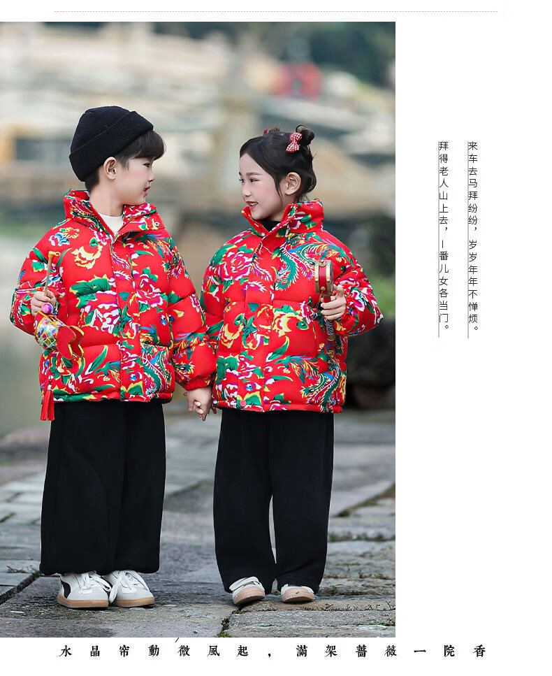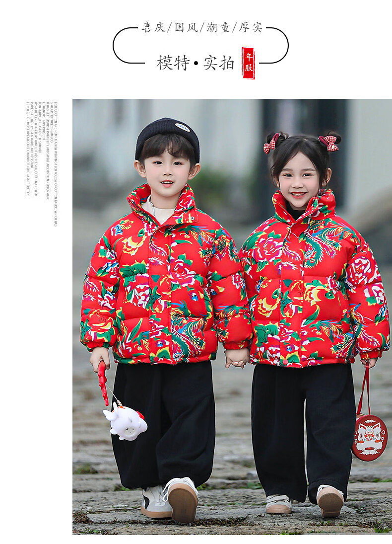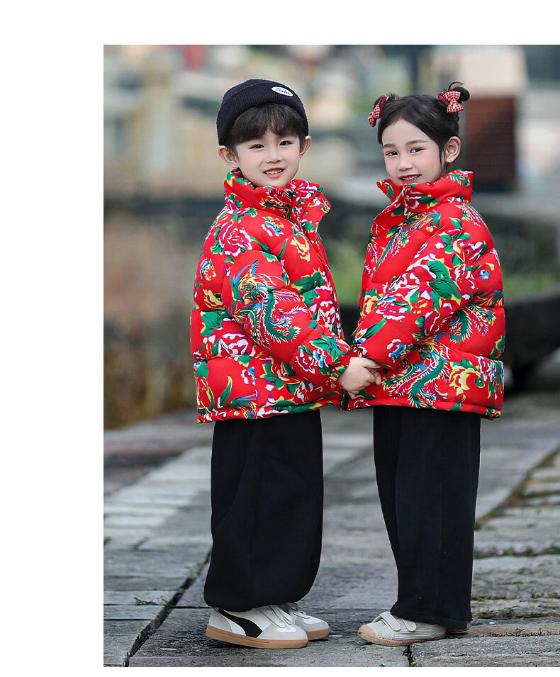 Fat Donglai purchasing brother and sister outfits plus velvet Northeast large flower cotton jacket retro New Year clothes picture color_same style for men and women 90 cm