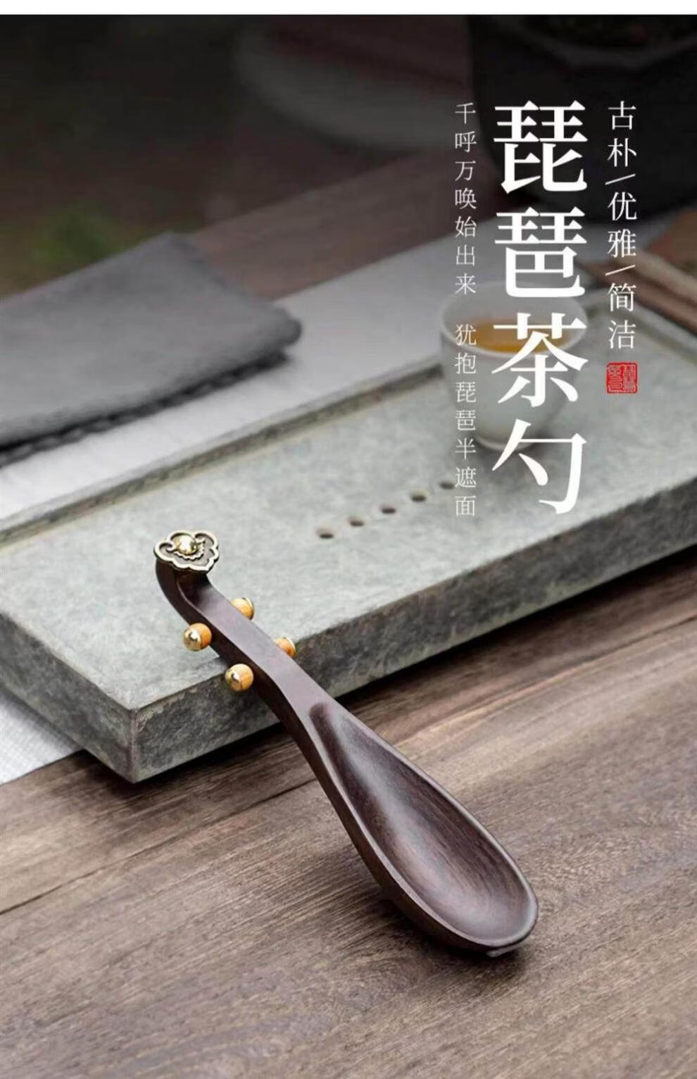 Jingxiang Wooden Pipa Tea Spoon Kung Fu Tea Set Household Kung Fu Tea Ceremony Parts Solid Wood Tea Spoon Wooden Pipa Tea Spoon