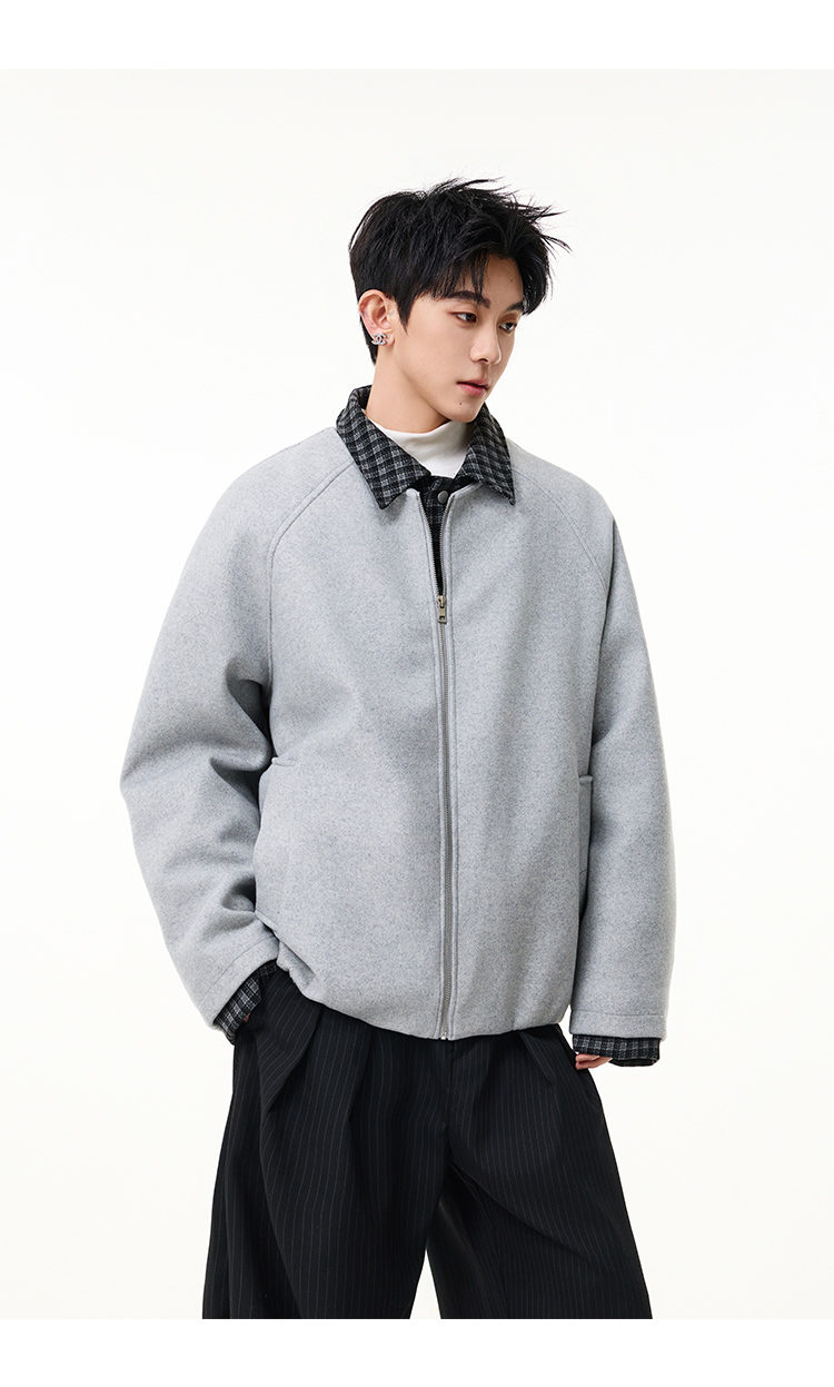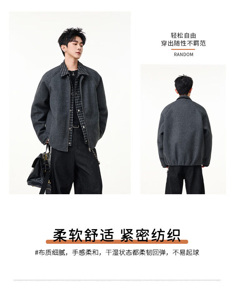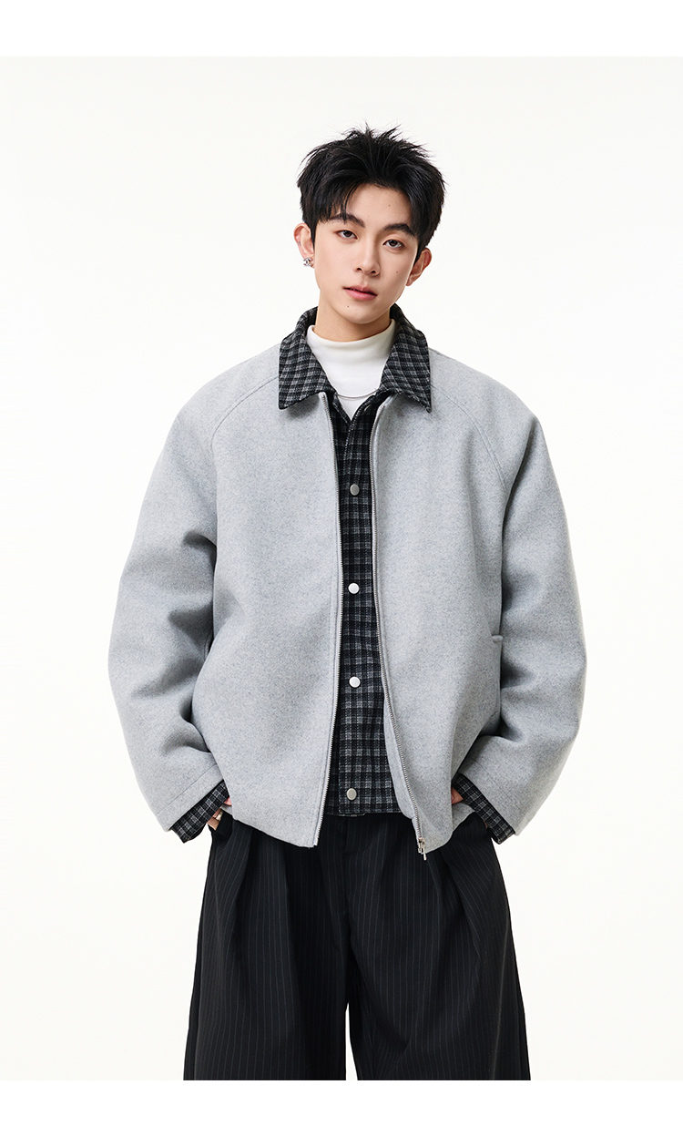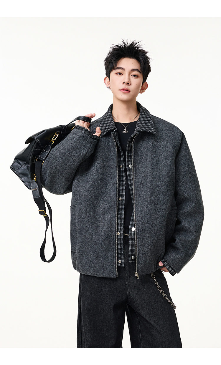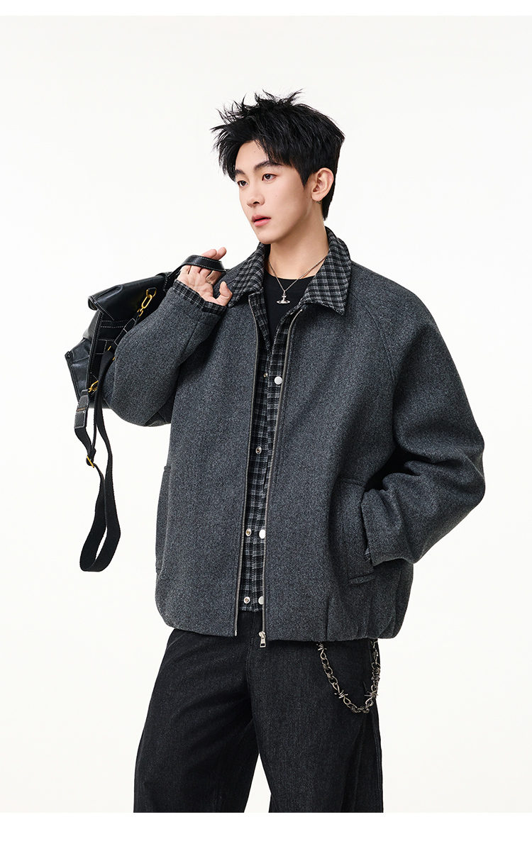 Scarecrow Men's Woolen Cotton Coat Jacket Men's Winter Puffy Handsome Fake Two-Piece Casual Cotton Jacket Loose Fashionable Cotton Clothes Light Gray HY8597 M
