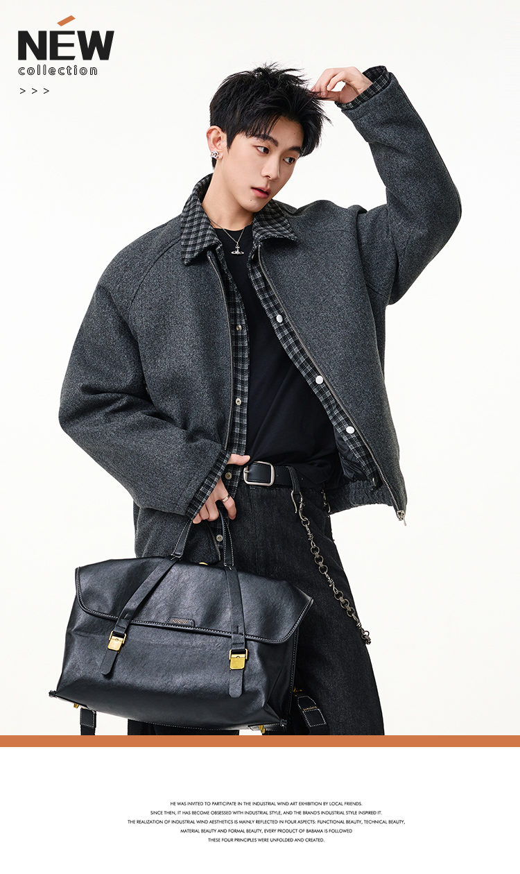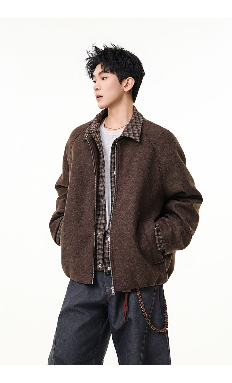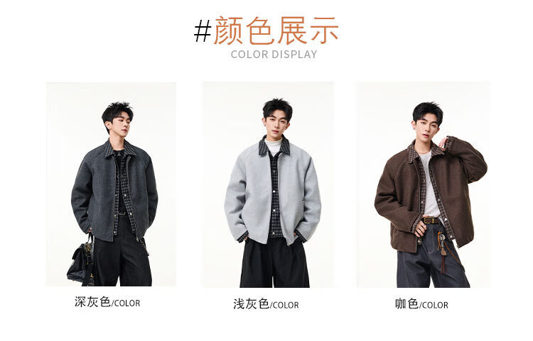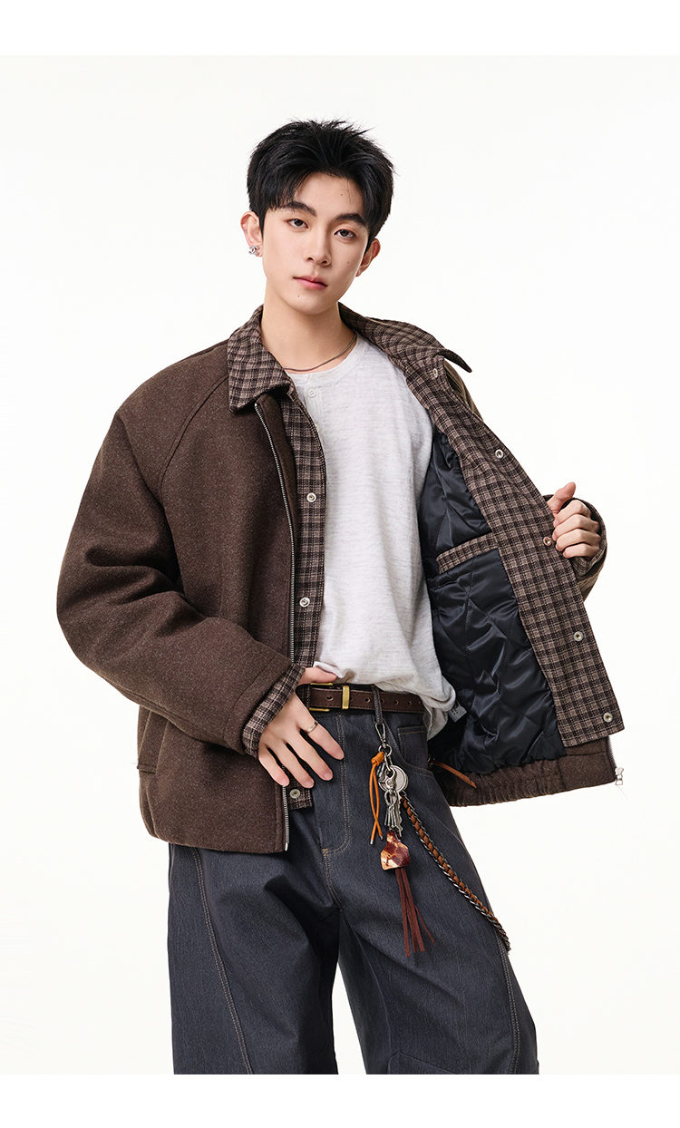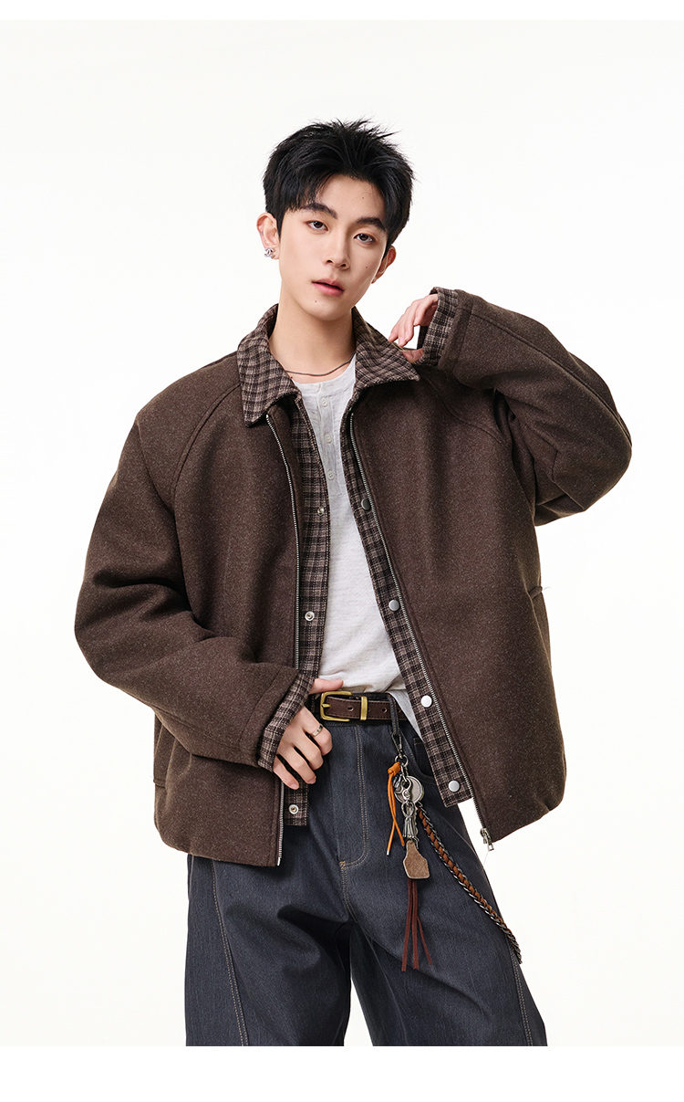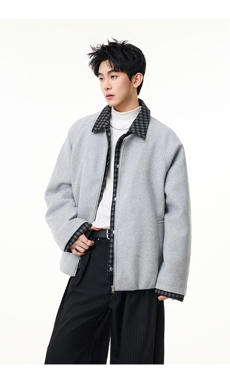 Scarecrow Men's Woolen Cotton Coat Jacket Men's Winter Puffy Handsome Fake Two-Piece Casual Cotton Jacket Loose Fashionable Cotton Clothes Light Gray HY8597 M