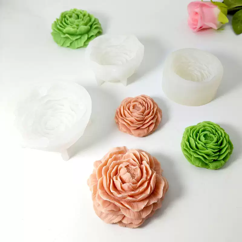 Yusenyifenai Peony Flower Silicone Mold Hotel Placing Shape Mango Mousse Cold Dish Three-dimensional Lotus Food Grade Abrasive Peony Flower Large Size 5 Pack (Food Grade Easy to Release)