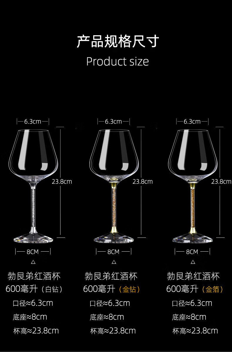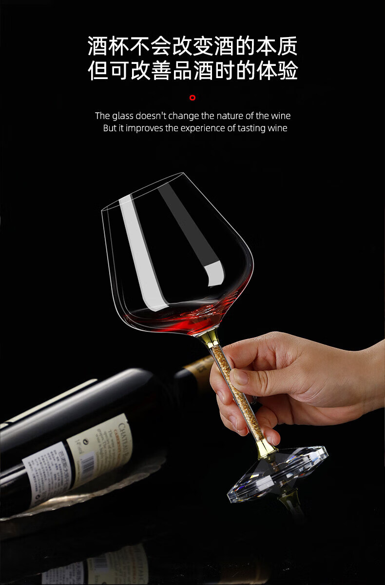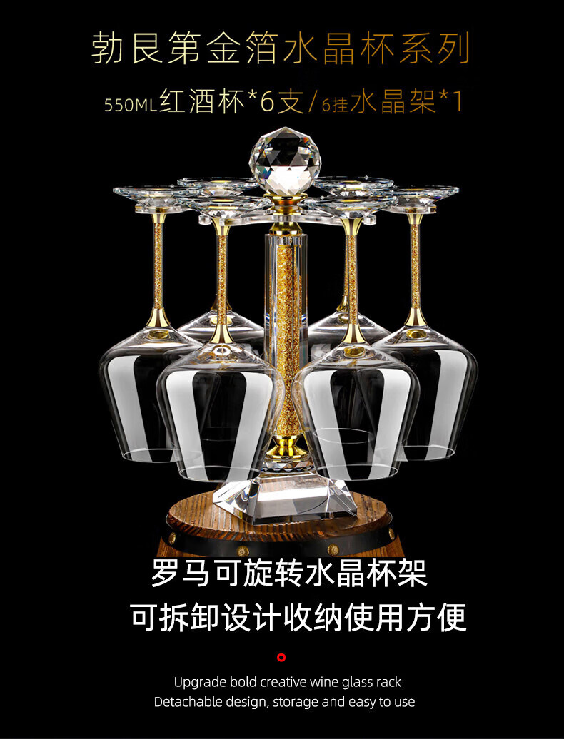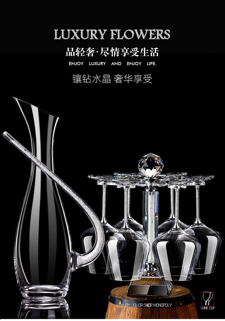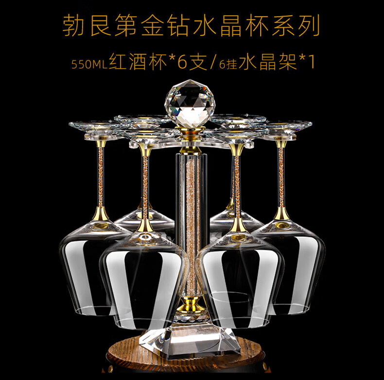 Goli Creative Crystal Glass Gold Foil Red Wine Glass Diamond Wine Glass Burgundy Goblet Wine Set 6 white diamond 600ml red wine glasses + U-shaped decanter + cup holder